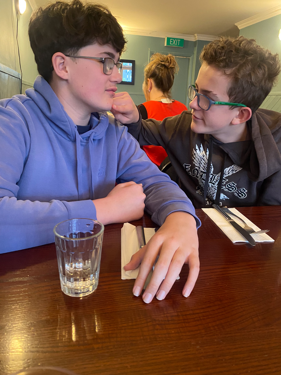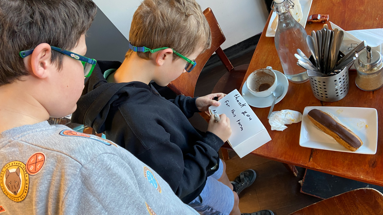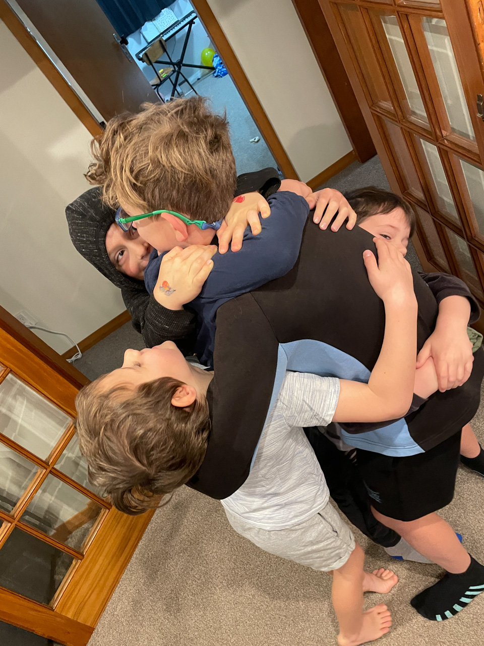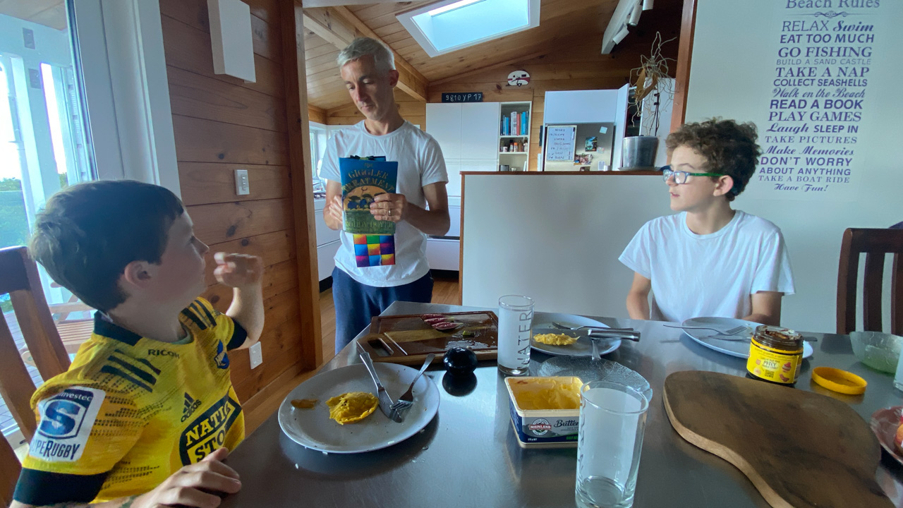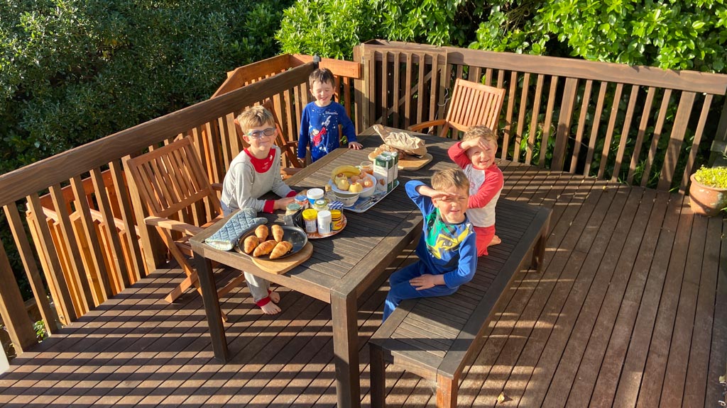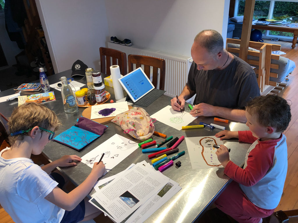 Adan nous dit qu'il est fatigue. Seb lui repond que c'est peut etre du aux jeux videos, avec lesquels il passe trop de temps. Je suis un peu dubitatif car ils ont une limite de 30 minutes par jour, mais Adan adhere a cette idee et decide de ne pas faire de jeux videos jusqu'aux vacances, dans un mois.