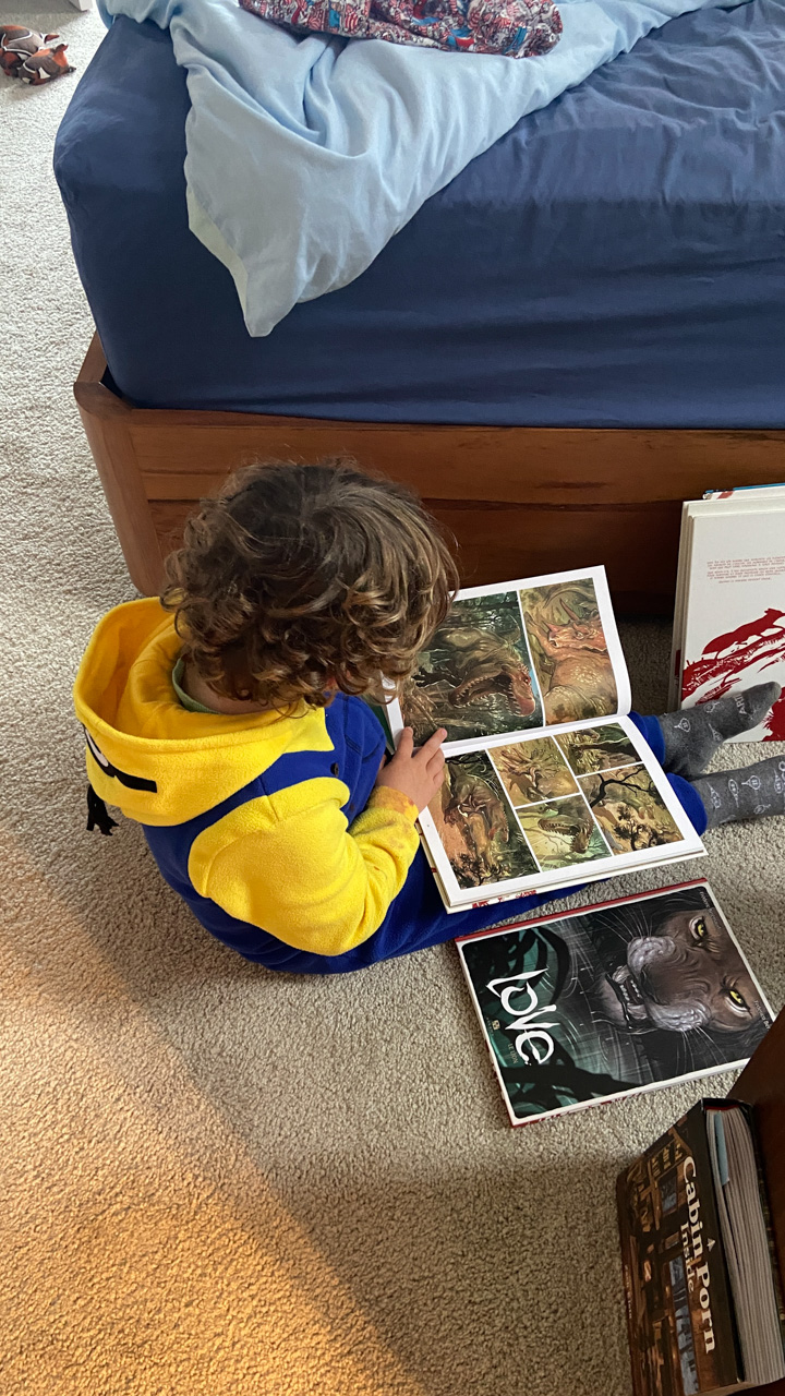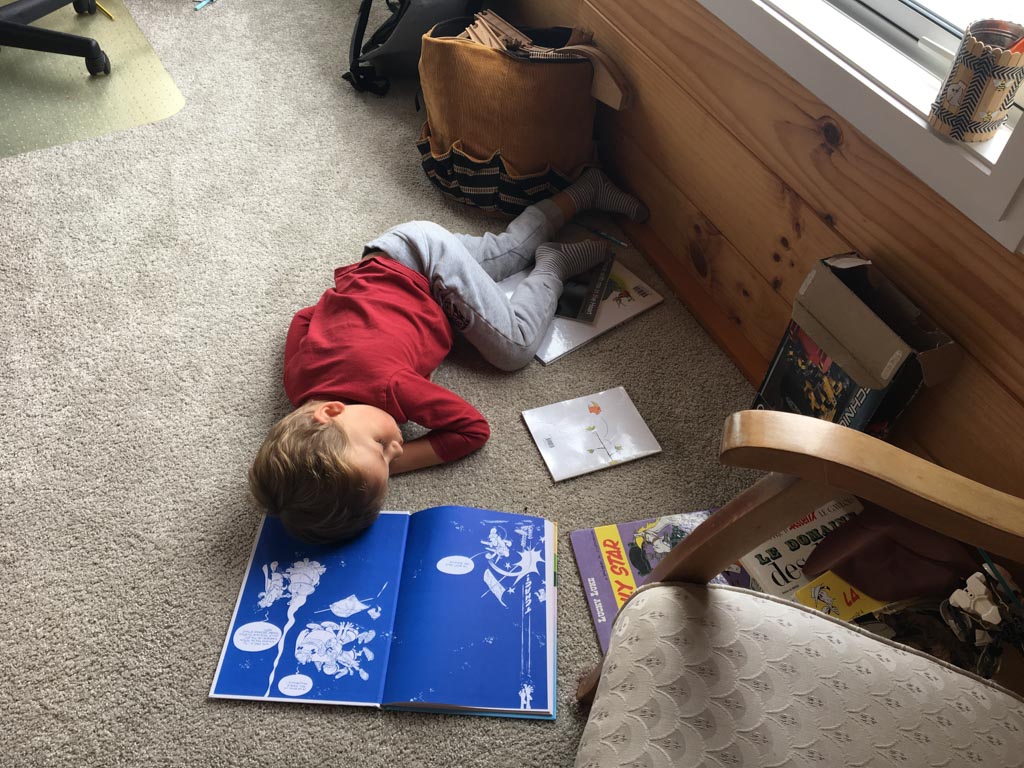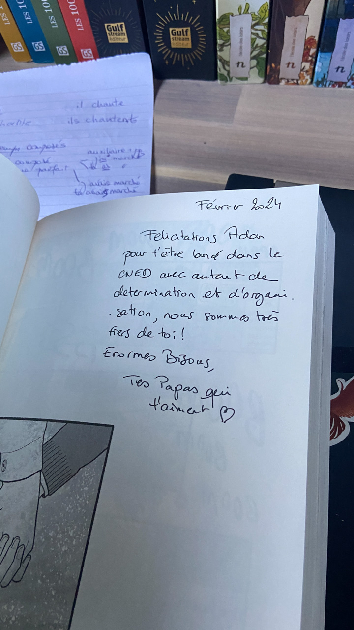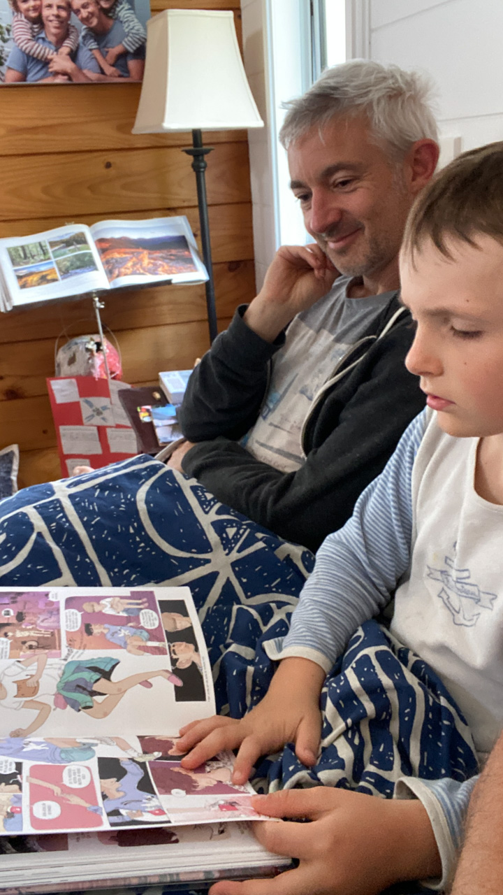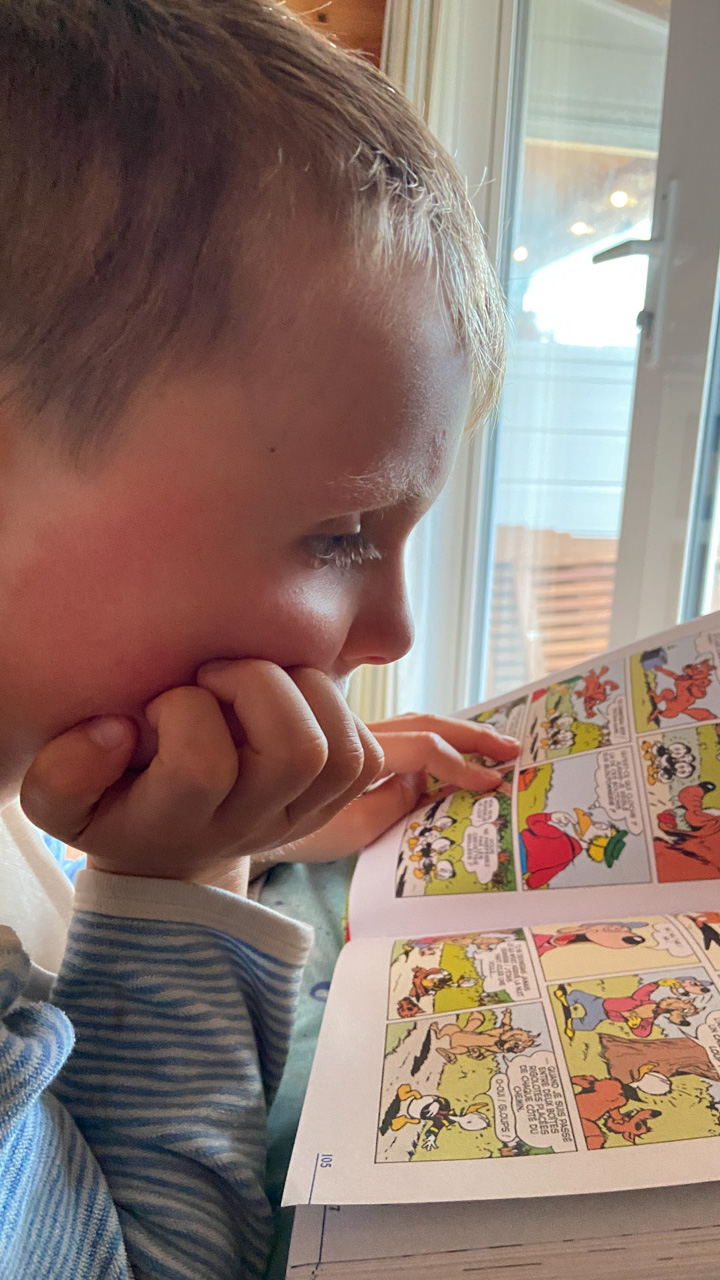 C'est au tour de Cosmo d'avoir choisi Heartstopper a la librairie et de le ramener a la maison. Et chose incroyable: il a lu les multiples tomes en entier, seul. C'est le premier livre qu'il decode integralement et seul. Le gap avec sa capacite a lire, en debut d'annee, ne saurait etre plus grand.