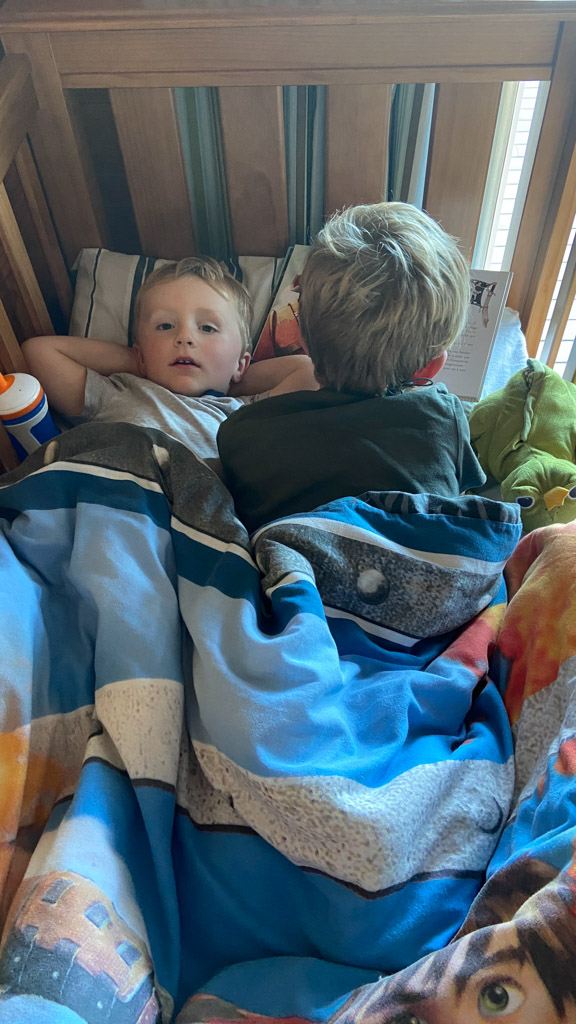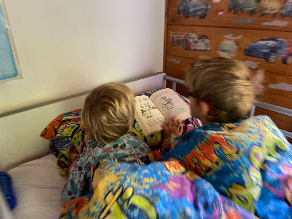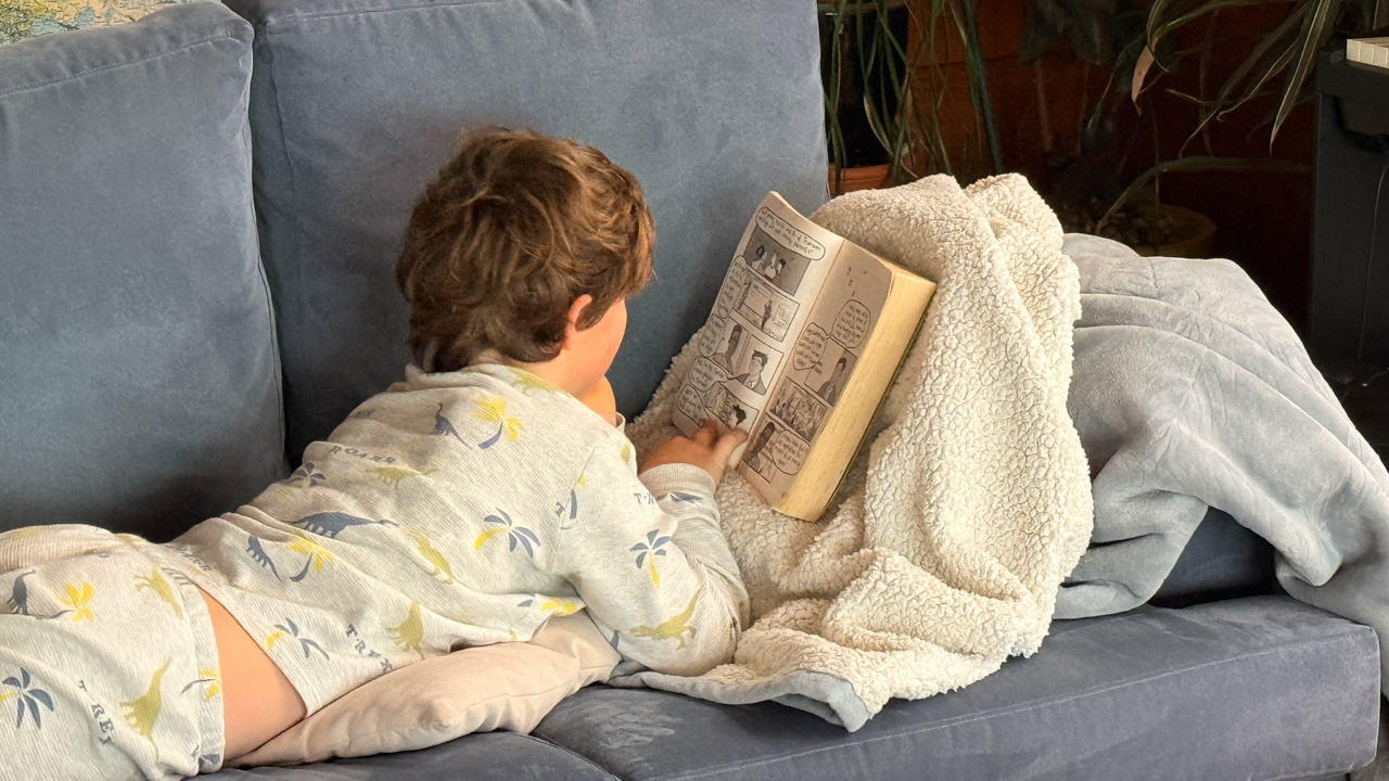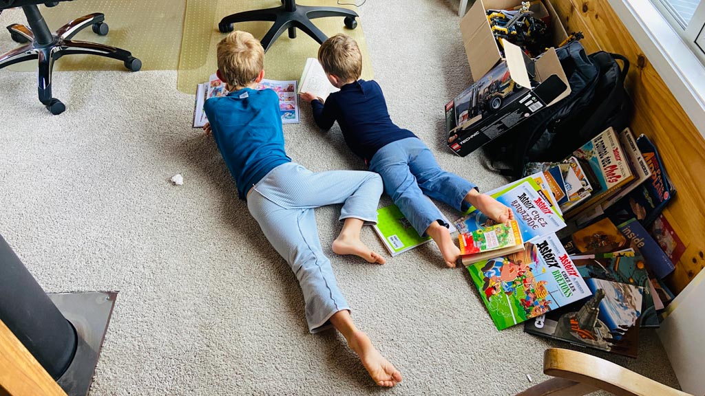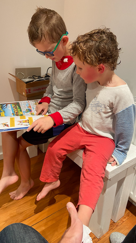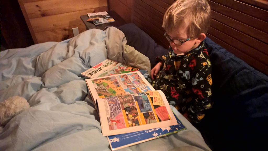 C'est au tour de Cosmo d'avoir choisi Heartstopper a la librairie et de le ramener a la maison. Et chose incroyable: il a lu les multiples tomes en entier, seul. C'est le premier livre qu'il decode integralement et seul. Le gap avec sa capacite a lire, en debut d'annee, ne saurait etre plus grand.