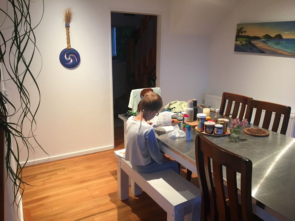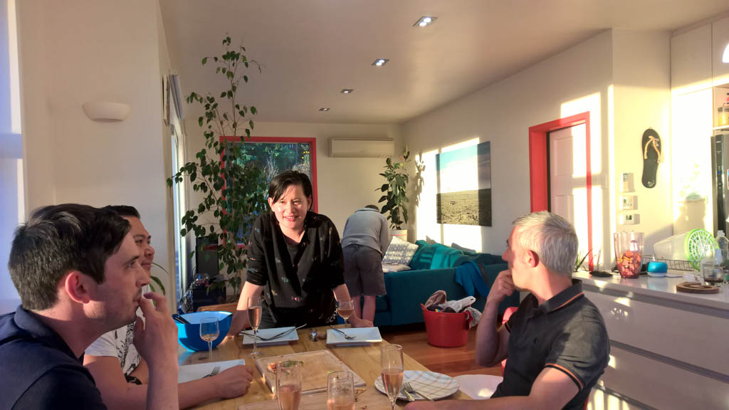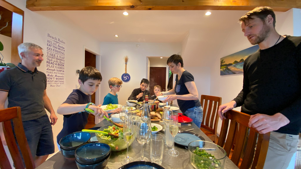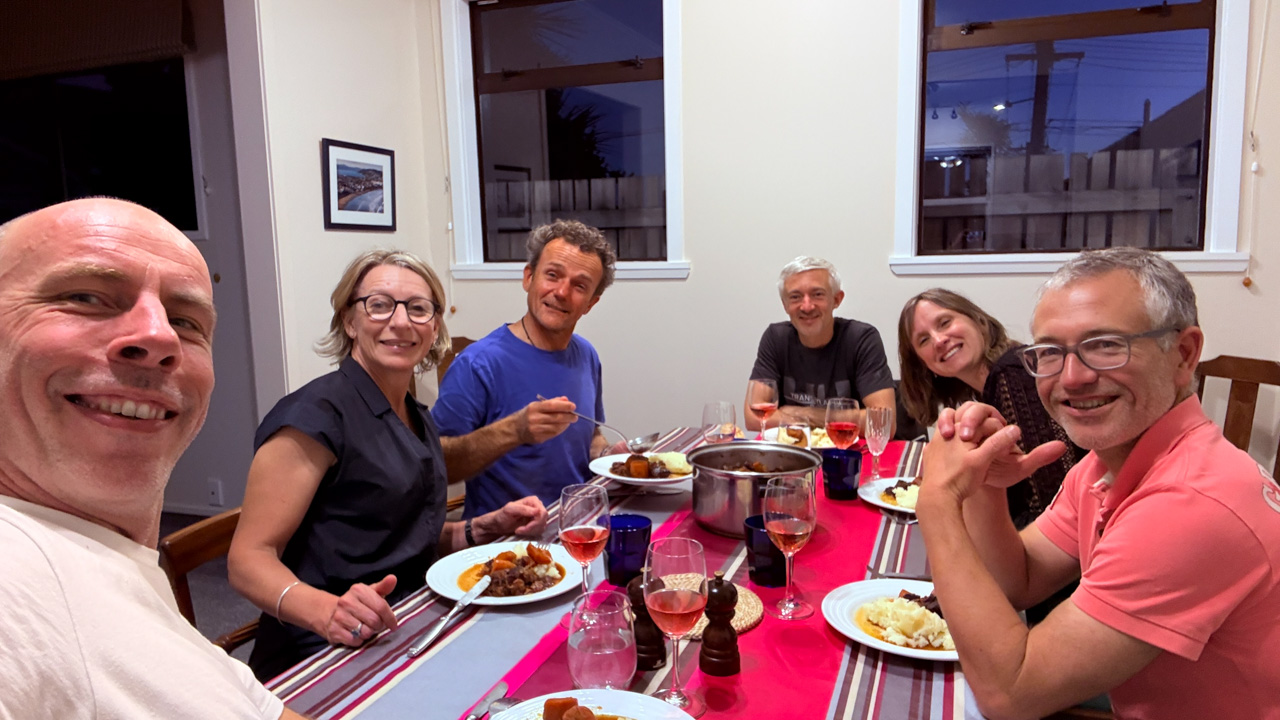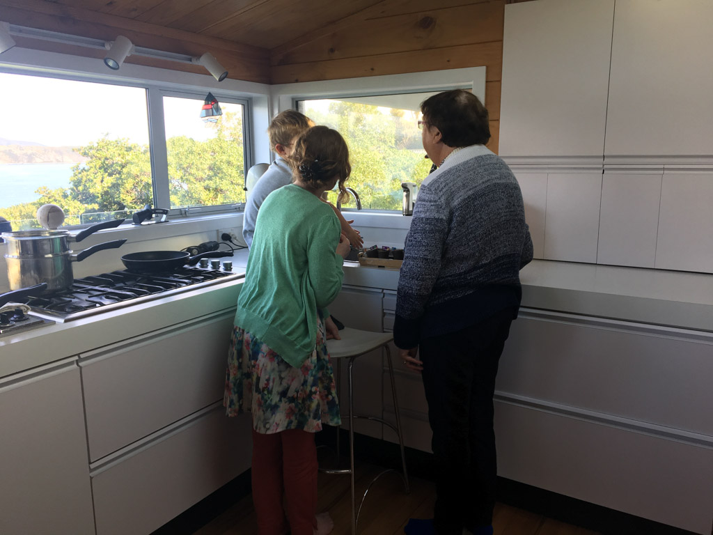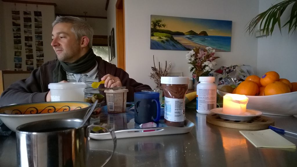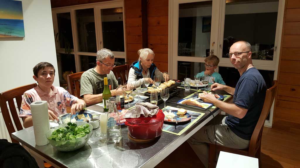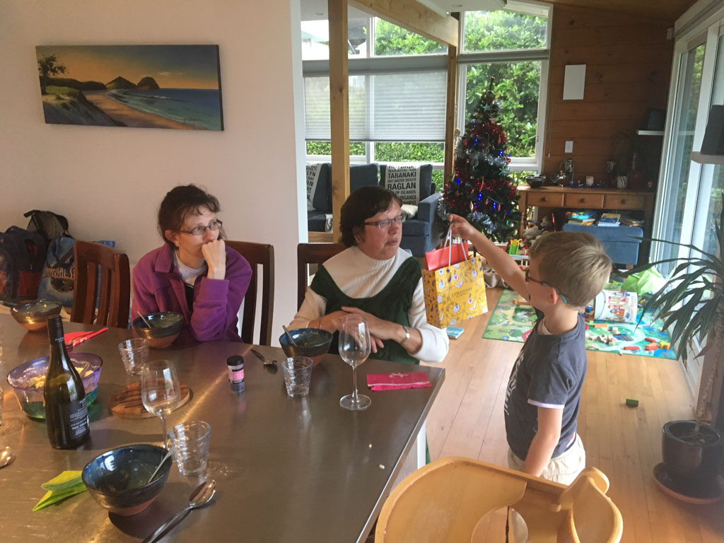 Mary est venue diner ce soir. C'est la premiere fois qu'on l'invite a la maison, 3 ans apres qu'elle ai emmenage dans le studio. Elle demenage pour Taupo mi Decembre, et on voulait s'assoir un petit coup ensemble avant son depart. Elle a ete une presence discrete, respectueuse et chaleureuse, ne laissant jamais l'occasion de faire plaisir, aux enfants et aux moins jeunes.