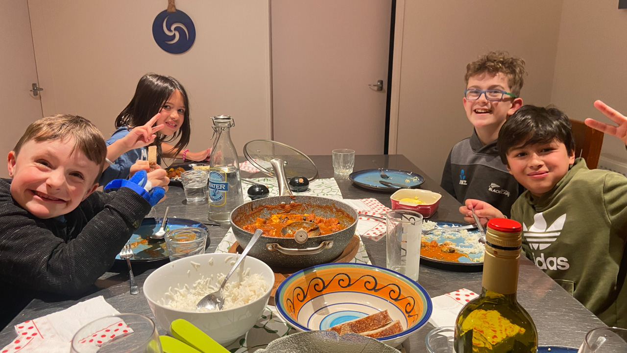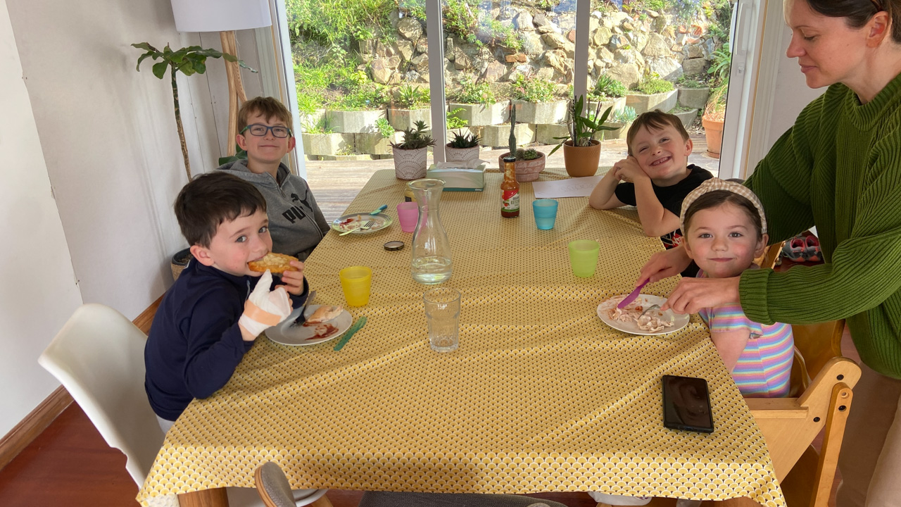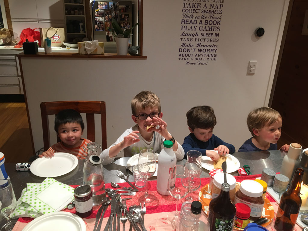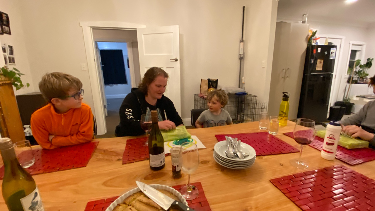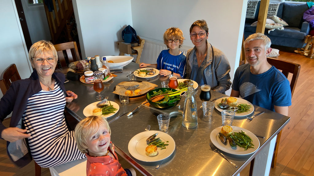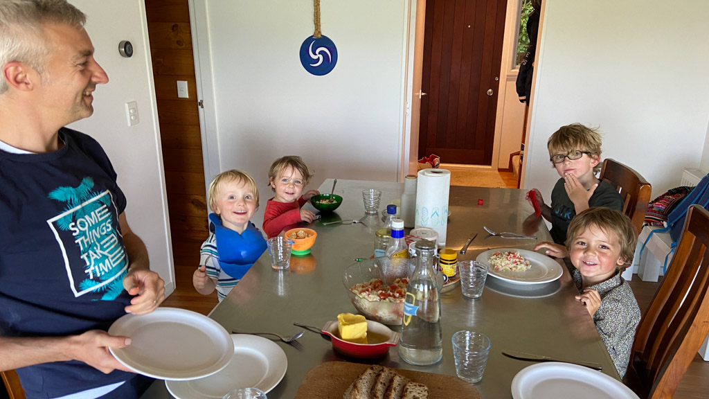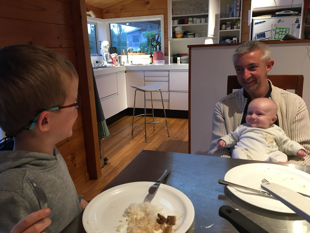 Mary est venue diner ce soir. C'est la premiere fois qu'on l'invite a la maison, 3 ans apres qu'elle ai emmenage dans le studio. Elle demenage pour Taupo mi Decembre, et on voulait s'assoir un petit coup ensemble avant son depart. Elle a ete une presence discrete, respectueuse et chaleureuse, ne laissant jamais l'occasion de faire plaisir, aux enfants et aux moins jeunes.