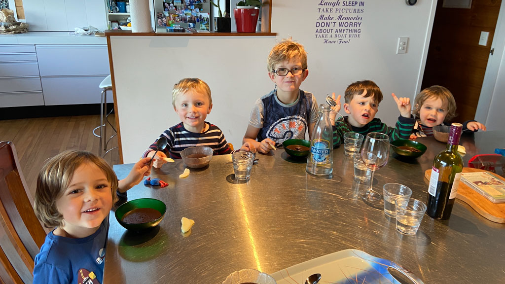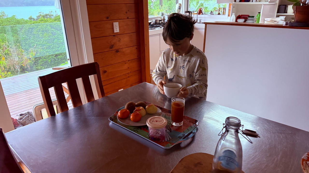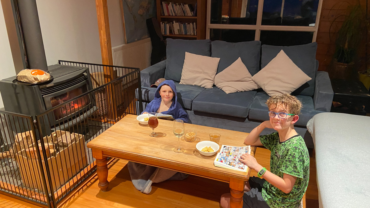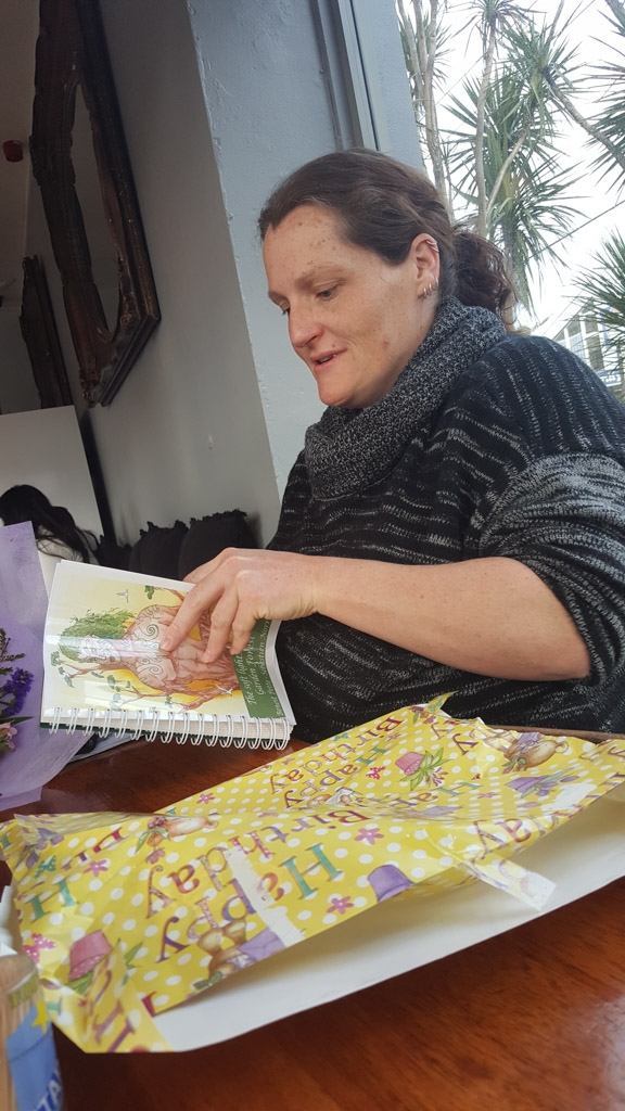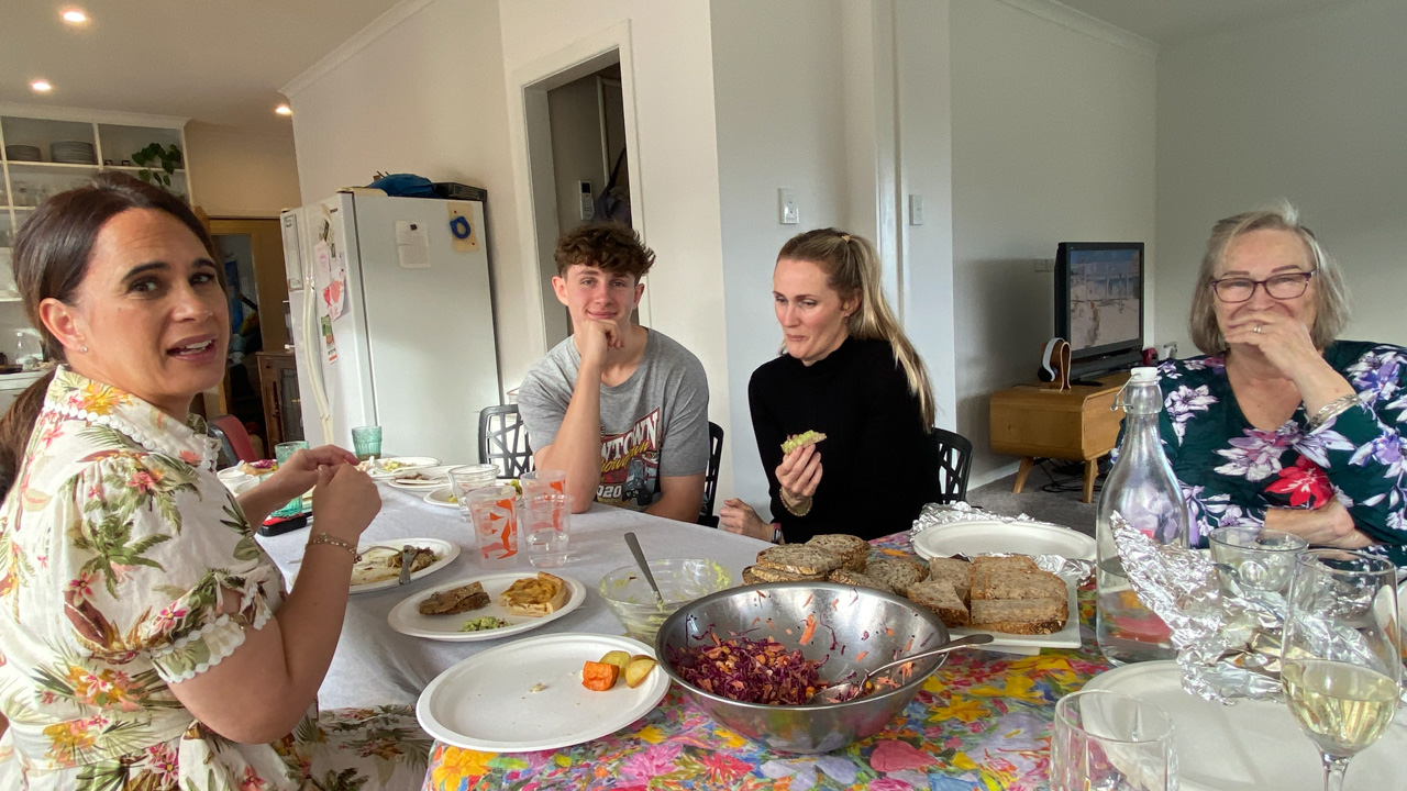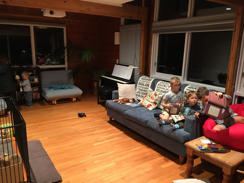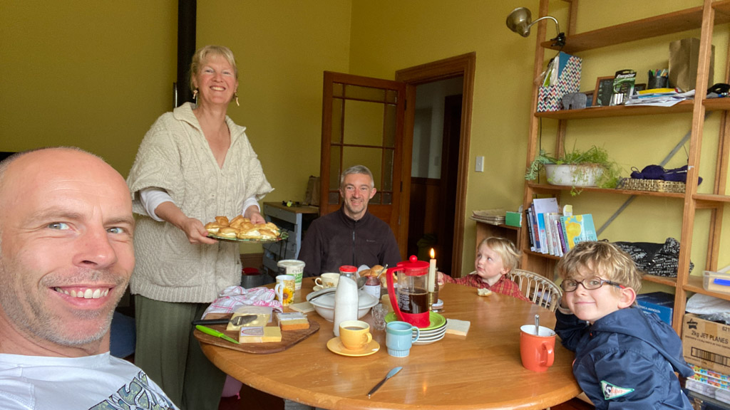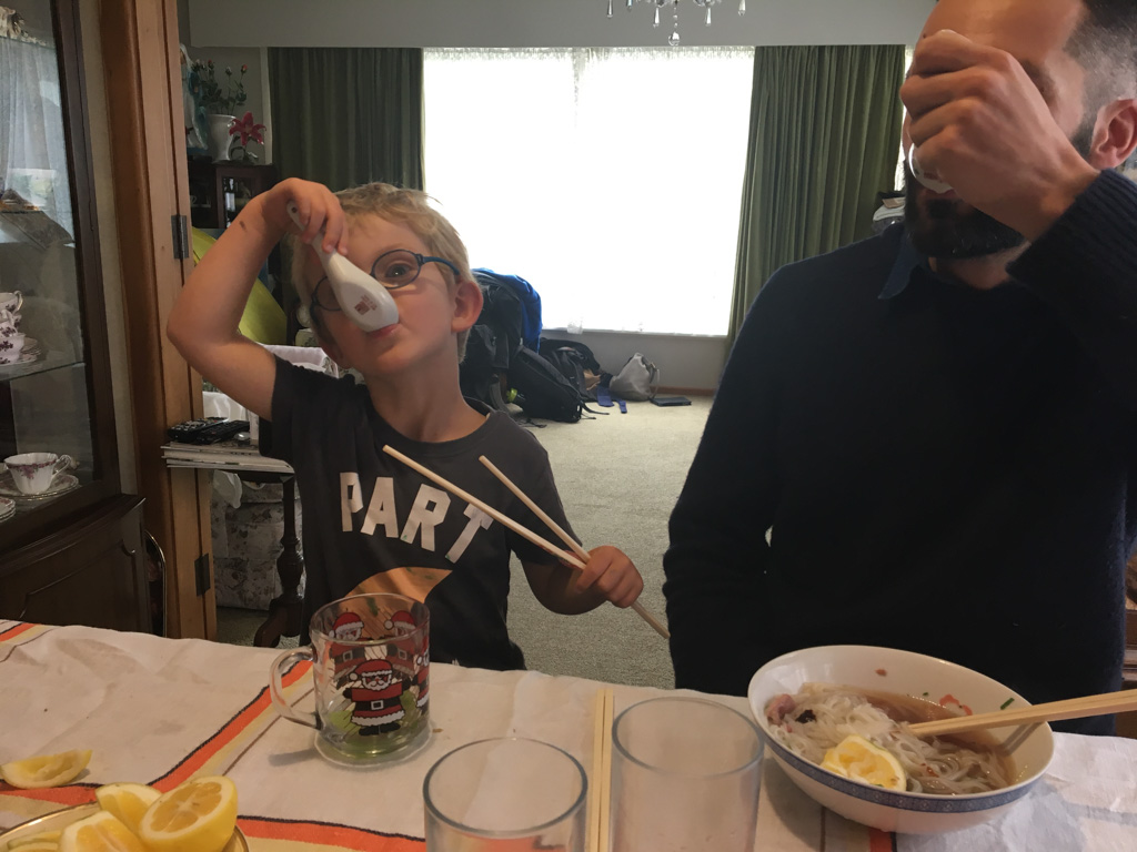 Mary est venue diner ce soir. C'est la premiere fois qu'on l'invite a la maison, 3 ans apres qu'elle ai emmenage dans le studio. Elle demenage pour Taupo mi Decembre, et on voulait s'assoir un petit coup ensemble avant son depart. Elle a ete une presence discrete, respectueuse et chaleureuse, ne laissant jamais l'occasion de faire plaisir, aux enfants et aux moins jeunes.
