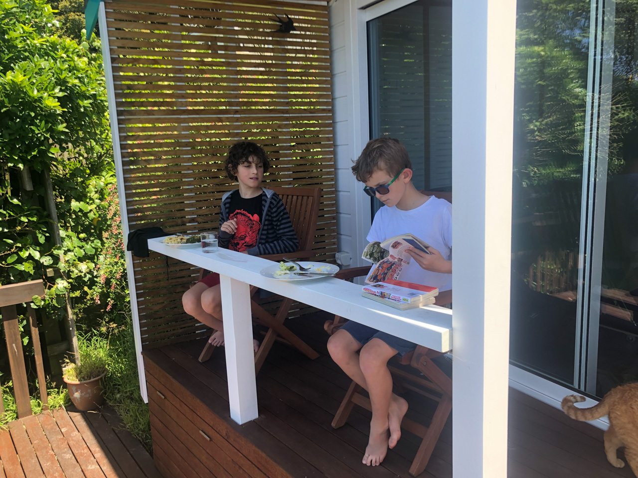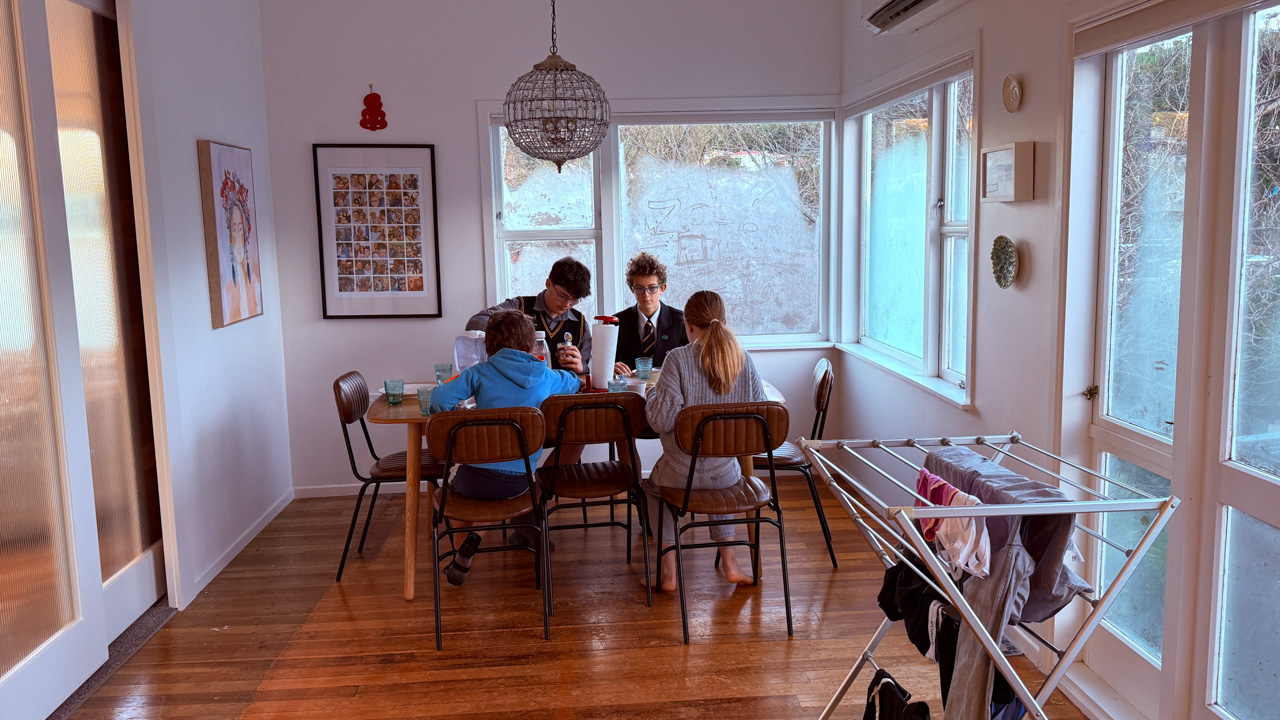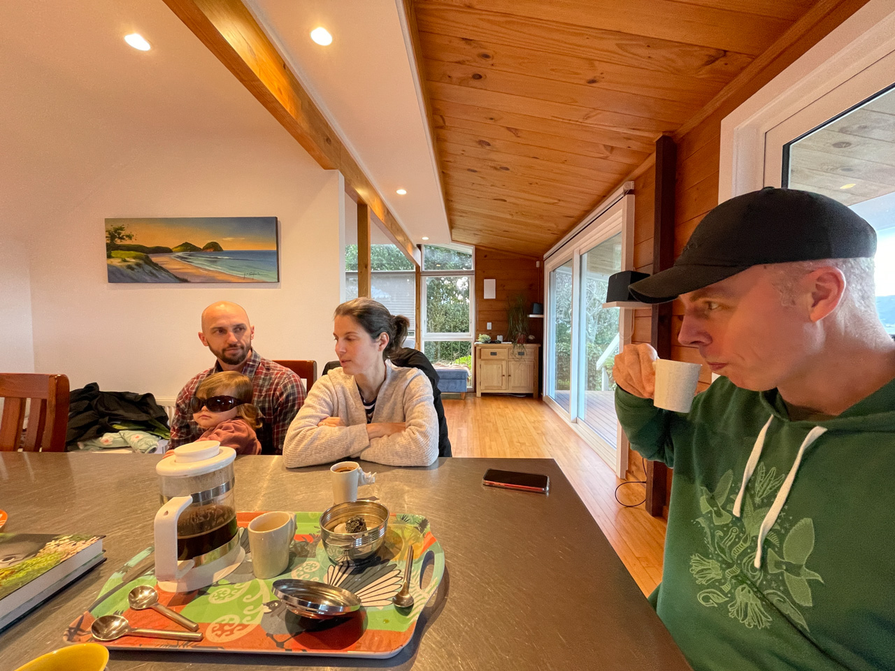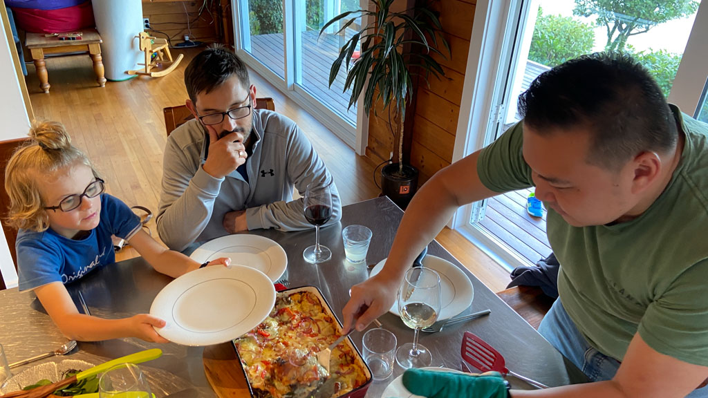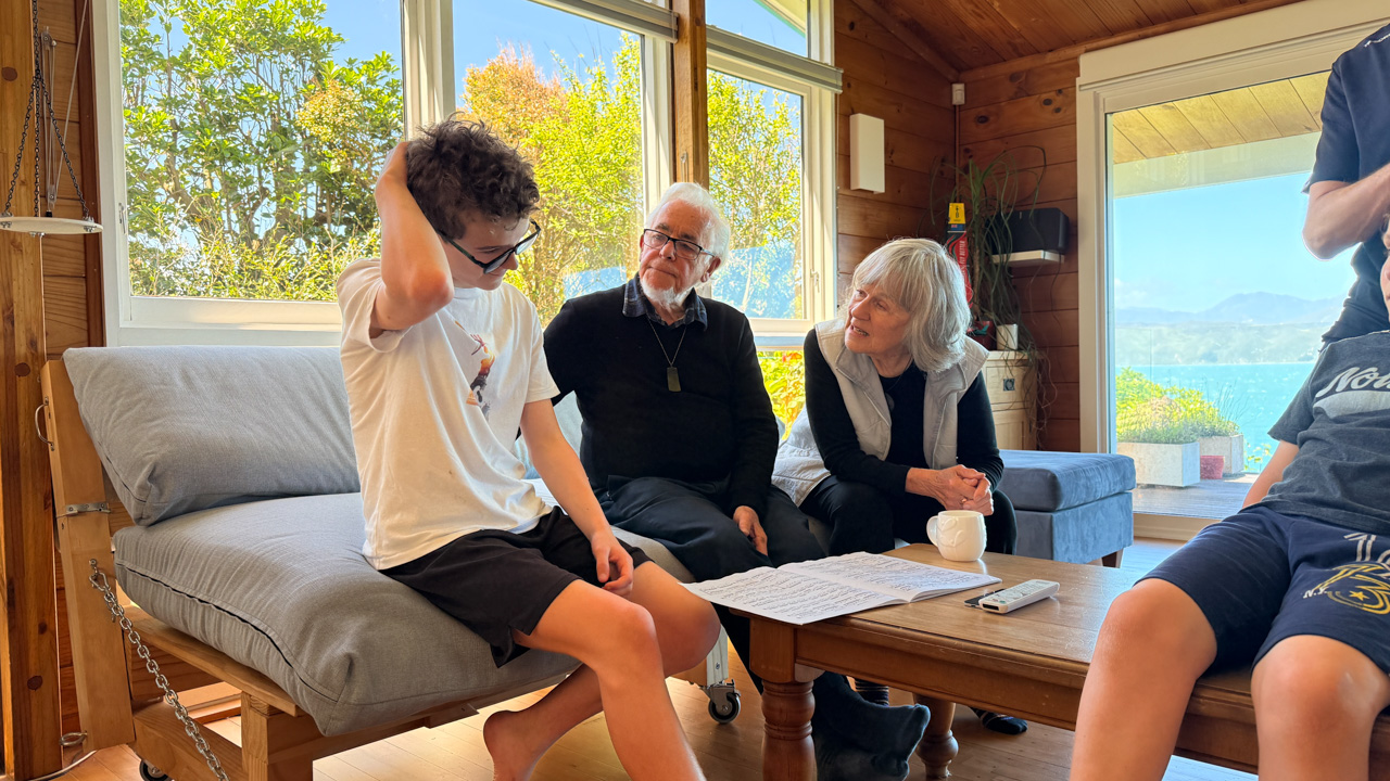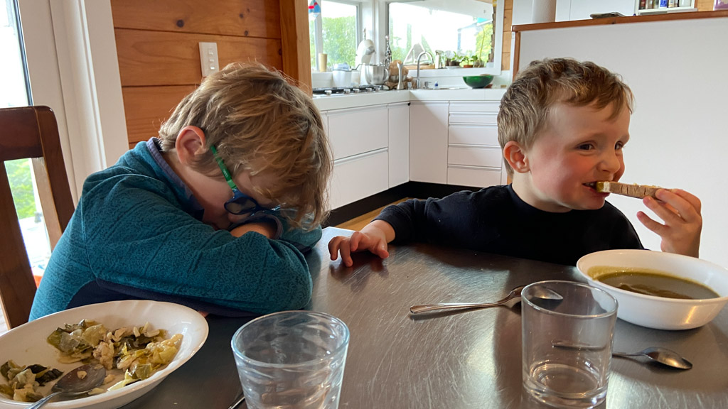 Mary est venue diner ce soir. C'est la premiere fois qu'on l'invite a la maison, 3 ans apres qu'elle ai emmenage dans le studio. Elle demenage pour Taupo mi Decembre, et on voulait s'assoir un petit coup ensemble avant son depart. Elle a ete une presence discrete, respectueuse et chaleureuse, ne laissant jamais l'occasion de faire plaisir, aux enfants et aux moins jeunes.