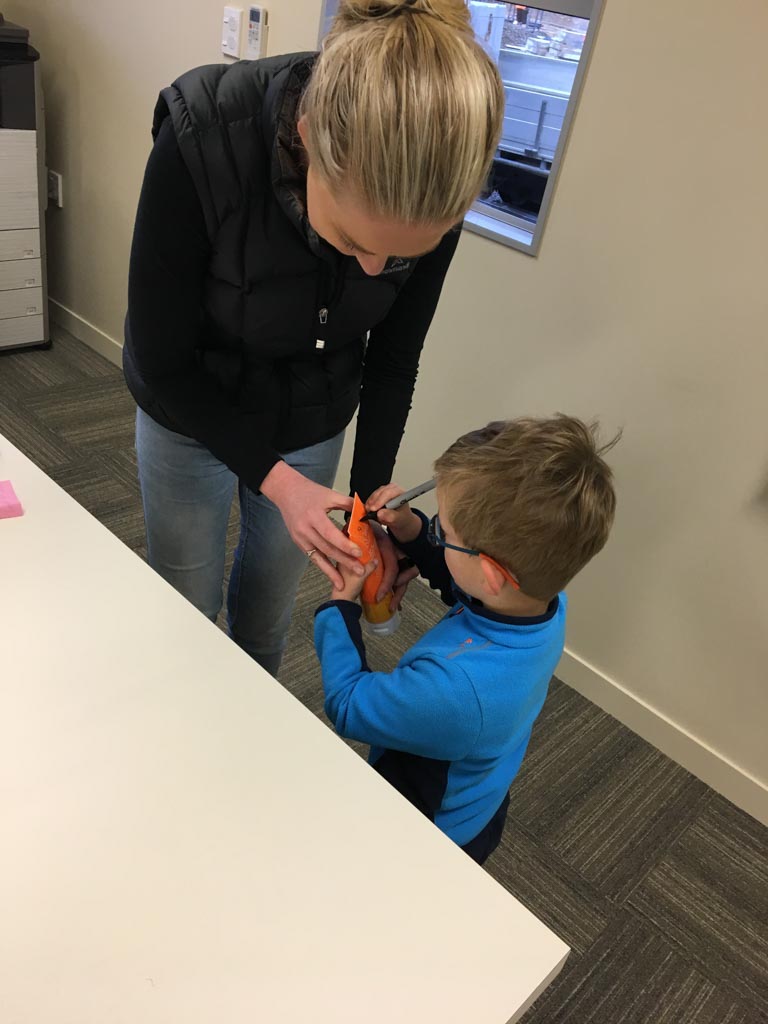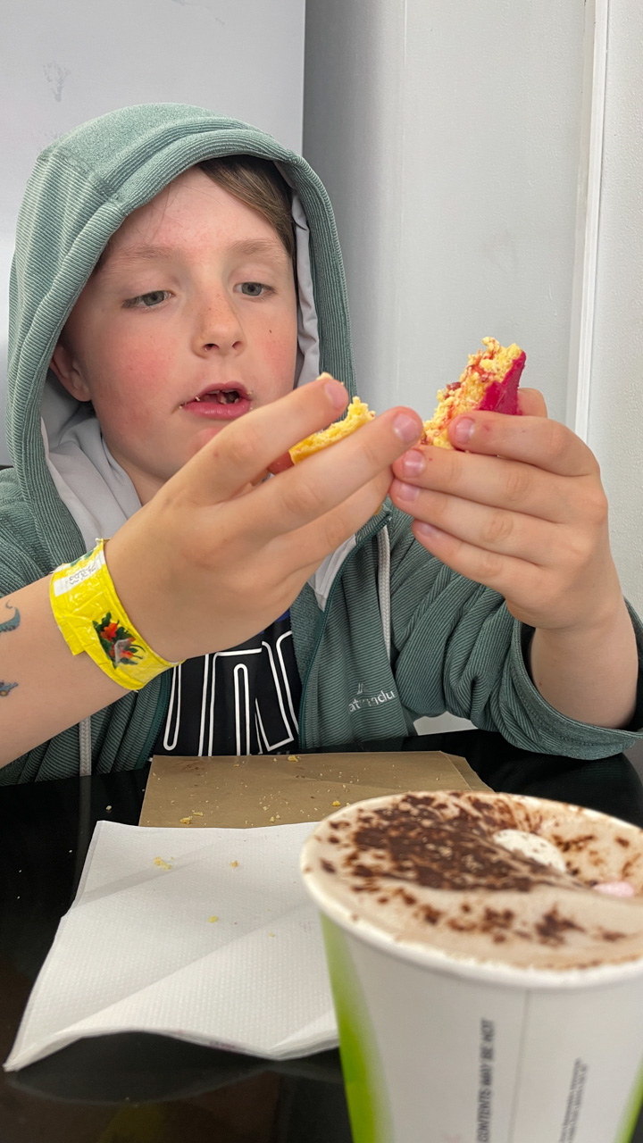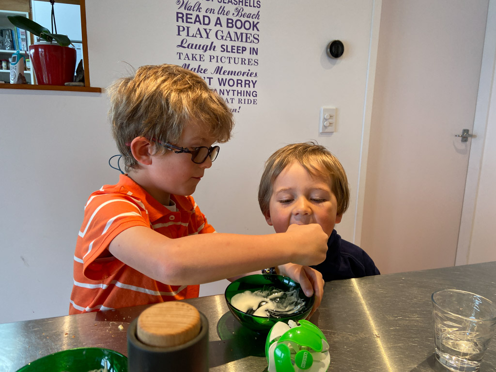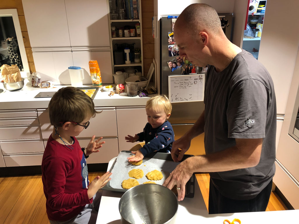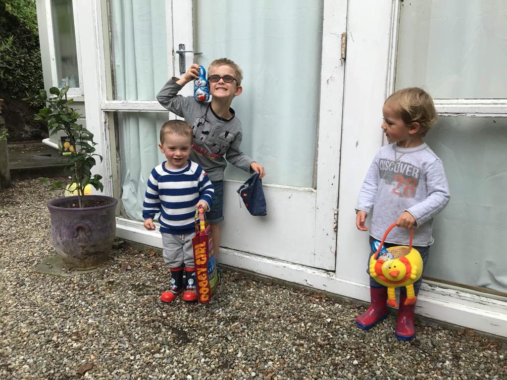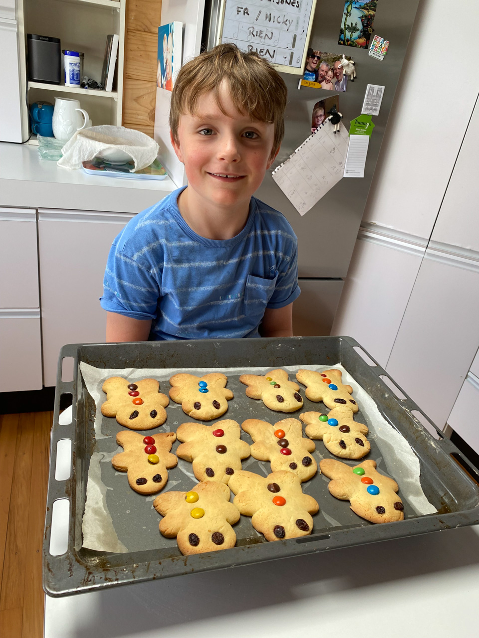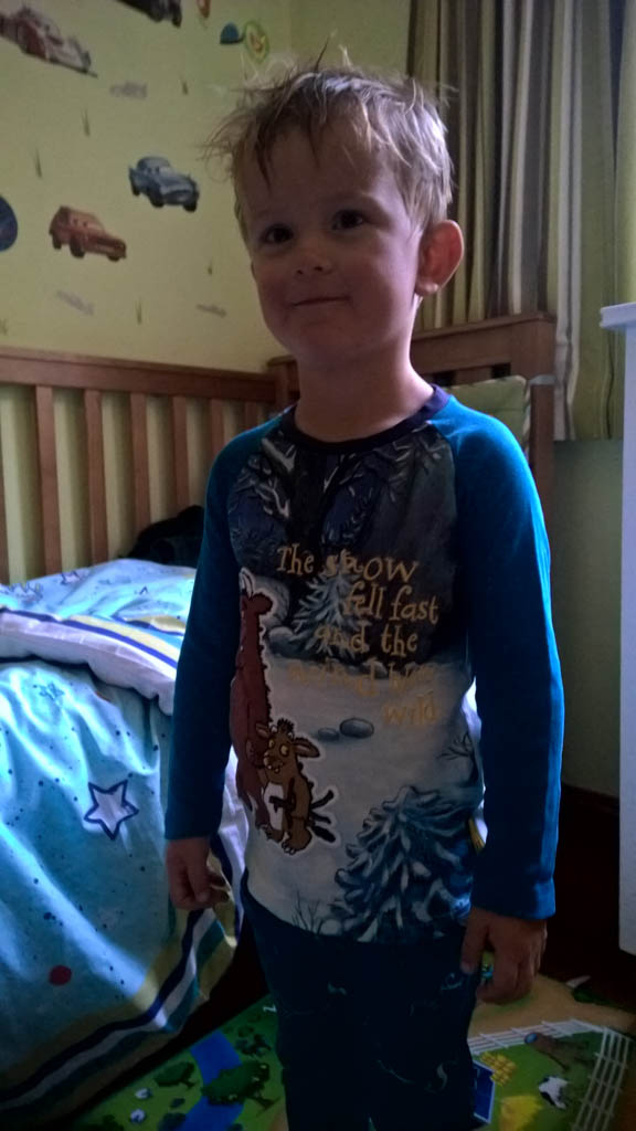 Ce soir, nous avons annonce a Cosmo qu'il ne pourrait pas aller au gala car nous avions prevu, bien avant d'avoir la date, d'aller a d'Urville. Il ne pouvait pas etre plus demoli et agonisait dans ses pleurs. Il etait inconsolable. Mais Hannah a, le lendemain, trouve une idee: il pourrait aller, en avant-premiere, parcourir les lolly-jar et en acheter s'il voulait! C'etait suffisant pour lui regonfler le coeur. Nous avons aussi fait un gateau ensemble (orange chocolat, de Manou) pour contribuer aussi a la fete.