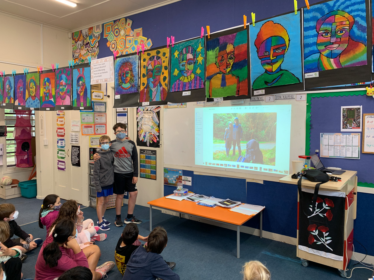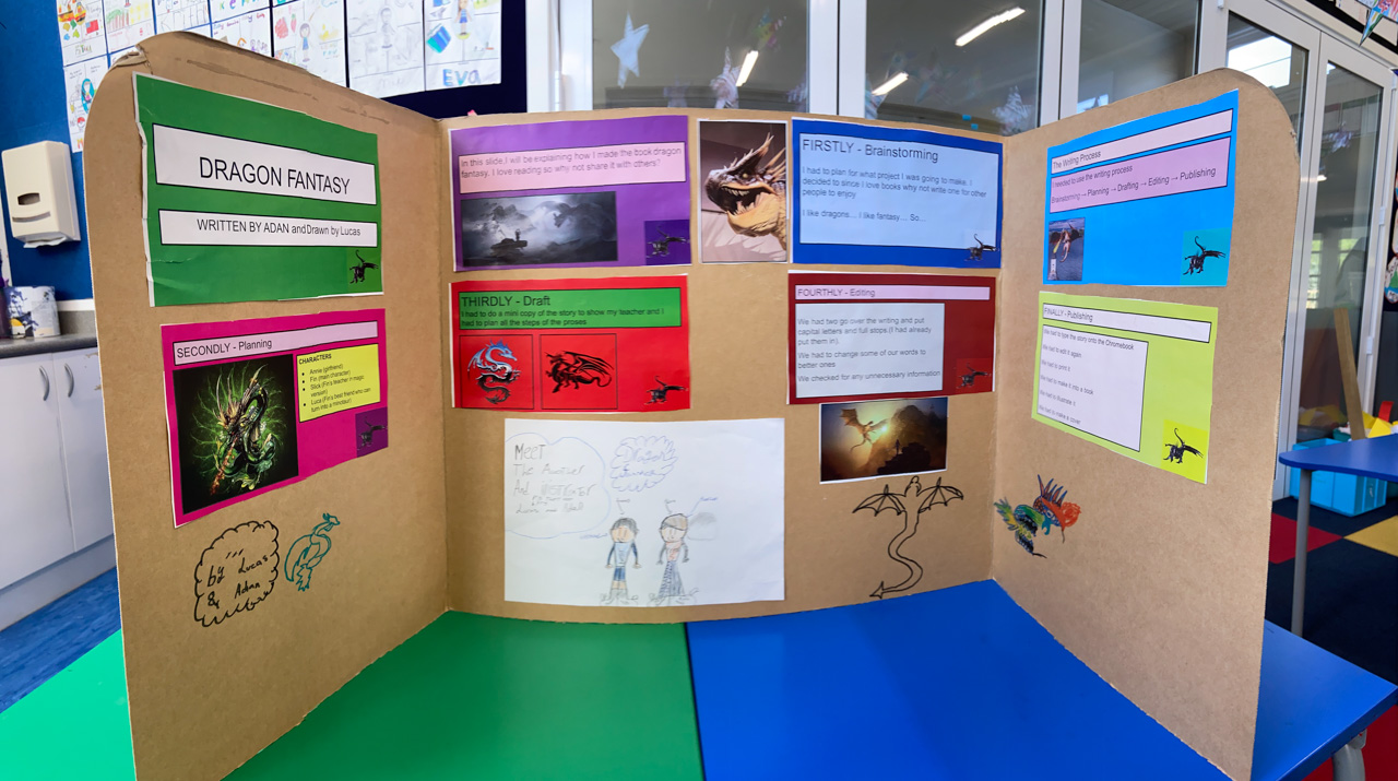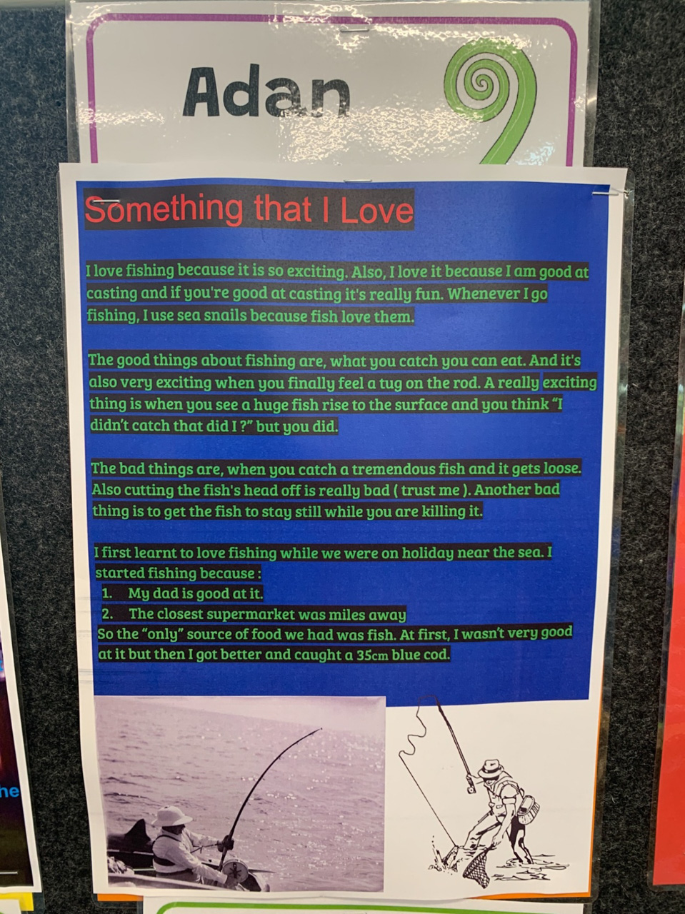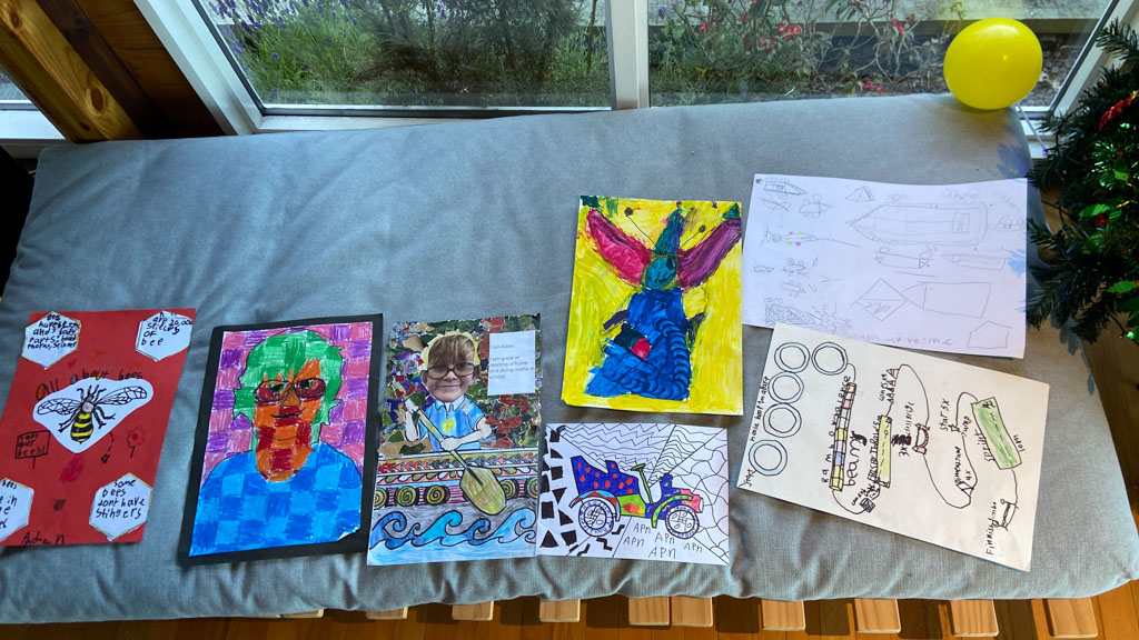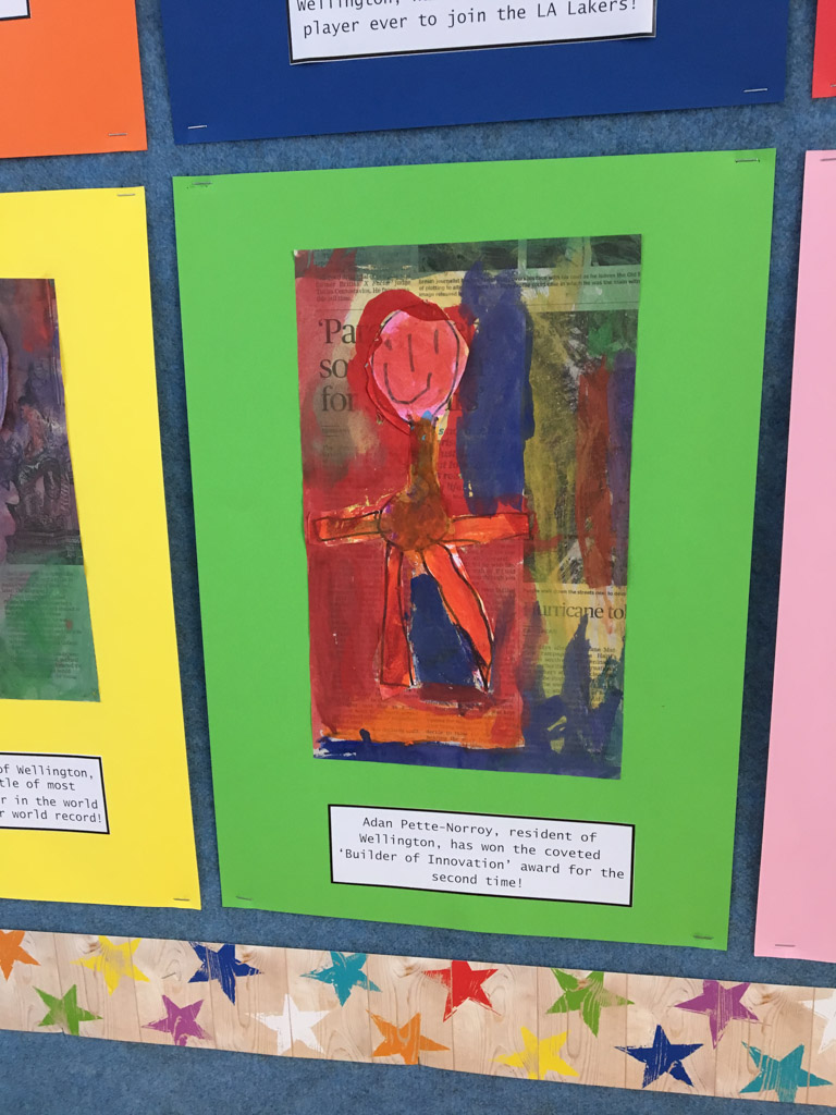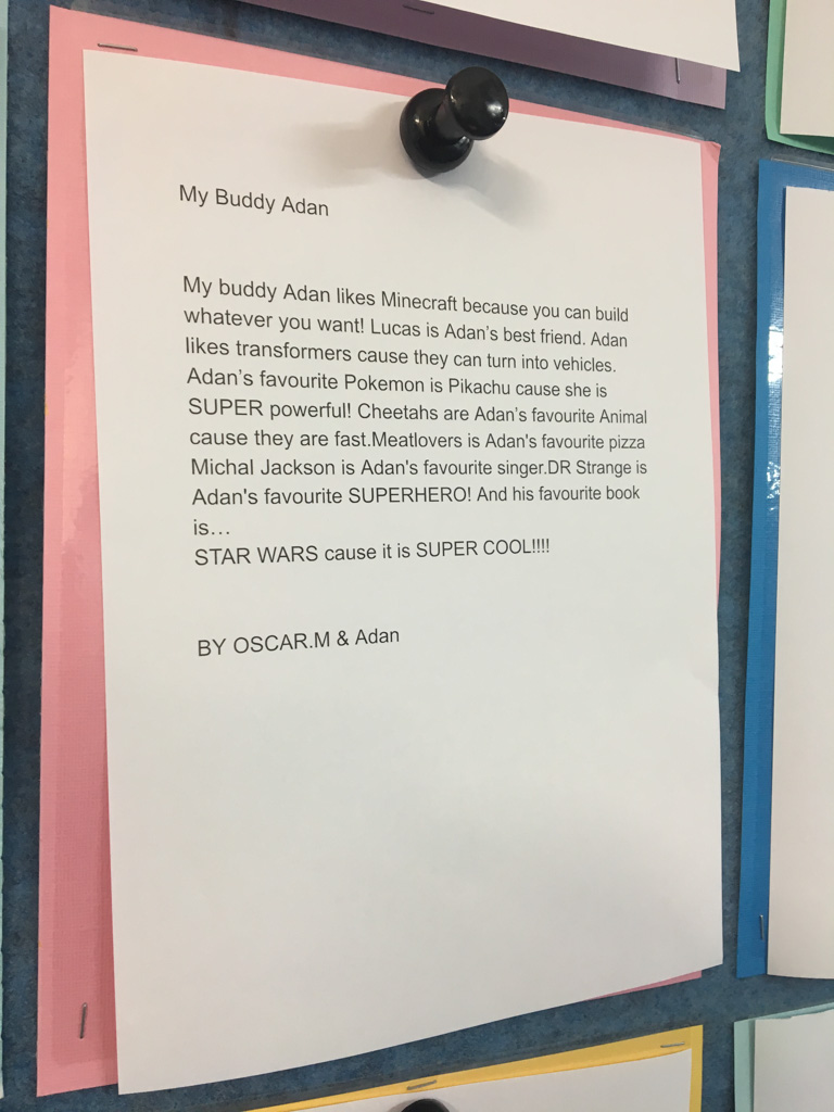 He is welcome to share it with the class if he likes before I find a space to display it.