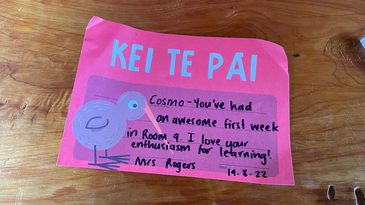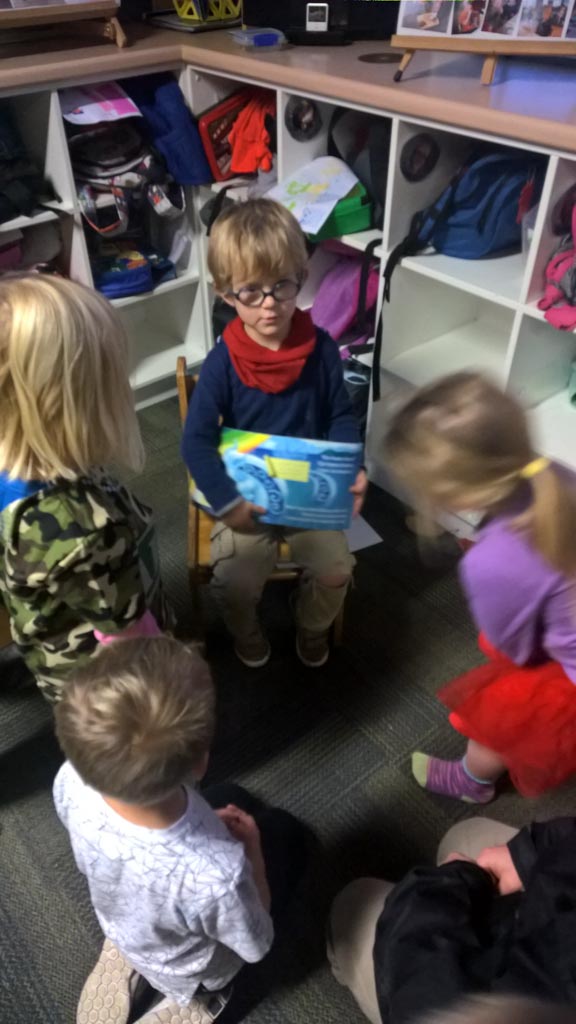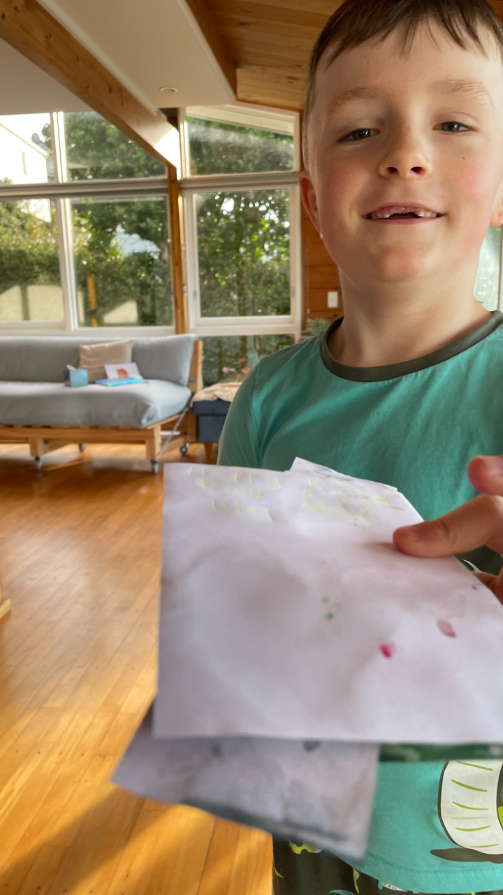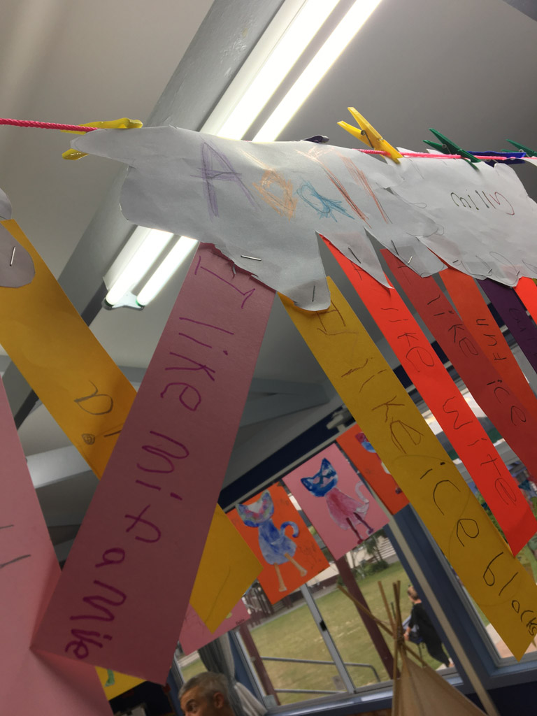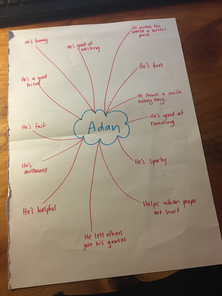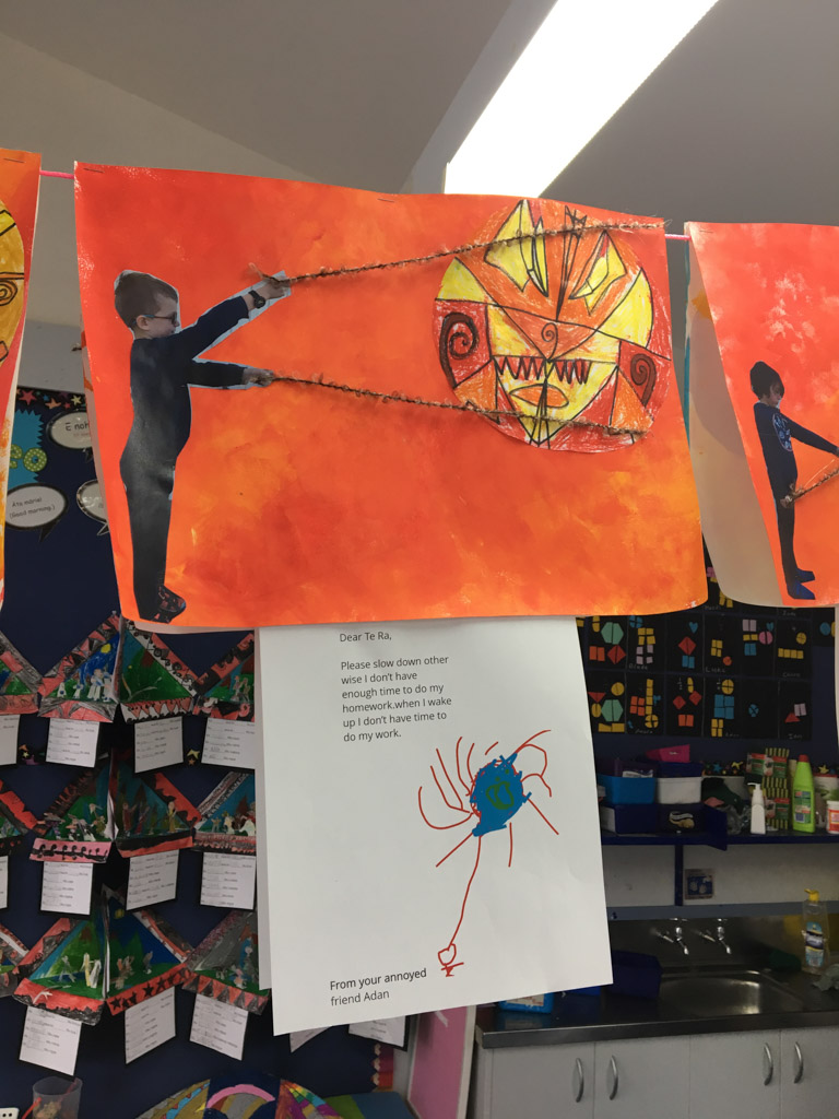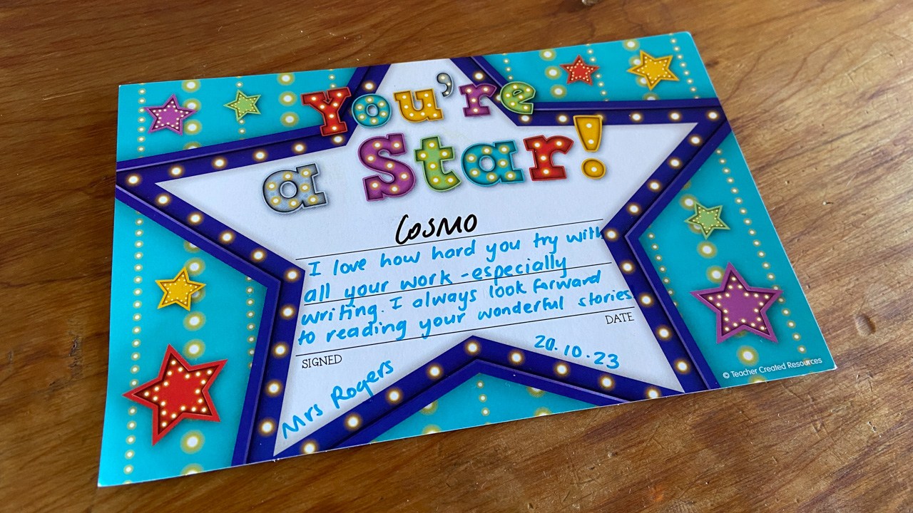 He is welcome to share it with the class if he likes before I find a space to display it.