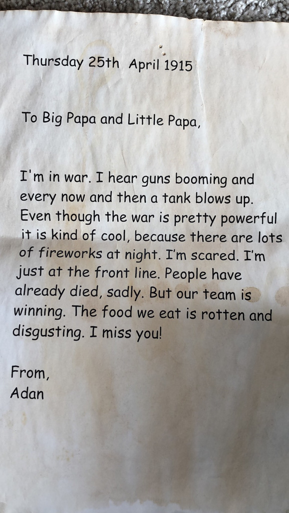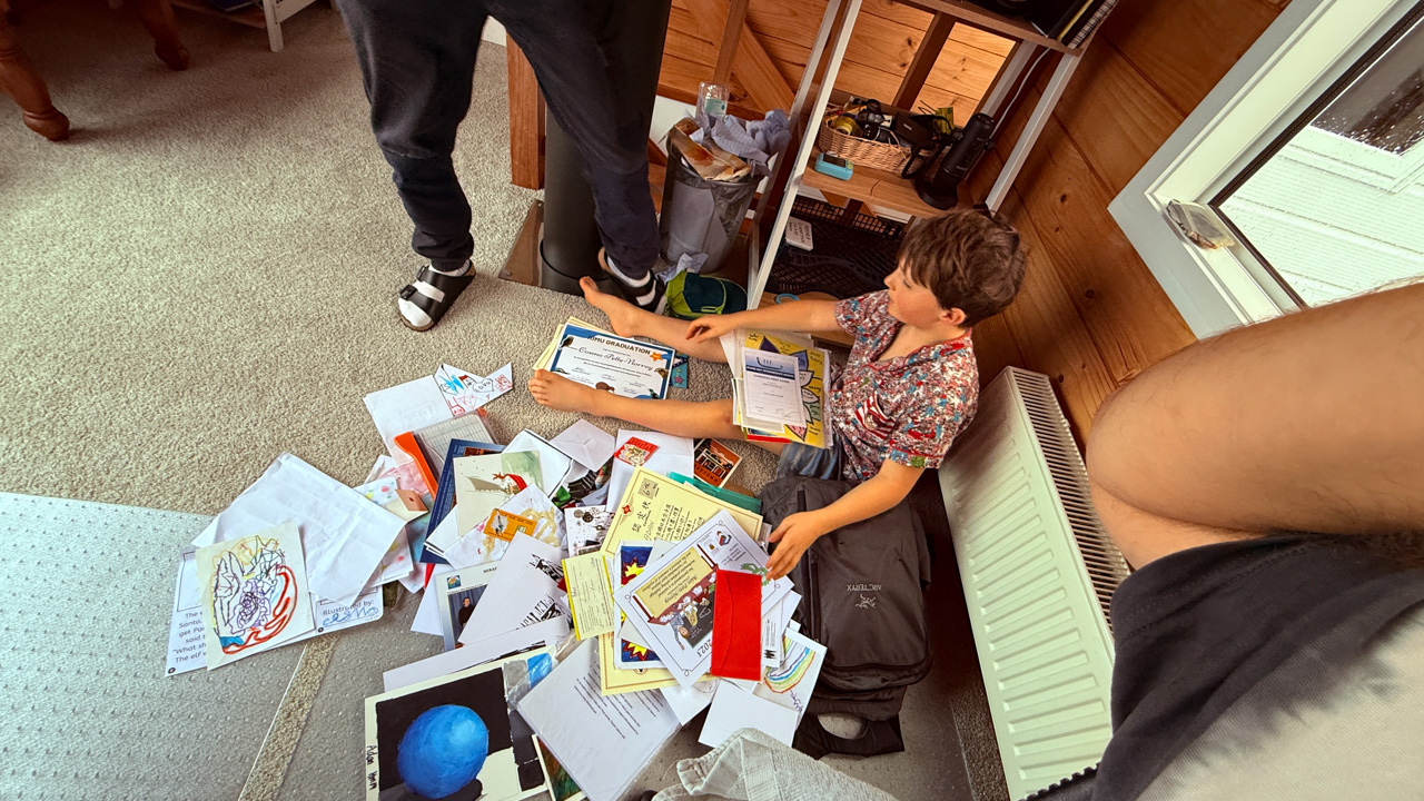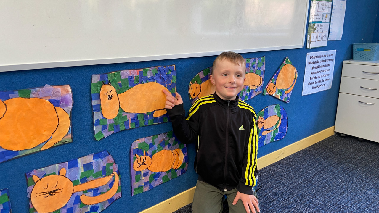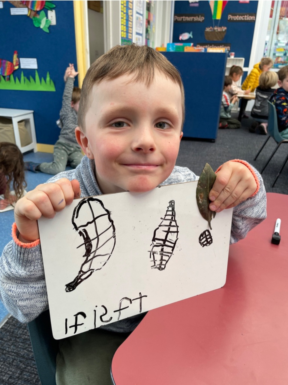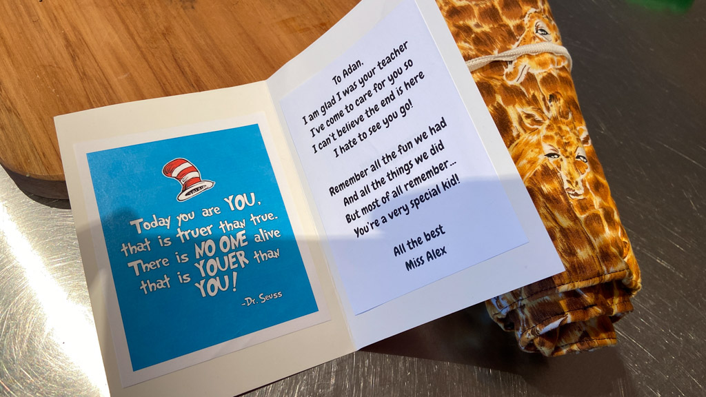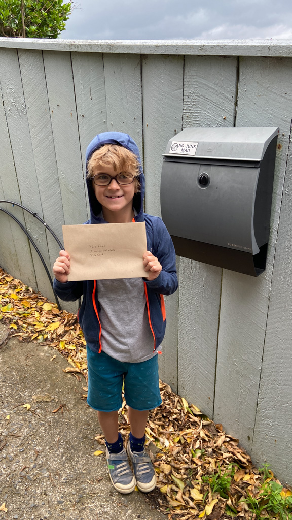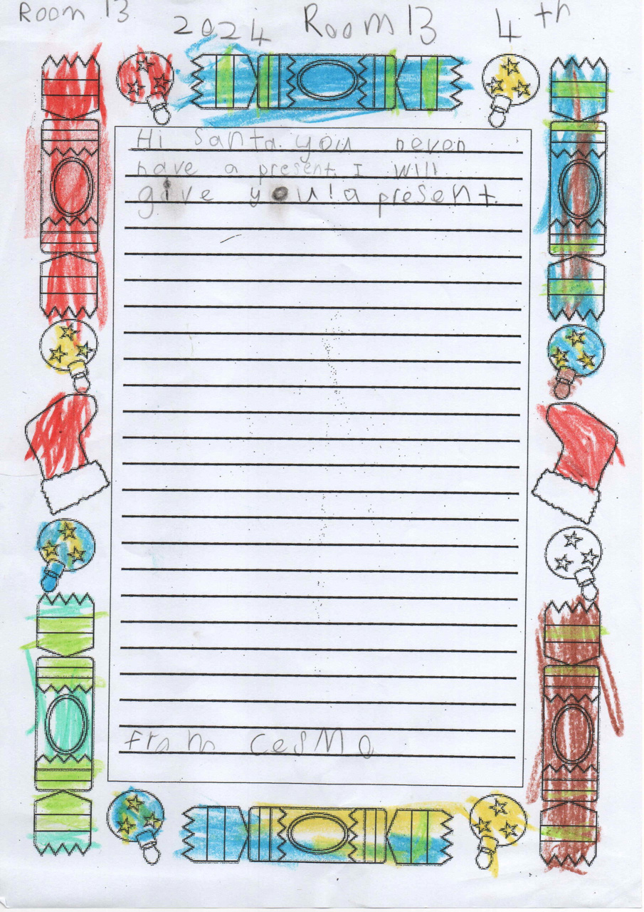 He is welcome to share it with the class if he likes before I find a space to display it.