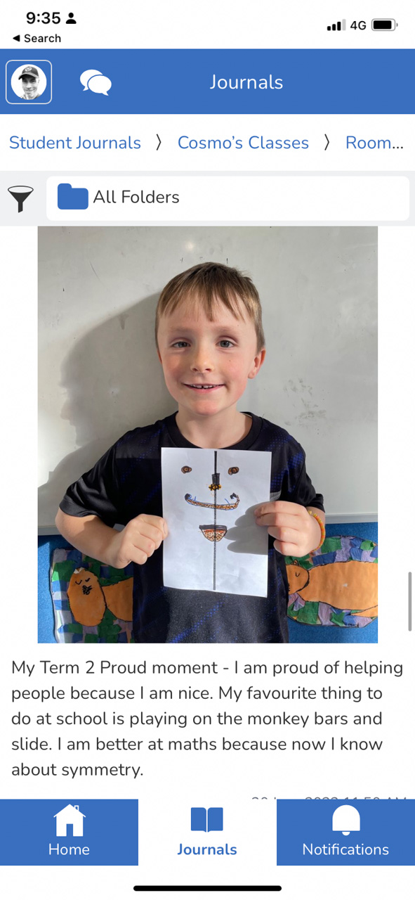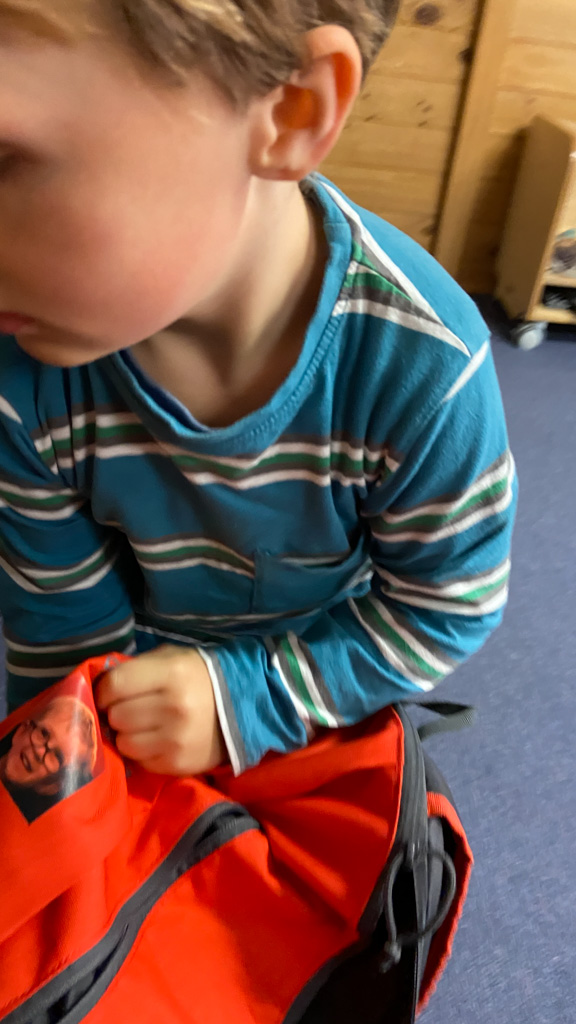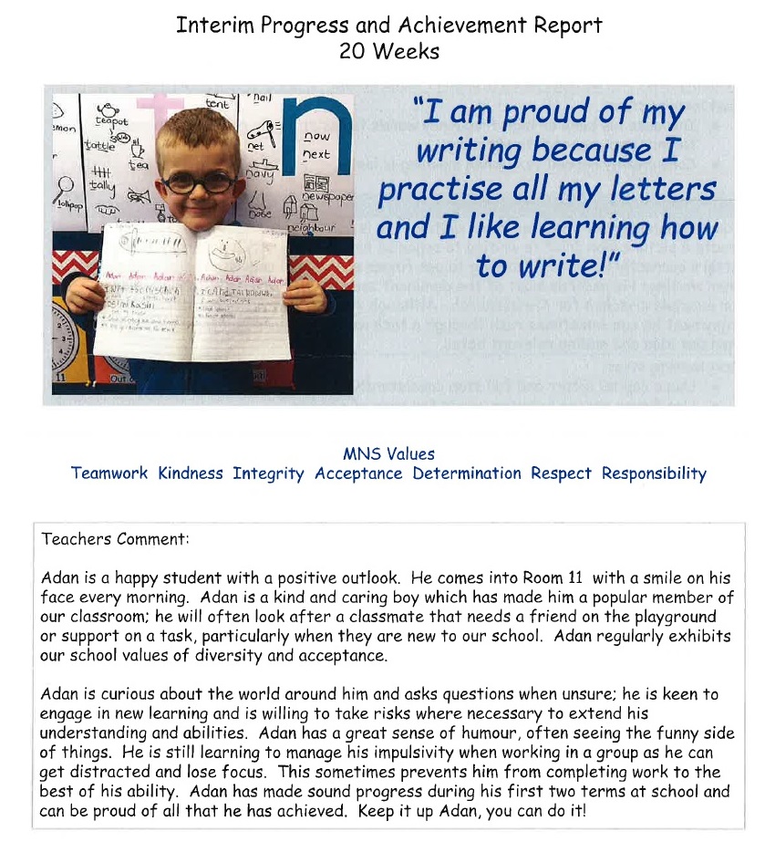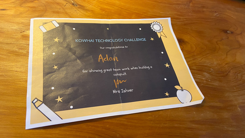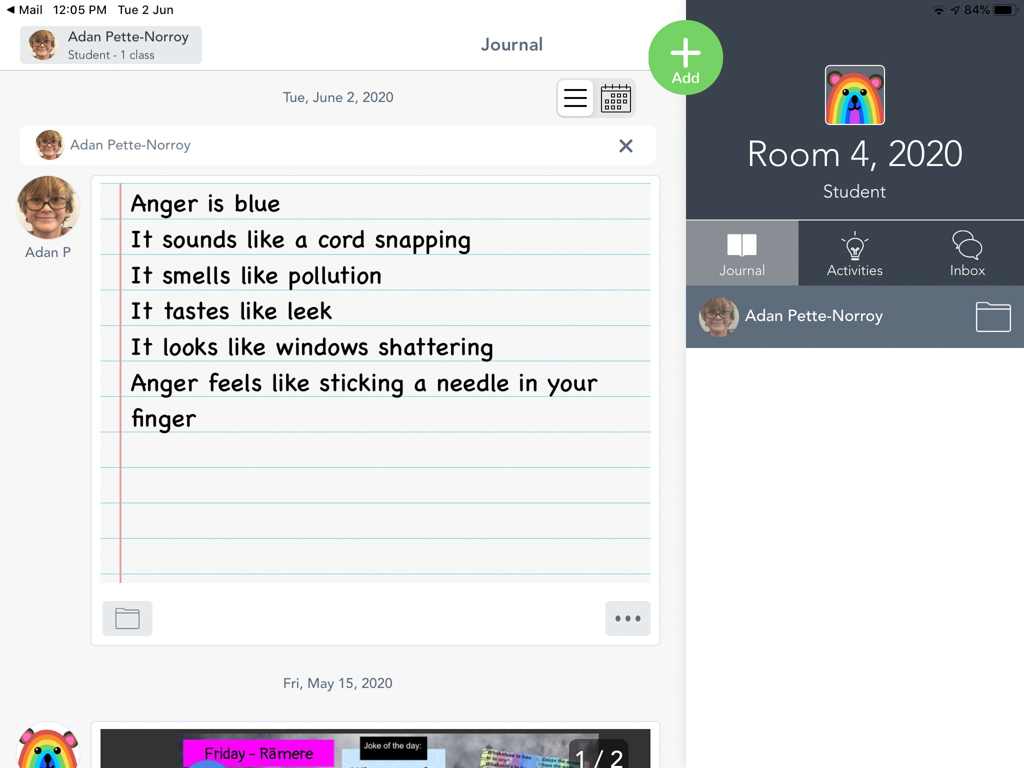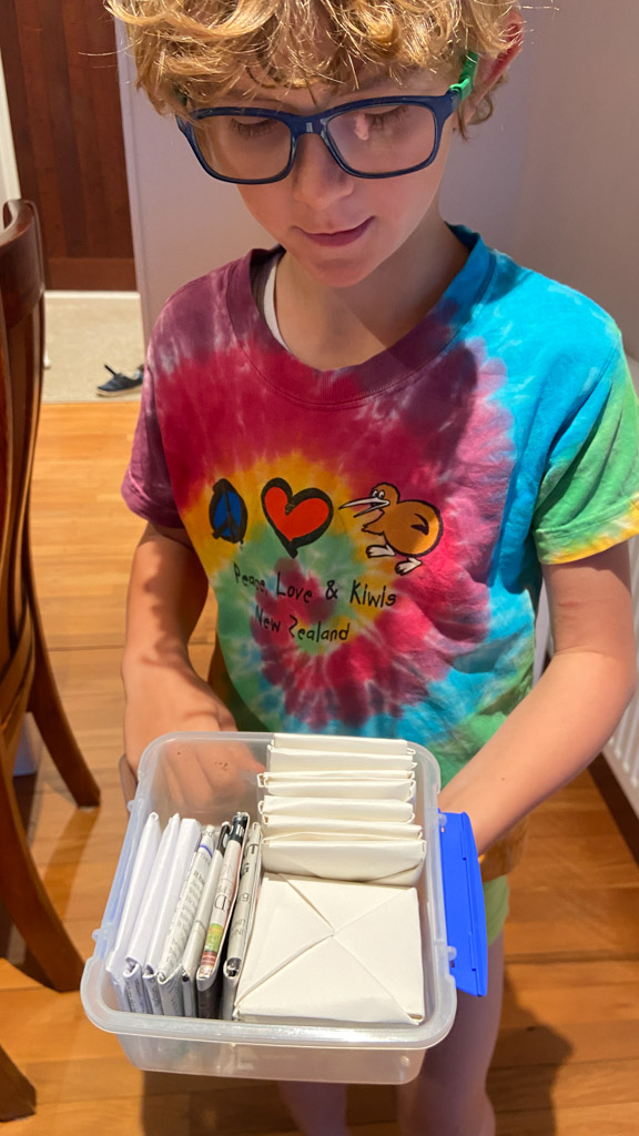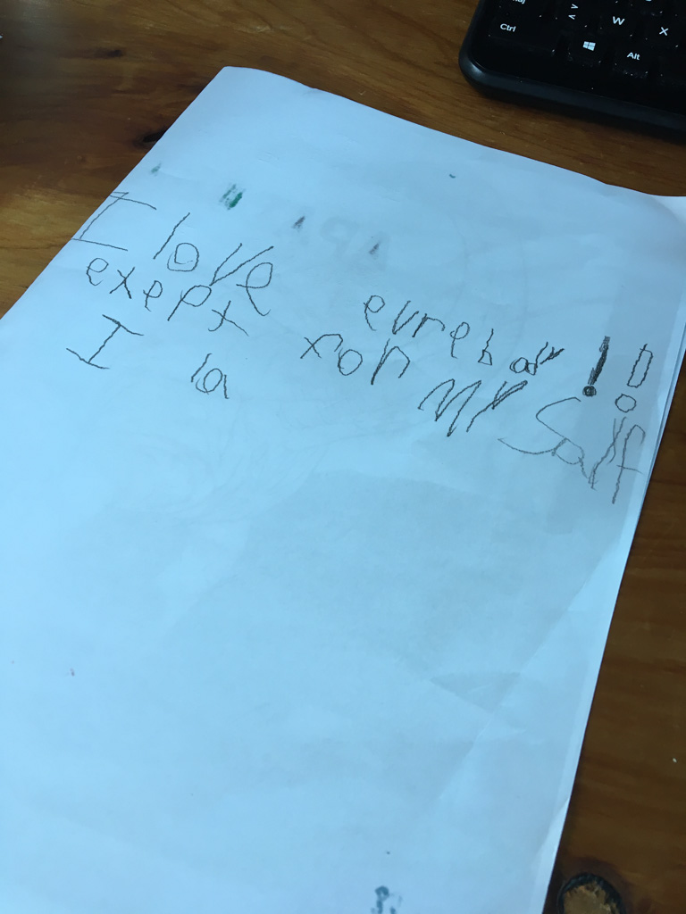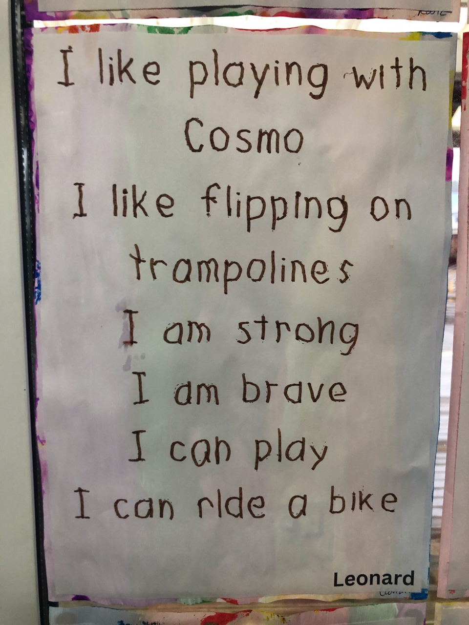He is welcome to share it with the class if he likes before I find a space to display it.