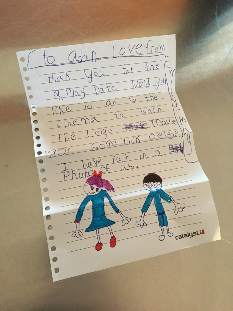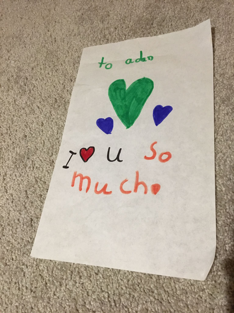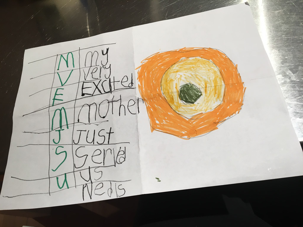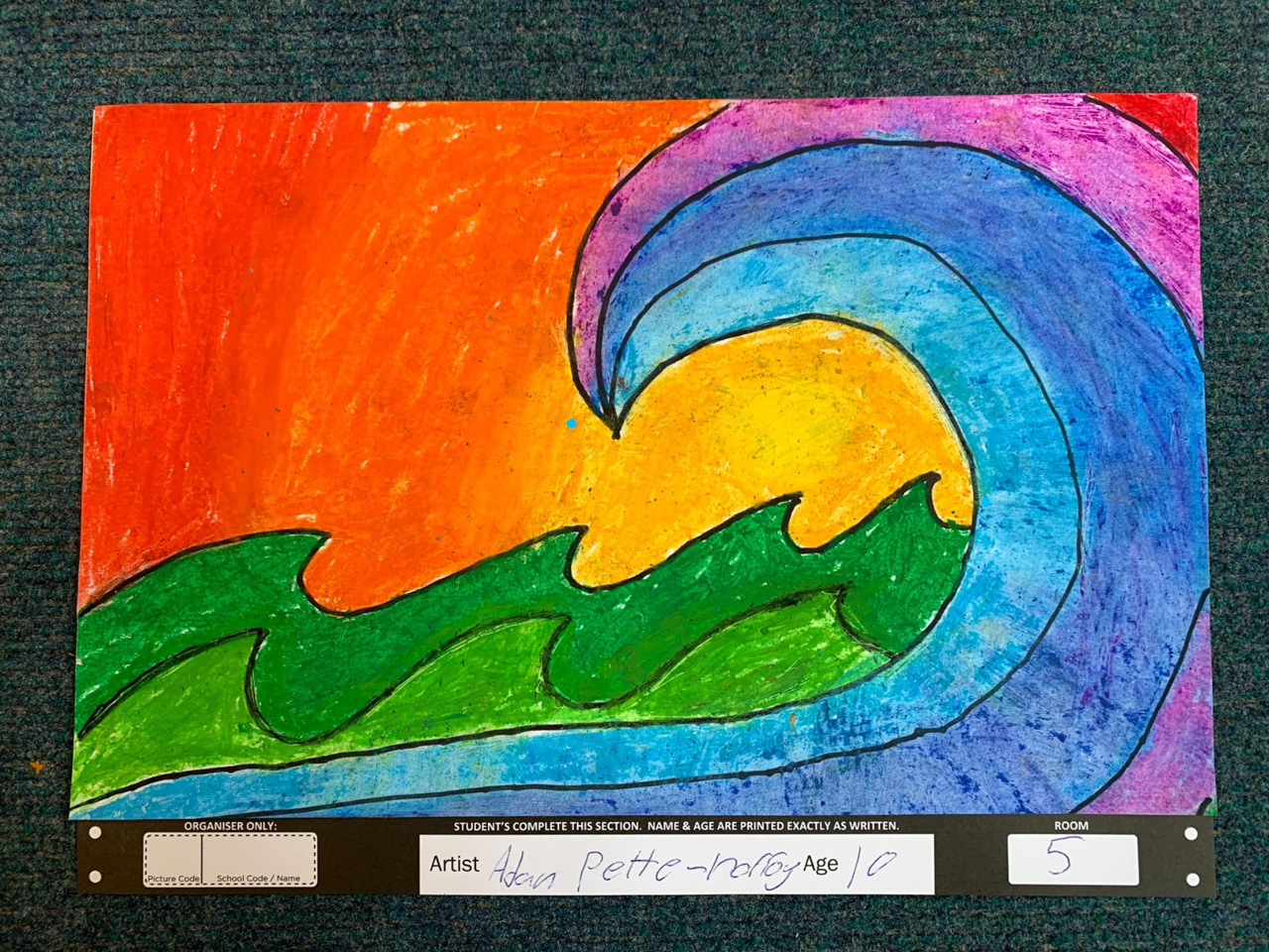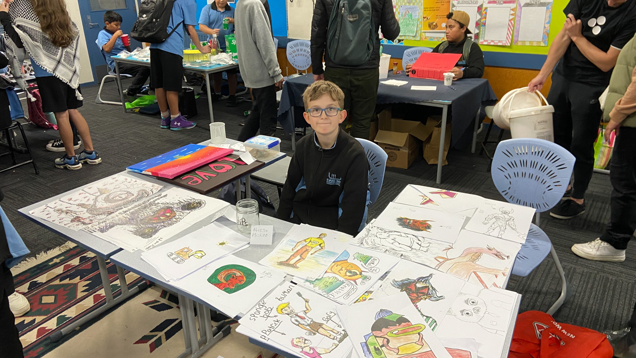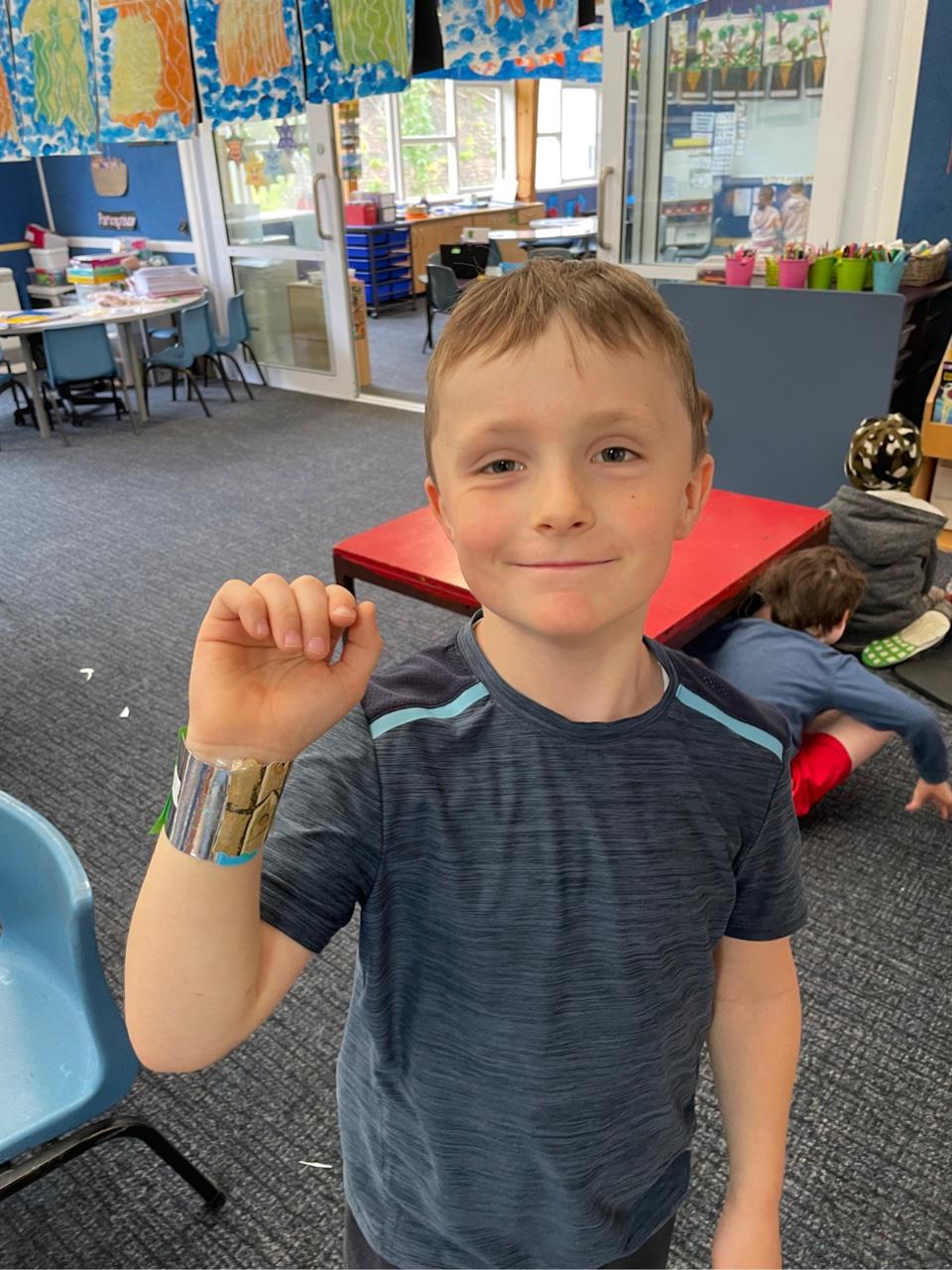 He is welcome to share it with the class if he likes before I find a space to display it.