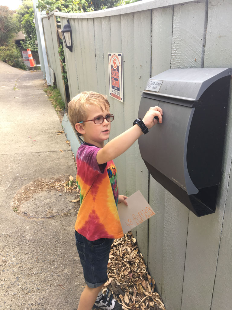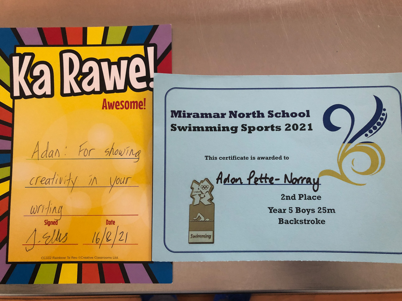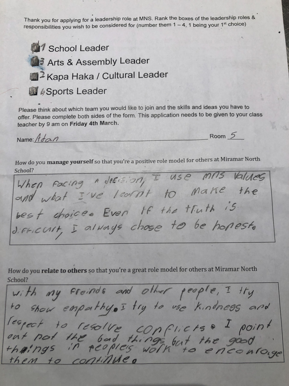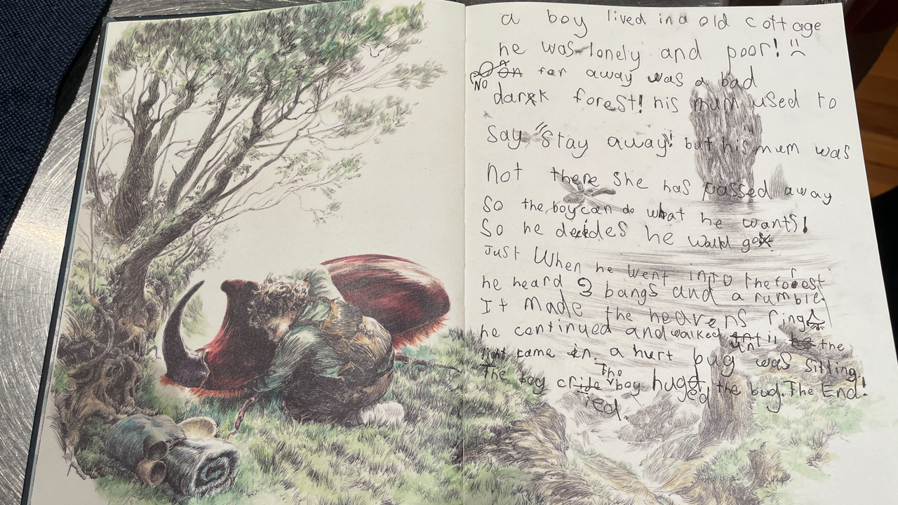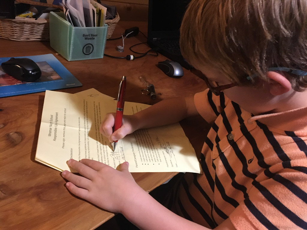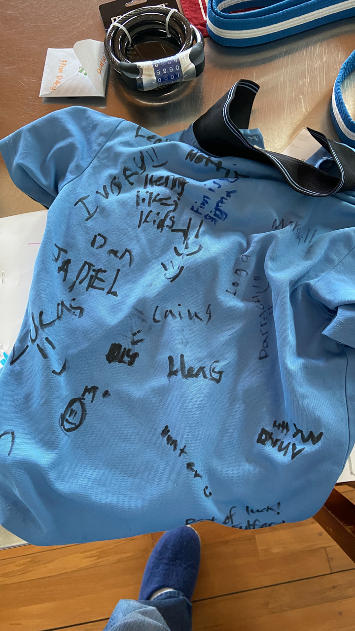 He is welcome to share it with the class if he likes before I find a space to display it.