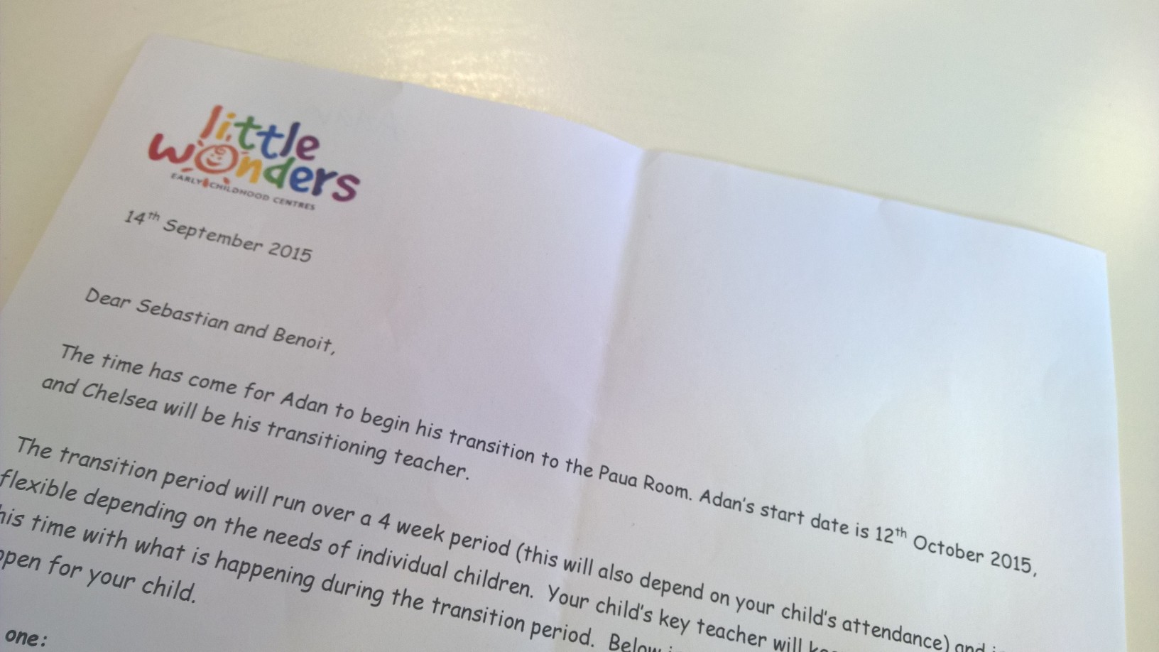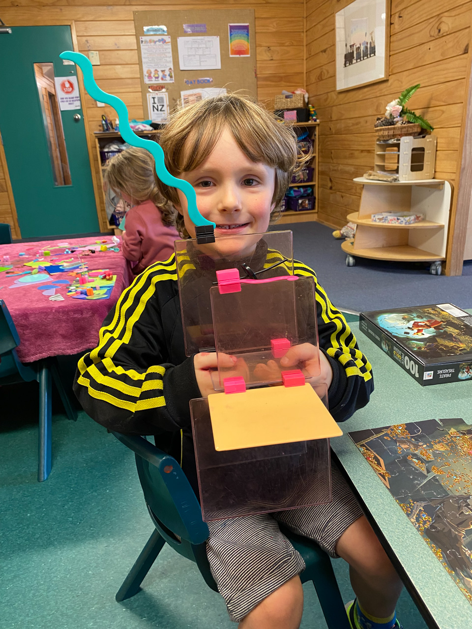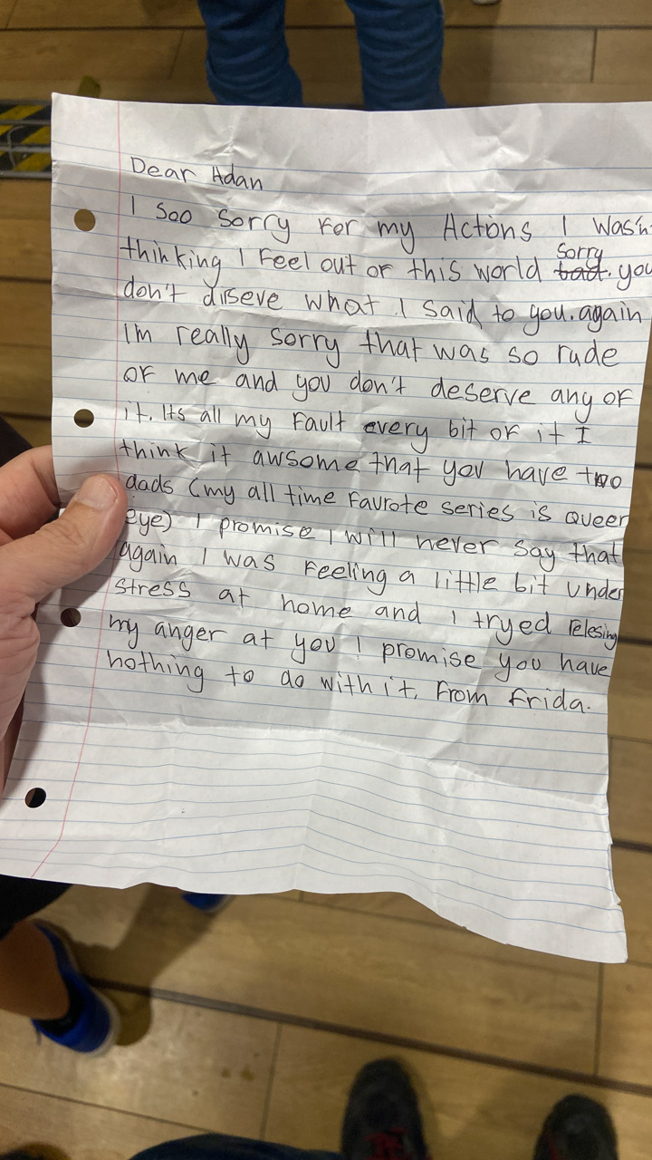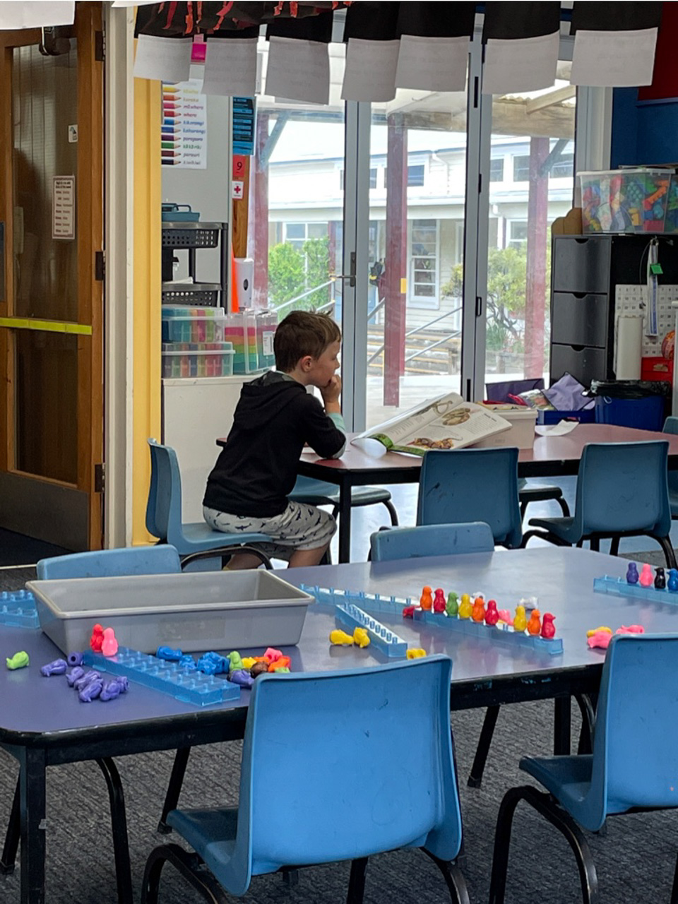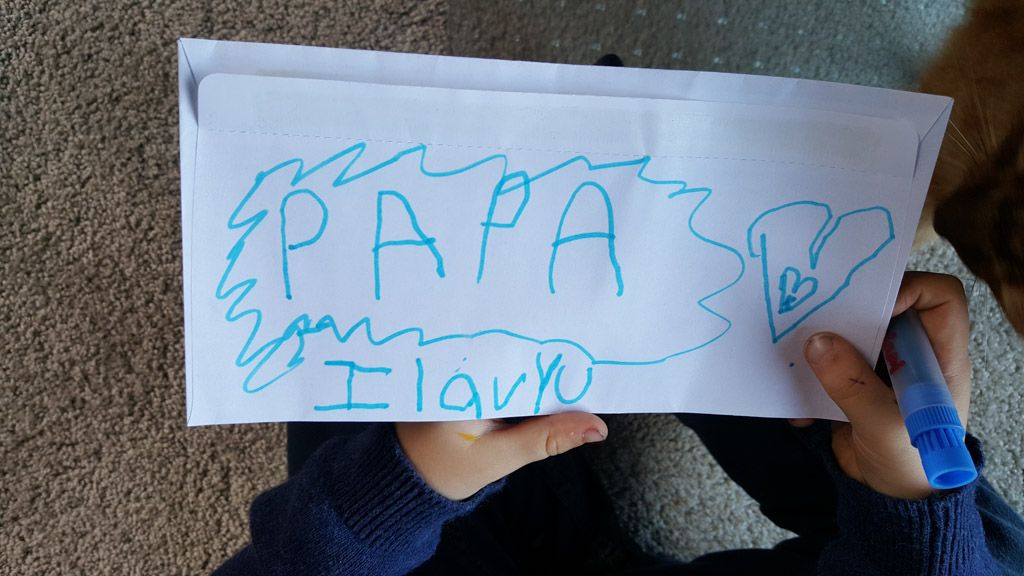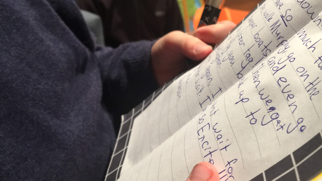 He is welcome to share it with the class if he likes before I find a space to display it.