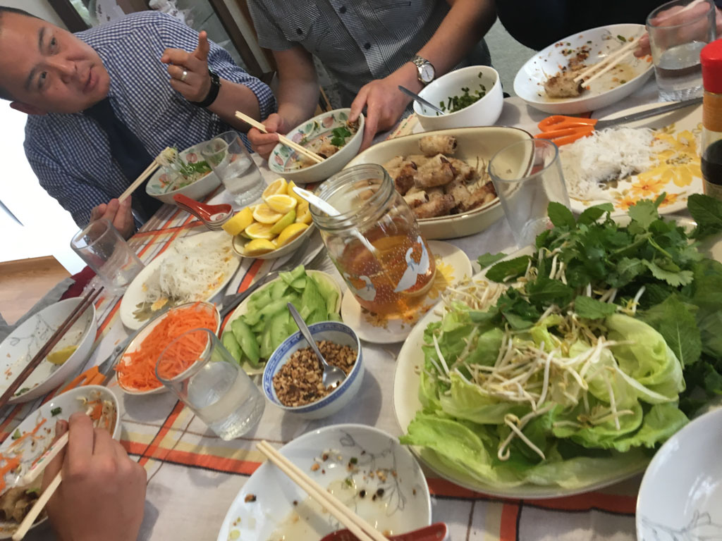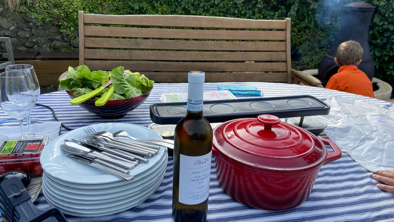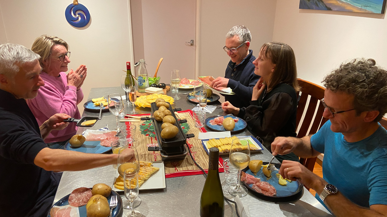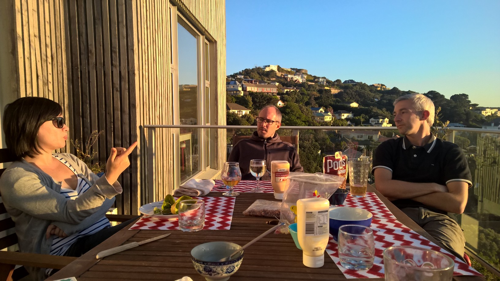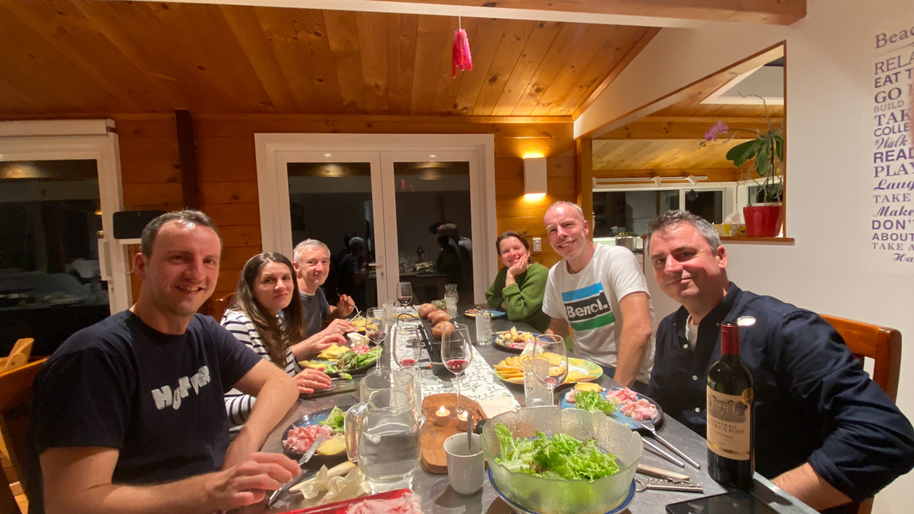 Comme tous les ans, nous avons invite Dianne et sa famille a diner a la maison. C'etait tellement calme dehors que nous y avons pris l'apero.