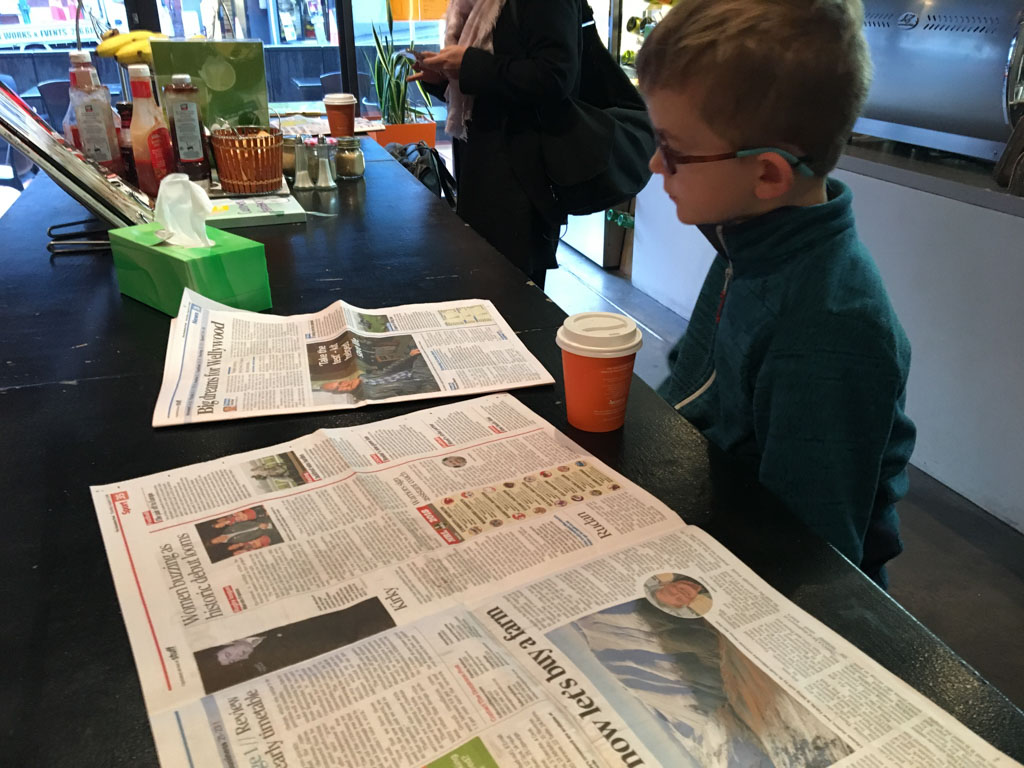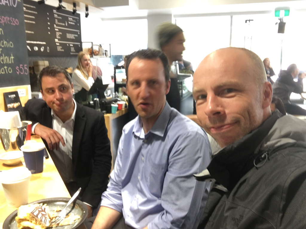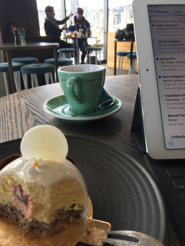 Ce matin, j'ai pris un cafe avec Rupert Wilson a Polo, Miramar. J'y ai paye le long black le plus cher de toute ma vie: $5.50! Ce cafe n'etait pas meilleur, il etait juste hors de prix. Pour avoir eu un cafe a une epoque, je connais la marge astronomique sur ce produit, et je n'arrive pas a croire que la faiblesse du NZD ou les recoltes tardives aient pu rogner a ce point ladite marge. Quand je pense que certains annoncent des prix allant de $8 a $10 pour le cafe! Comme le beurre, je vais changer mes habitudes ... et aussi ne plus jamais remettre un pied chez Polo.