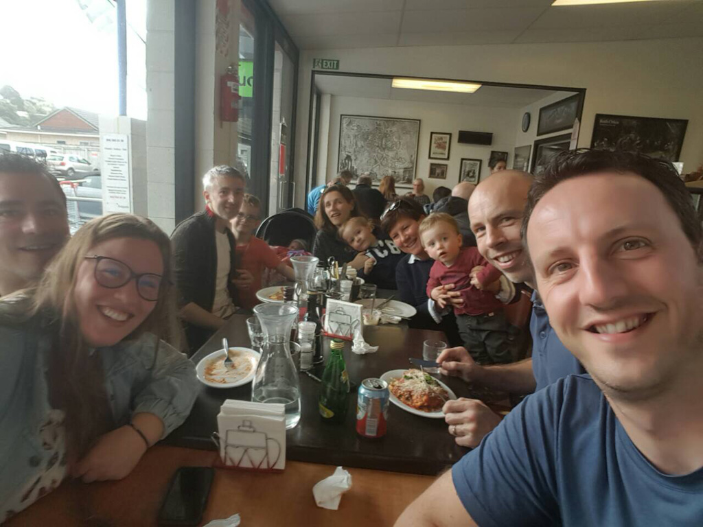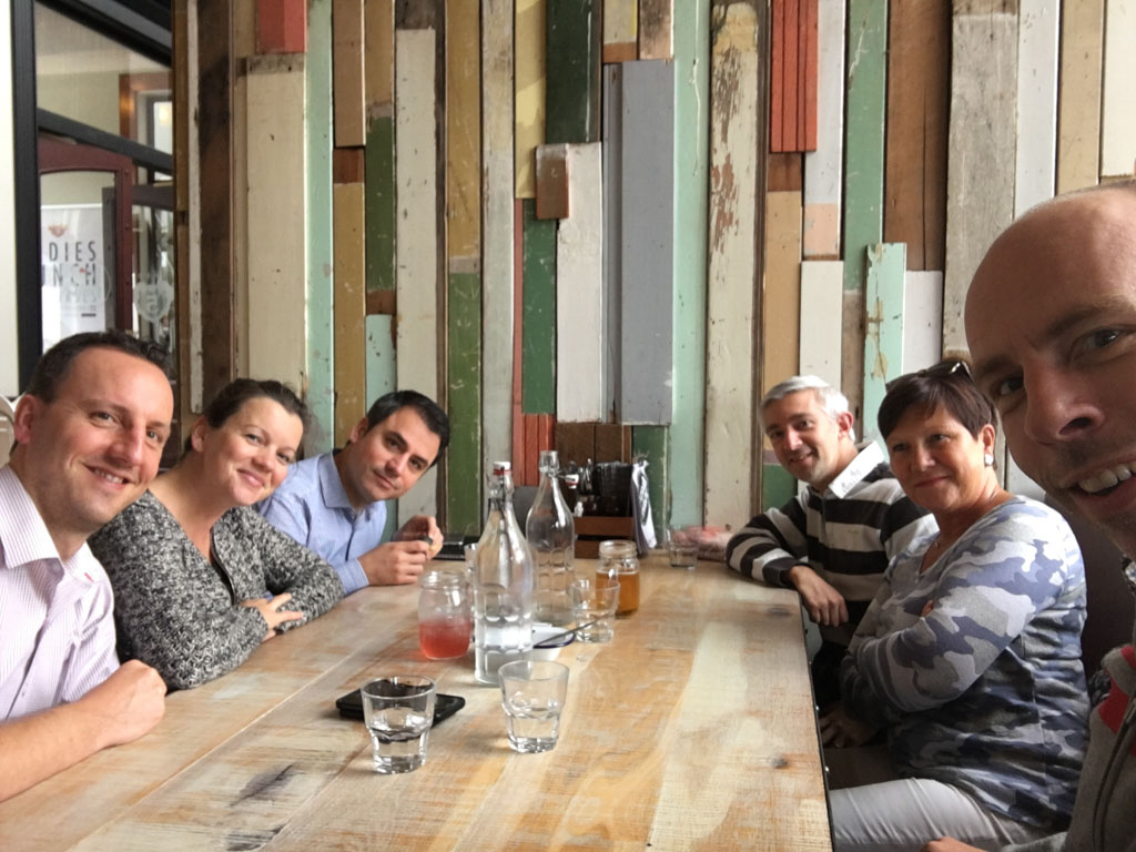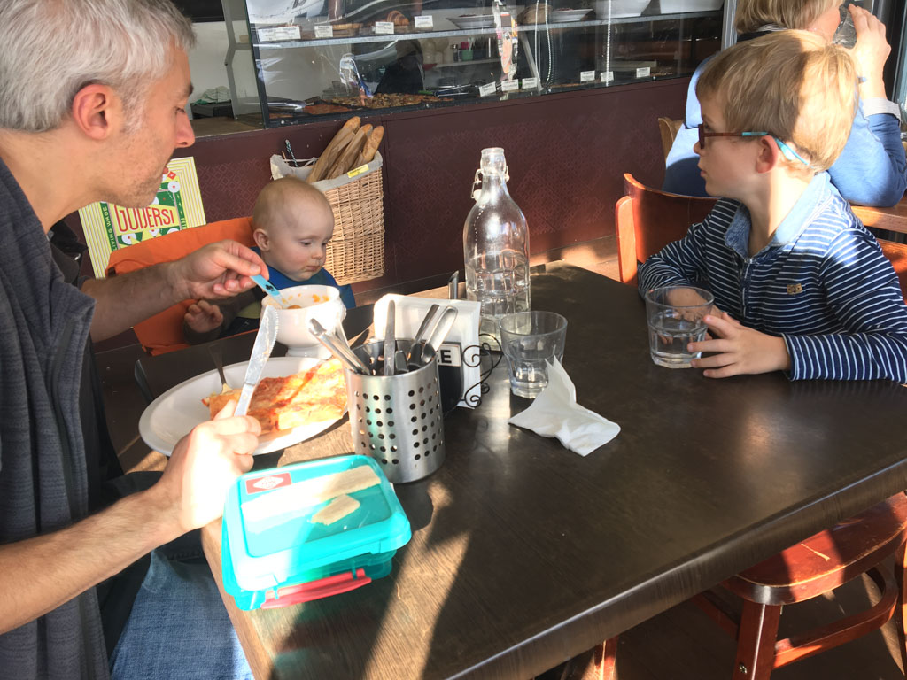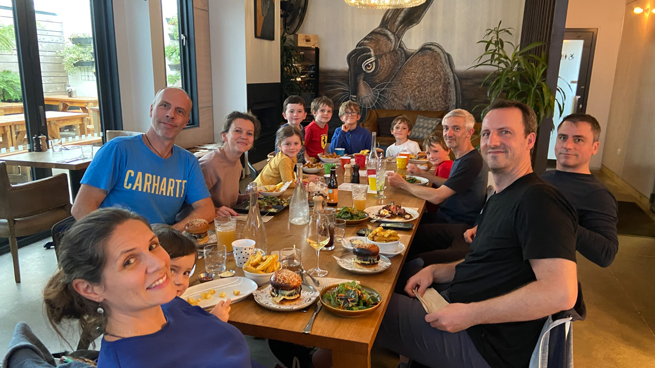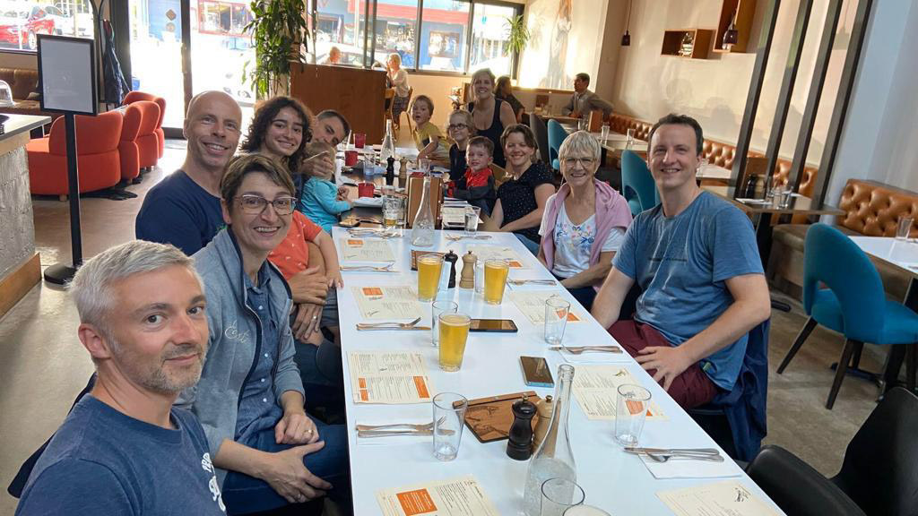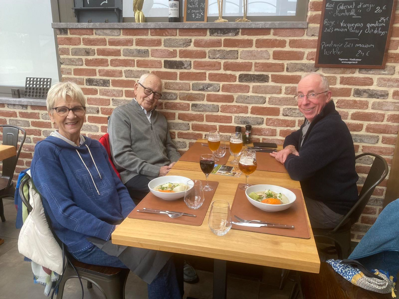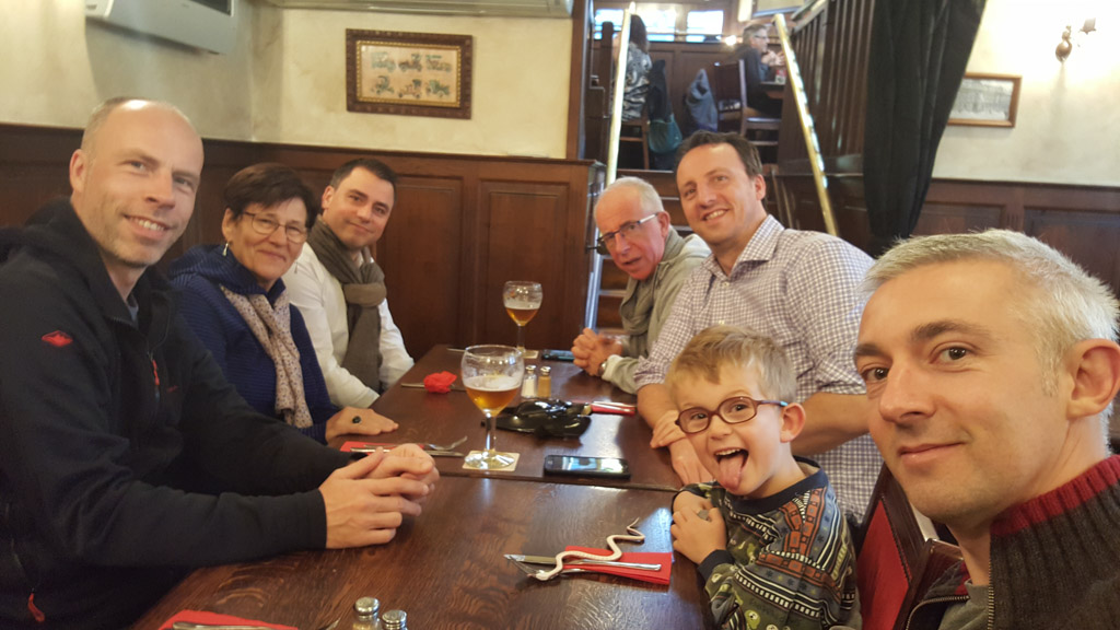 Pape demenage dans la maison de retraite en face de chez lui. Les parents et Daniele sont venus l'aider, avec une petite pause biere a l'estaminet de Wittes. Une belle facon de passer cette etape.