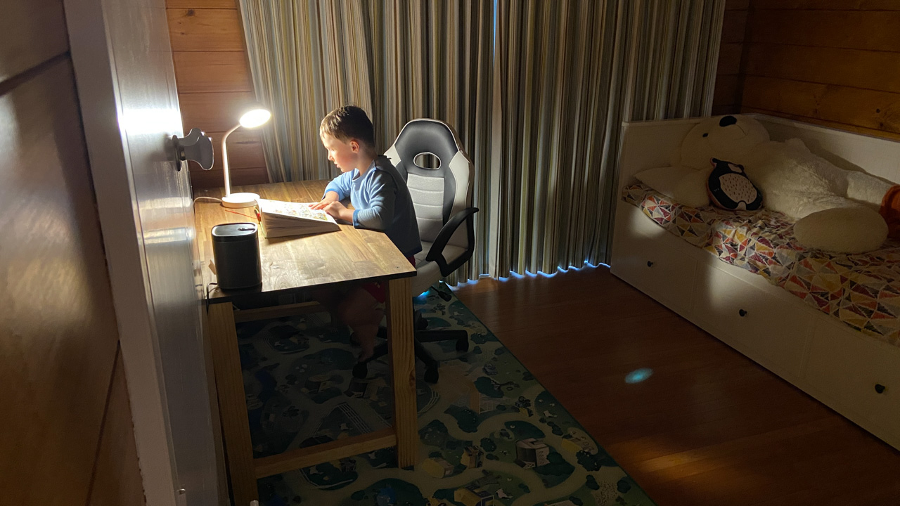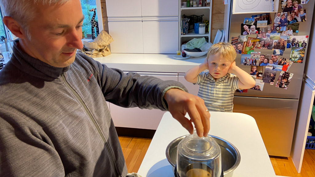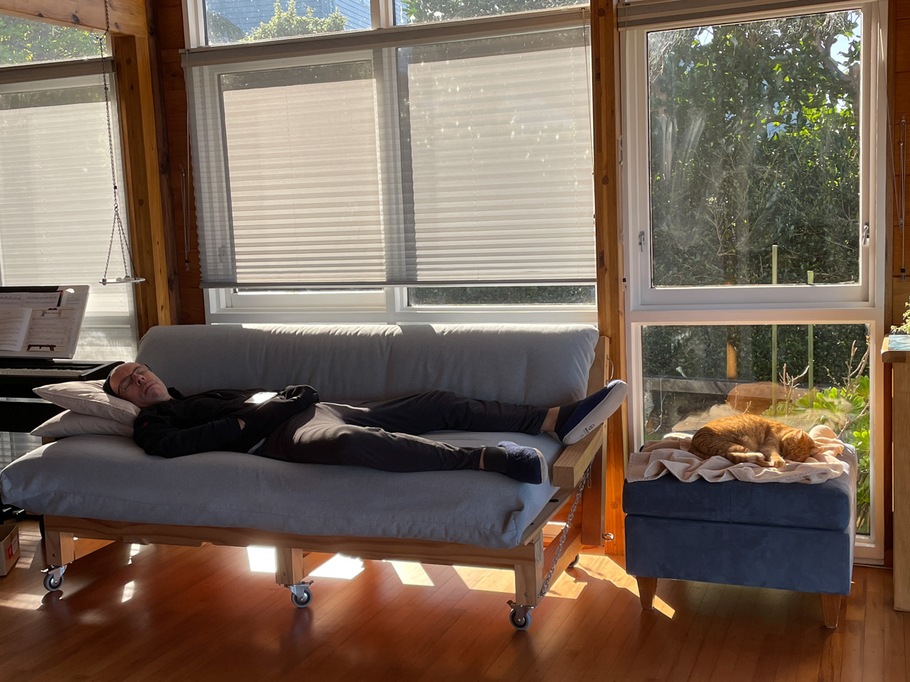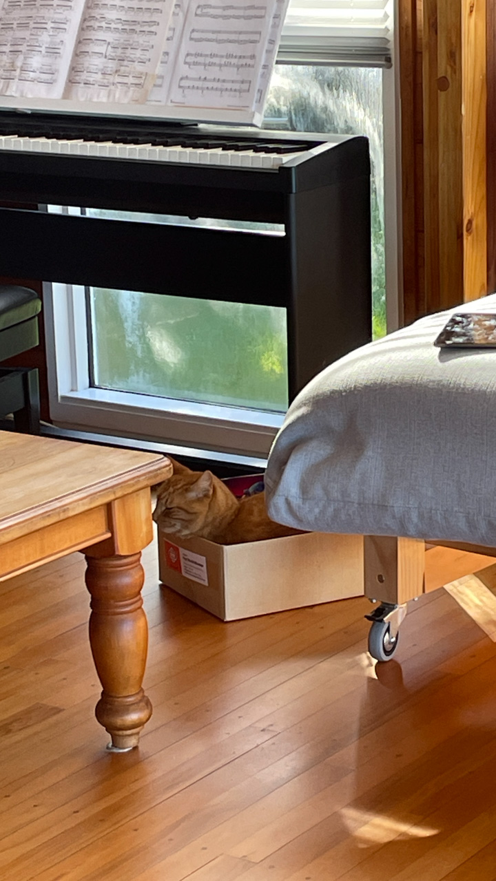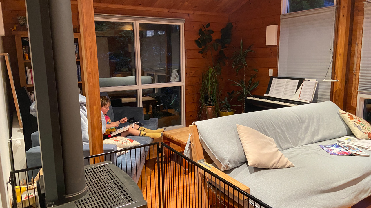 Tres souvent, Adan finit de se preparer le matin avant l'heure ou il doit quitter la maison. Il glisse alors vers le piano, enfile le casque et s'entraine (en ce moment, il apprend le theme musical de Tron Legacy). De l'exterieur, aucune note ne nous parvient, mais le bruit des touches qu'il enfonce avec velocite. Les marteaux (numeriques) battent la mesure jusque dans le bureau au dessus du salon!