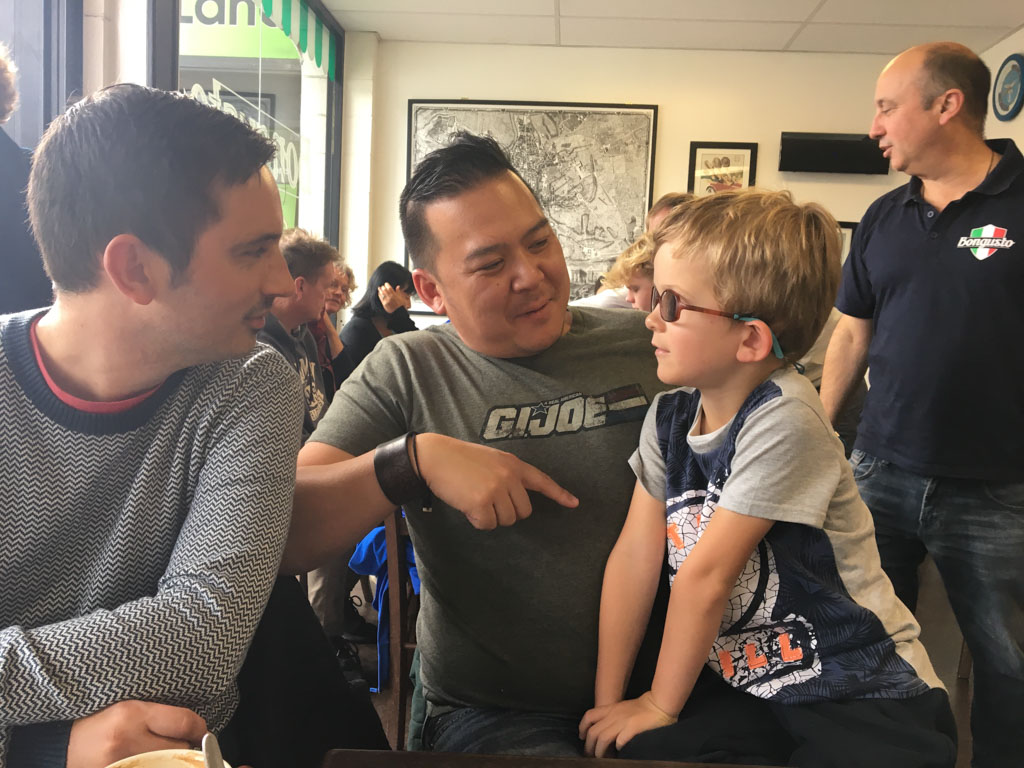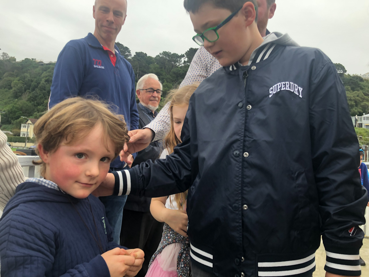 Bien que ce cadeau soit destine aux deux garcons, c'est Adan que revient la primeur de le naviguer en premier car c'est grace a lui qu'il a pu monter en Blue Fleet. Ce matin, c'est un melange de nervosite et de fierte qui anime notre aine.