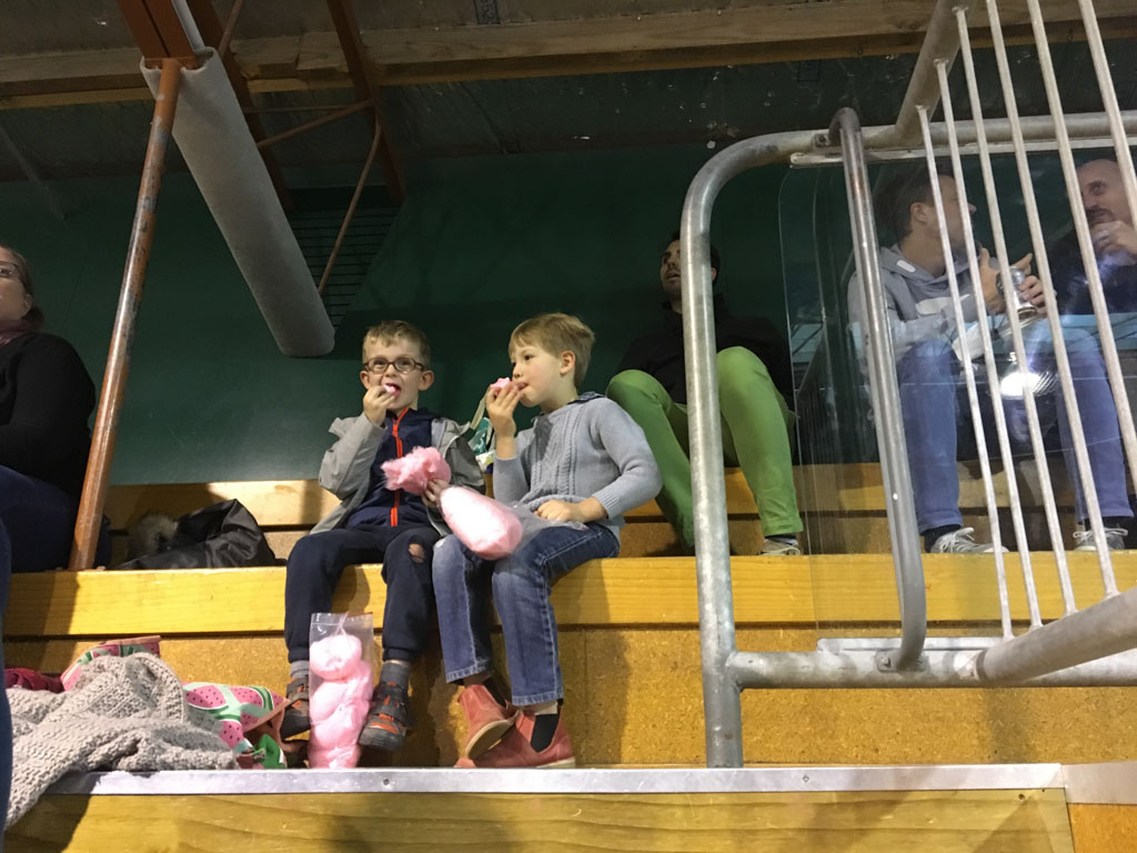 Cosmo est au goal aujourd'hui. Ce fut un bon match puisqu'ils ont gagne 7 a 2!