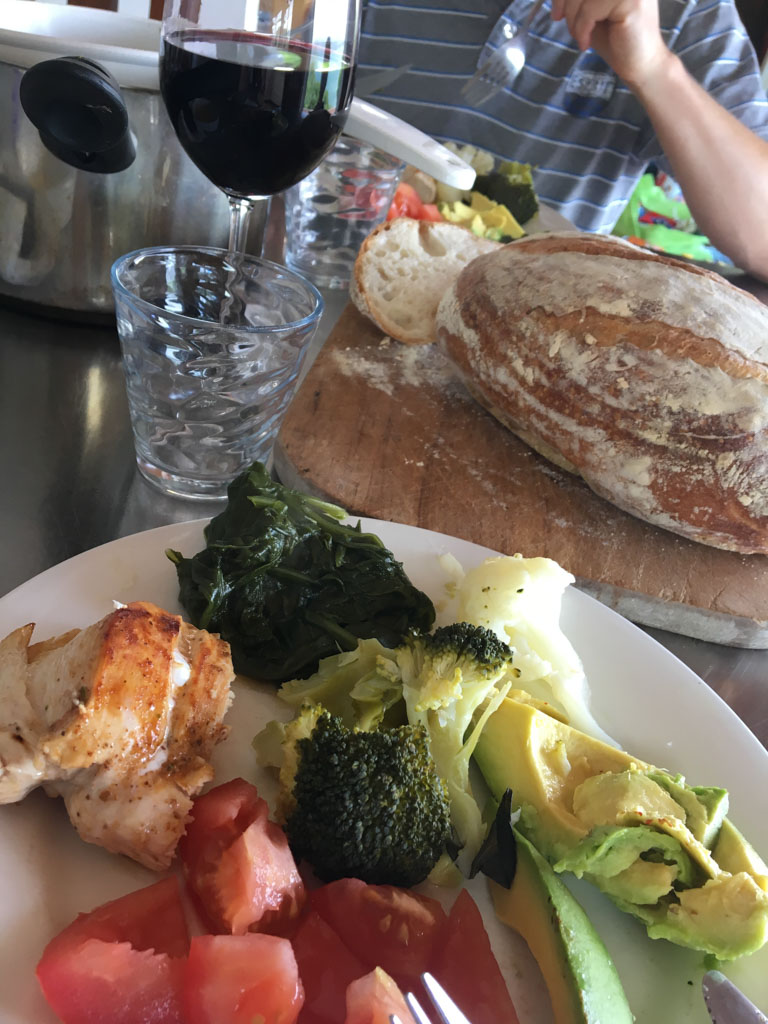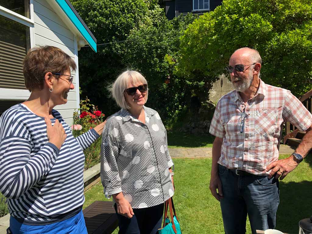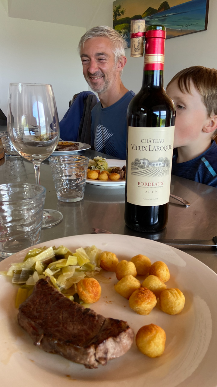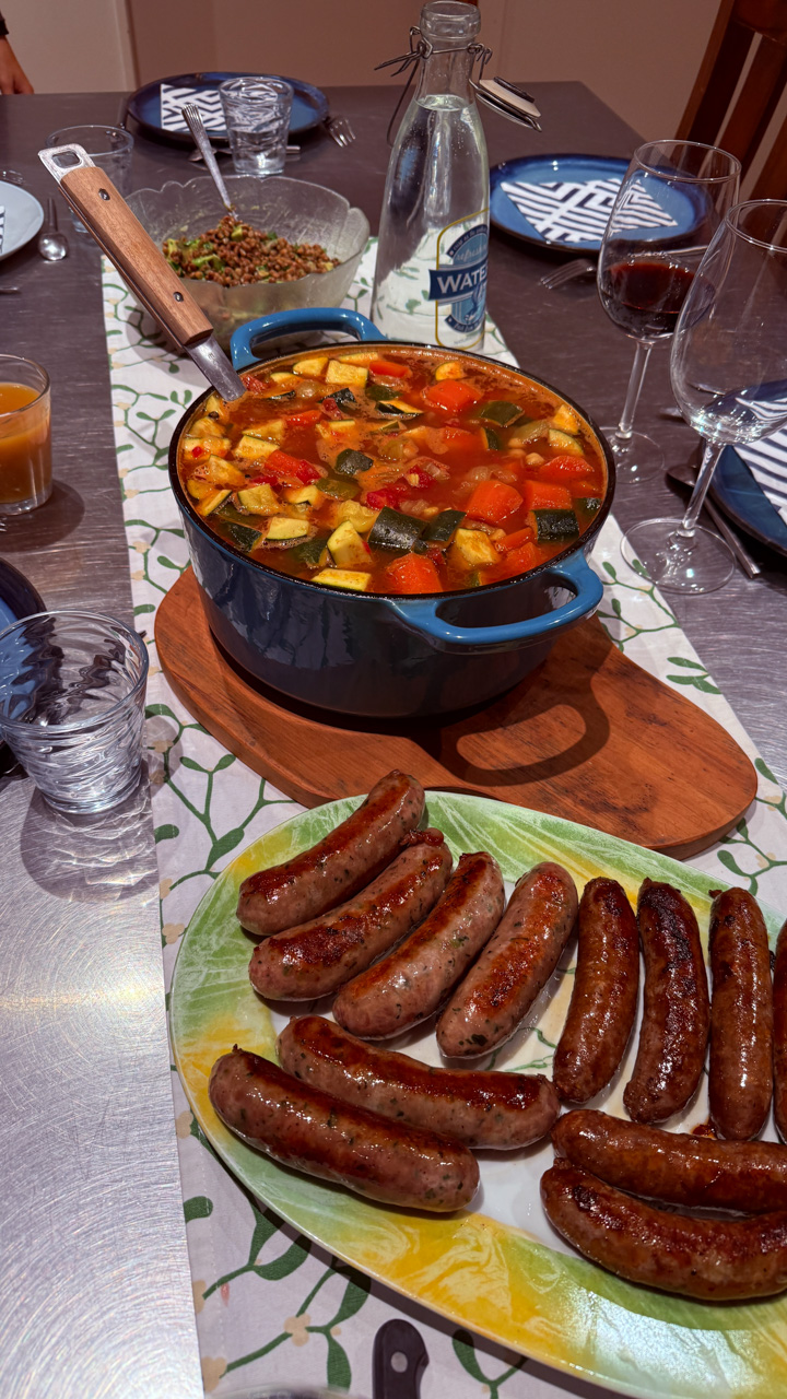 Ce midi, Roy et Carole sont venus manger a la maison. Nous avons passe un excellent moment en leur compagnie, comme d'habitude, et avons ete aide par des conditions de soleil et de calme exceptionnelles.
