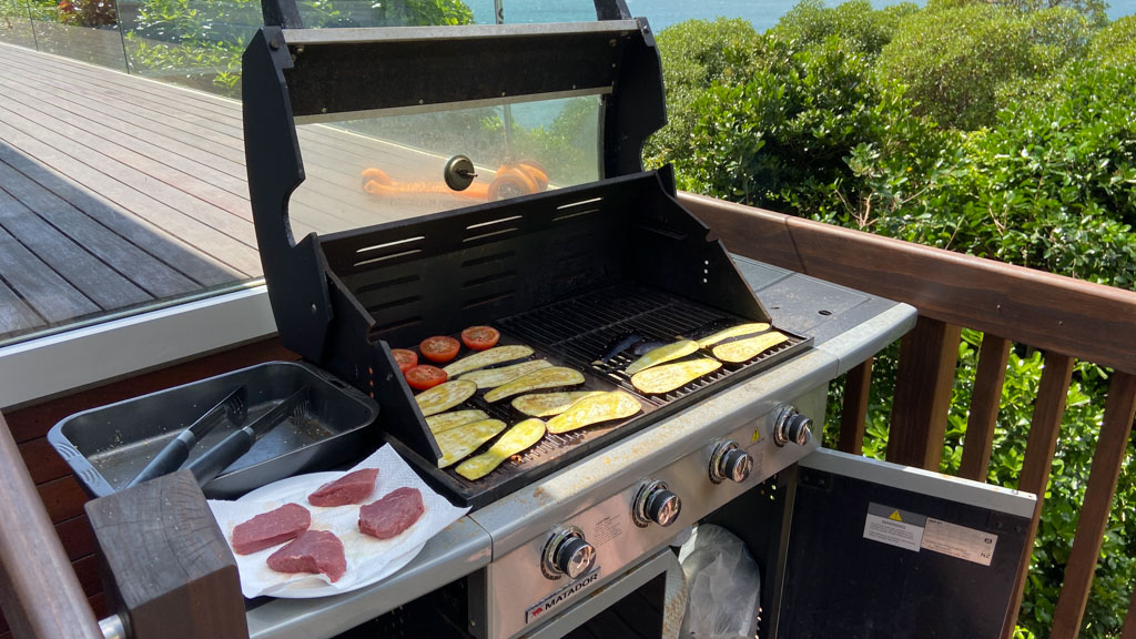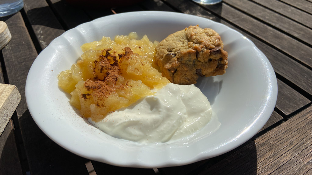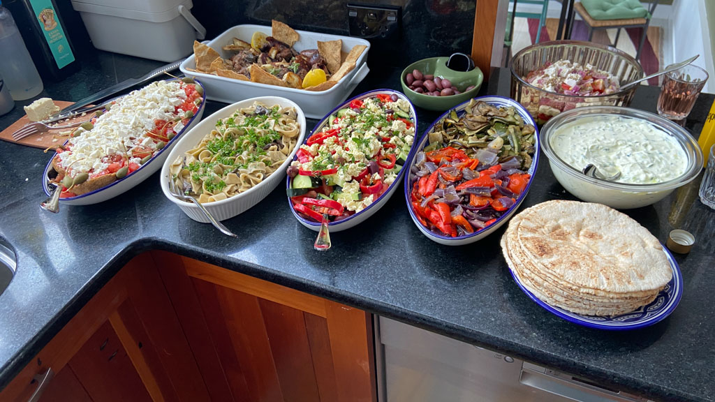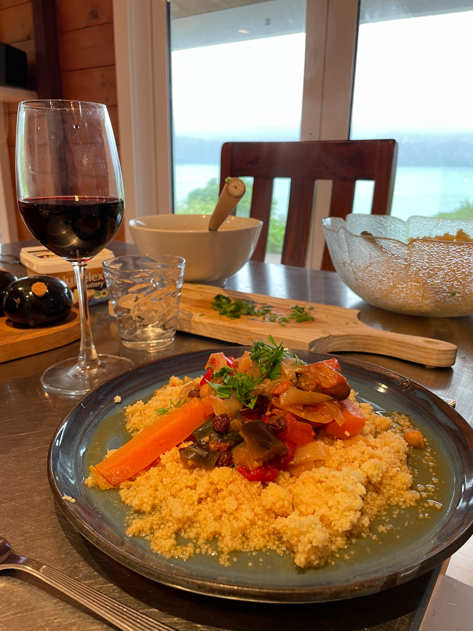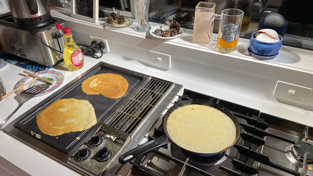 Ce midi, Roy et Carole sont venus manger a la maison. Nous avons passe un excellent moment en leur compagnie, comme d'habitude, et avons ete aide par des conditions de soleil et de calme exceptionnelles.
