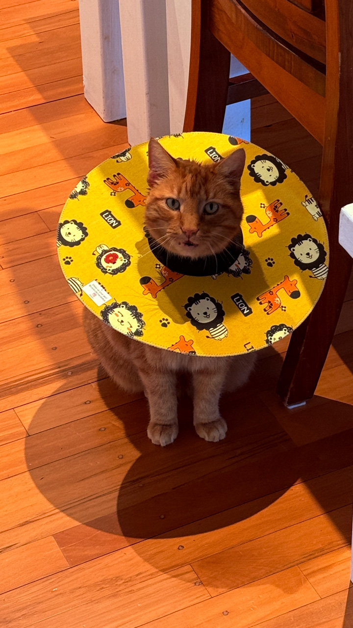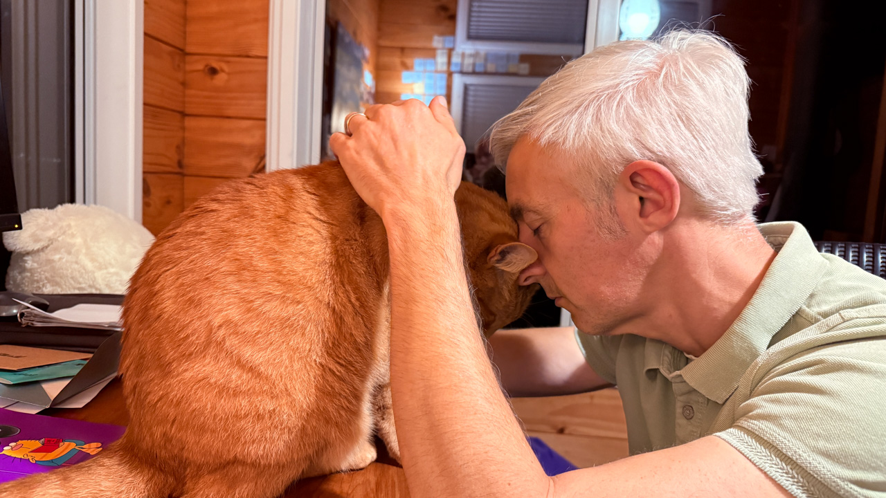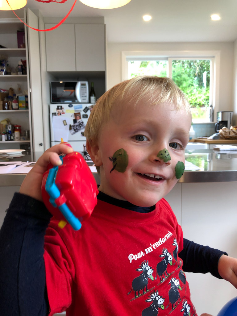 Cosmo s'est fait maquiller par Adan, lui qui a refuse de se deguiser cette annee (il est bien trop cool pour ca!). Cosmo n'a pas boude son plaisir!
