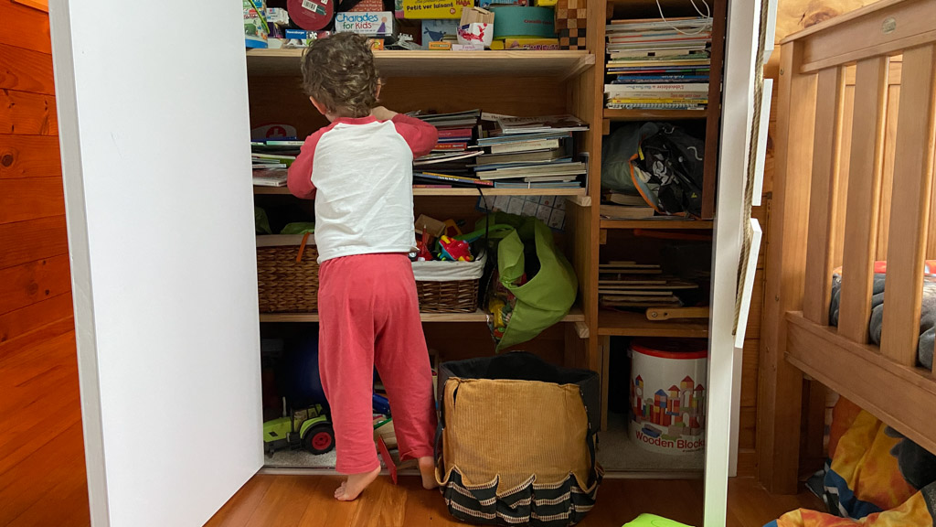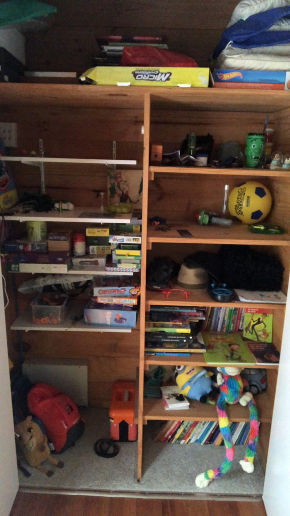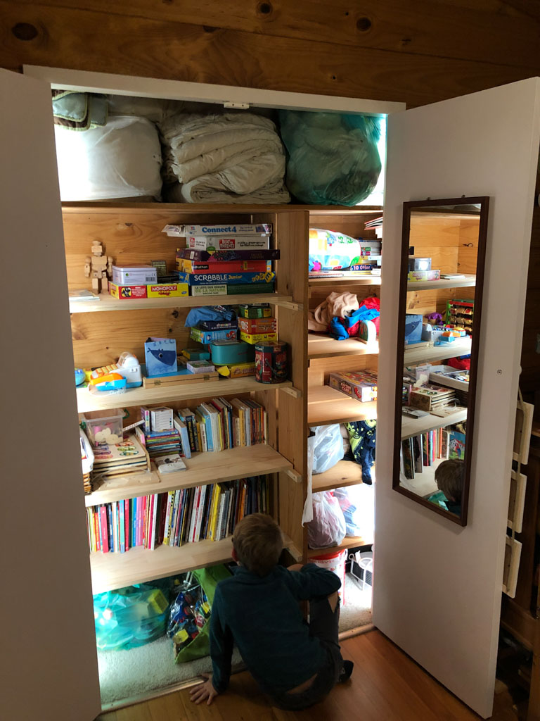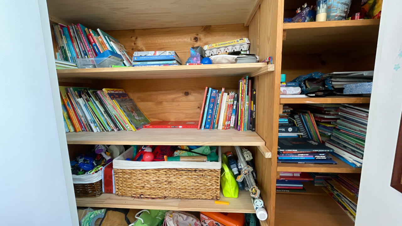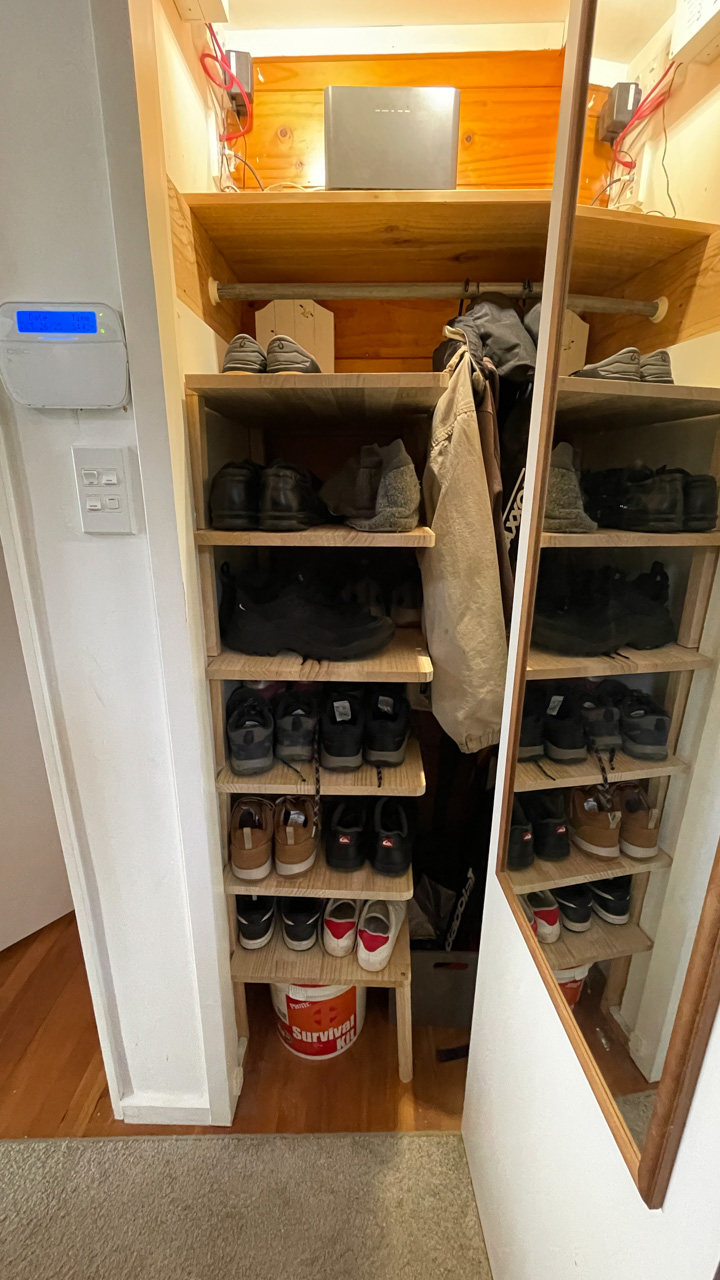 Longtemps reporte, Seb s'y est finalement colle: il n'y aura plus de chaussres en etalage dans notre entree puisque nous avons maintenant une etagere a chaussures (faite maison bien sur) dans le placard!