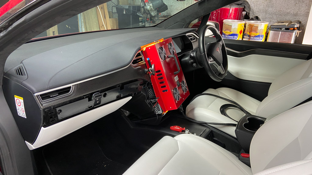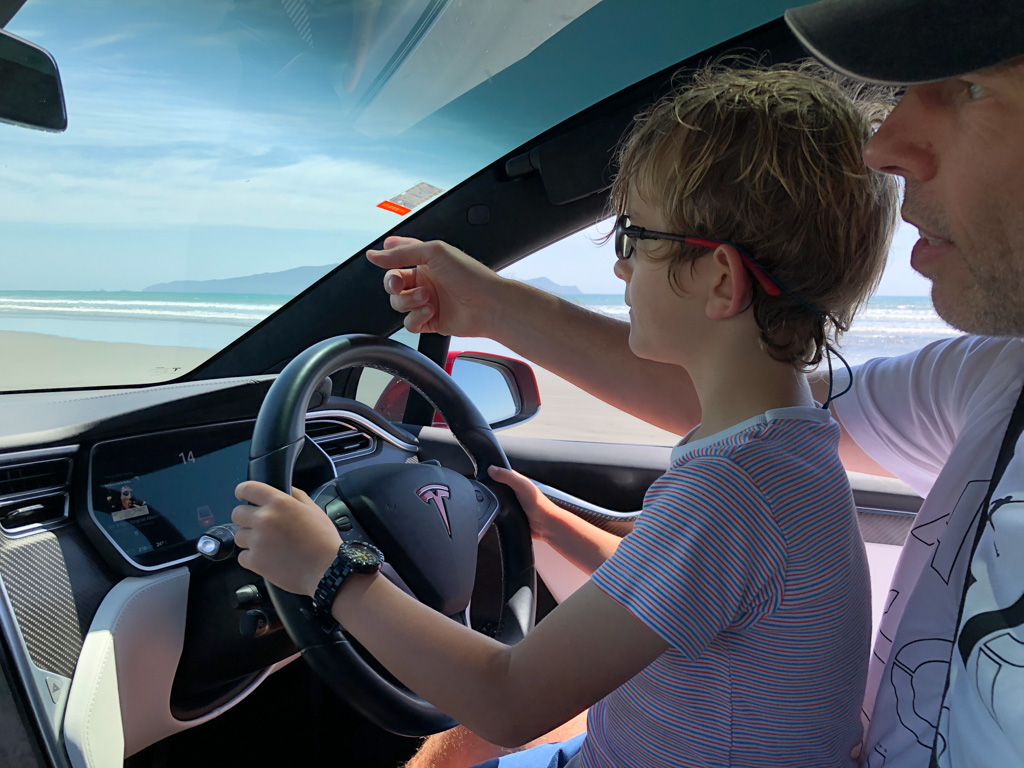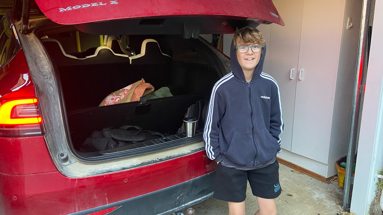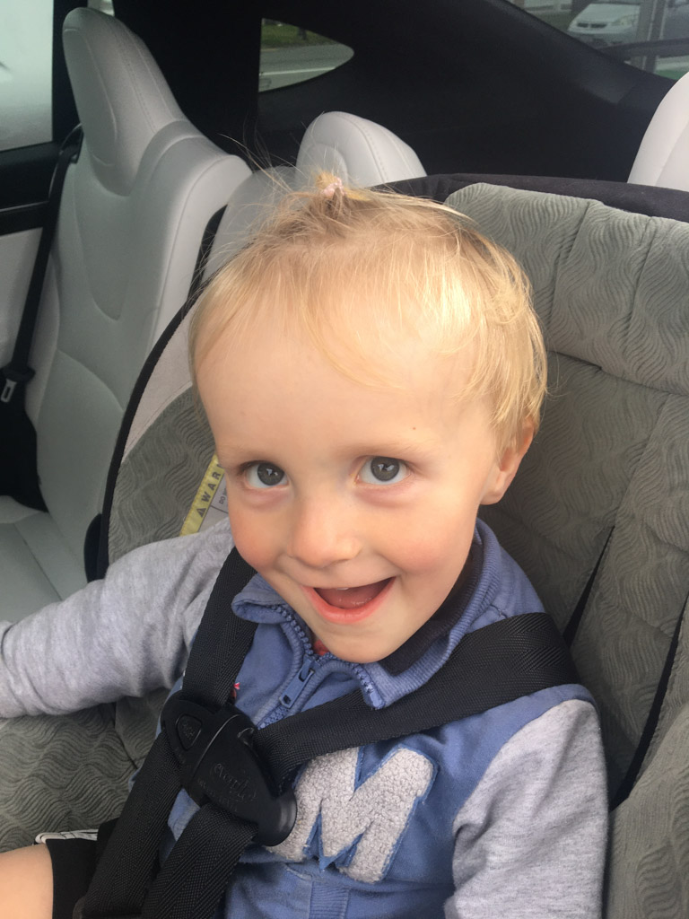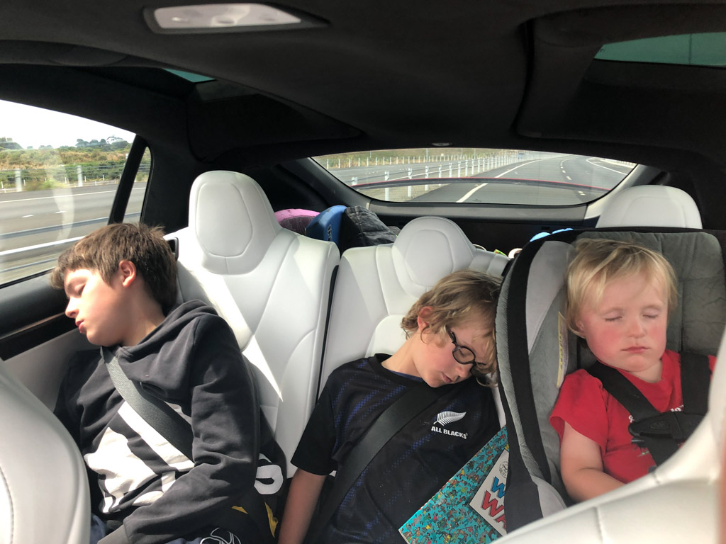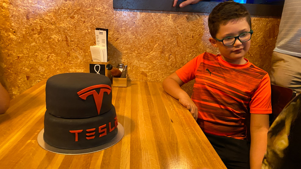 Cosmo a oublie que nous avons une Model Y (version 2026) en pret. L’intérêt numero 1, bien sûr, c’est l’écran a l’arrière.