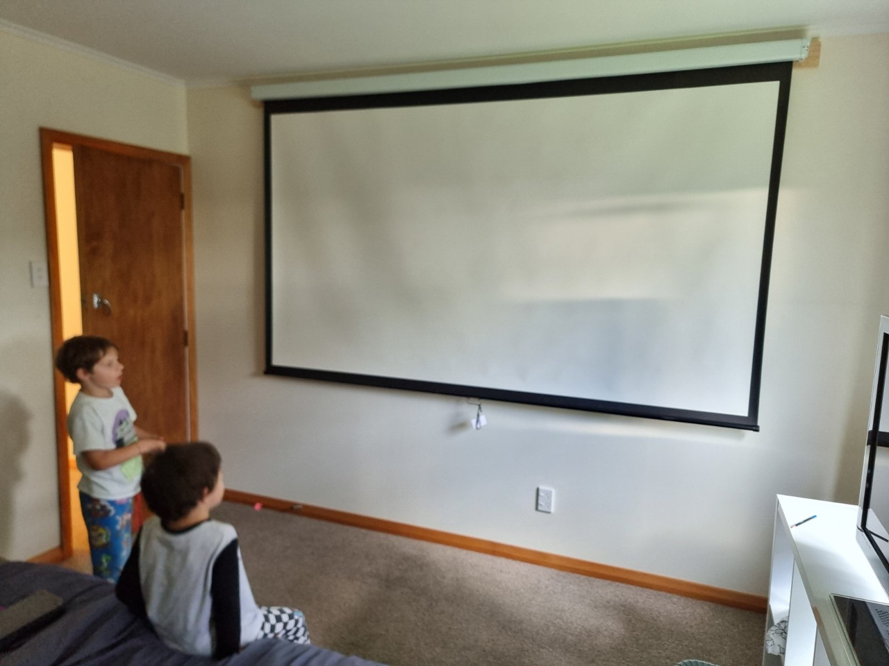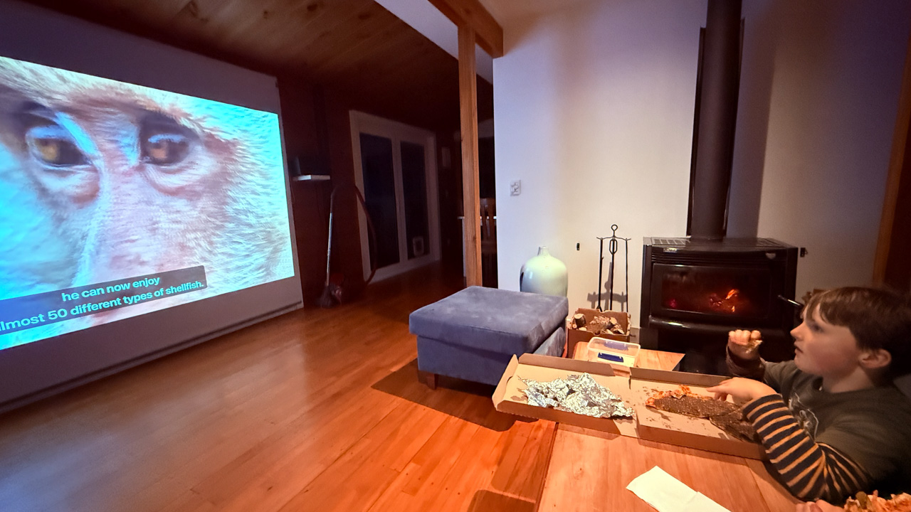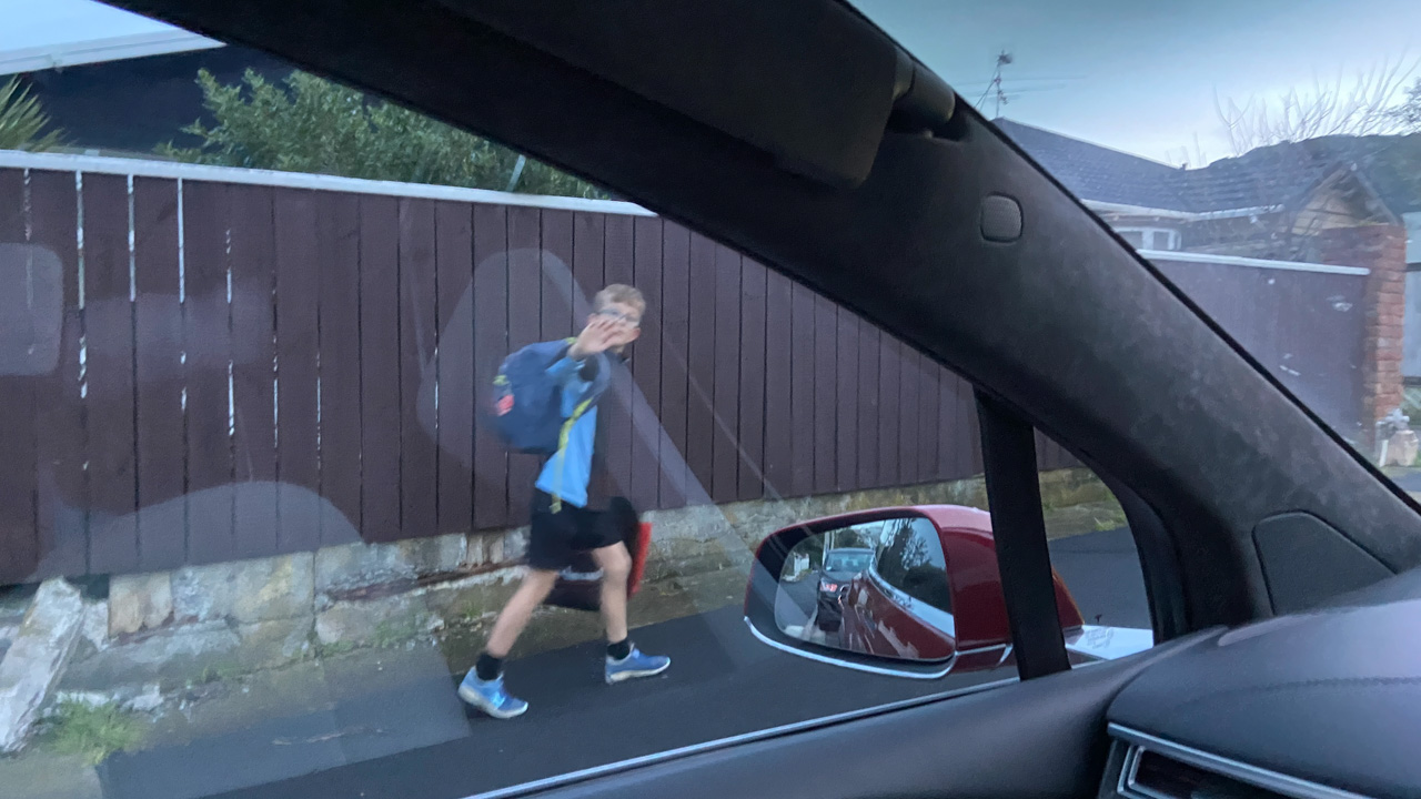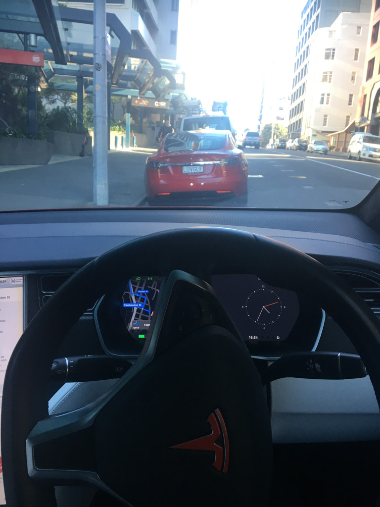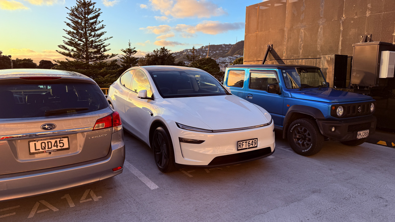 Cosmo a oublie que nous avons une Model Y (version 2026) en pret. L’intérêt numero 1, bien sûr, c’est l’écran a l’arrière.