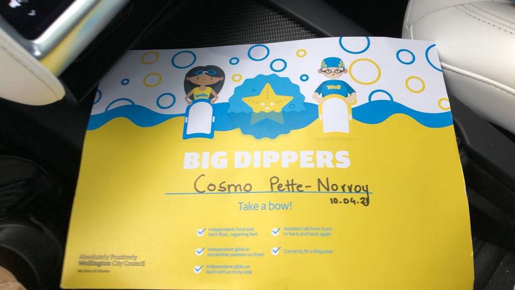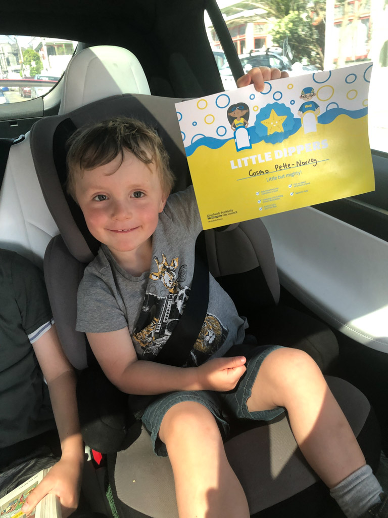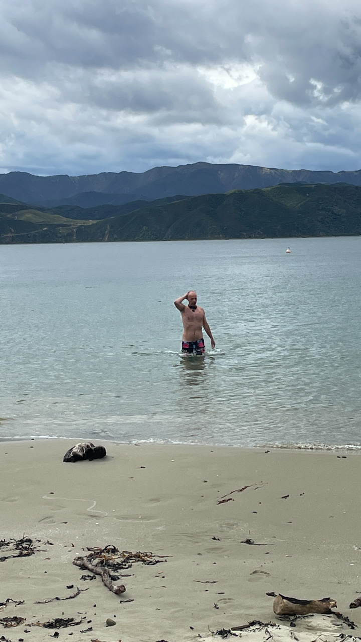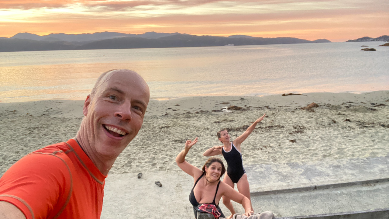 Olivier, mon pote/collegue, nage chaque semaine le midi, depuis Ferg Kayak. Connaissant mon appetit pour la nage en mer, il a essaye de motiver pour le rejoindre. Le decor n'est pas celui que je prefere, mais j'ai commence a l'accompagne. Aujourd'hui etait ma 3e seance, et je suis alle, pour la premiere fois, jusque Te Papa, et retour. 25 minutes de nage dans une eau un peu choppy, et surtout 1200 metres en tout, ma plus longue distance nagee, en mer ou ailleurs. Sur la fin, le froid commencait a me gagner, et je suis donc sorti promptement, mais fier de ce que j'ai accompli!