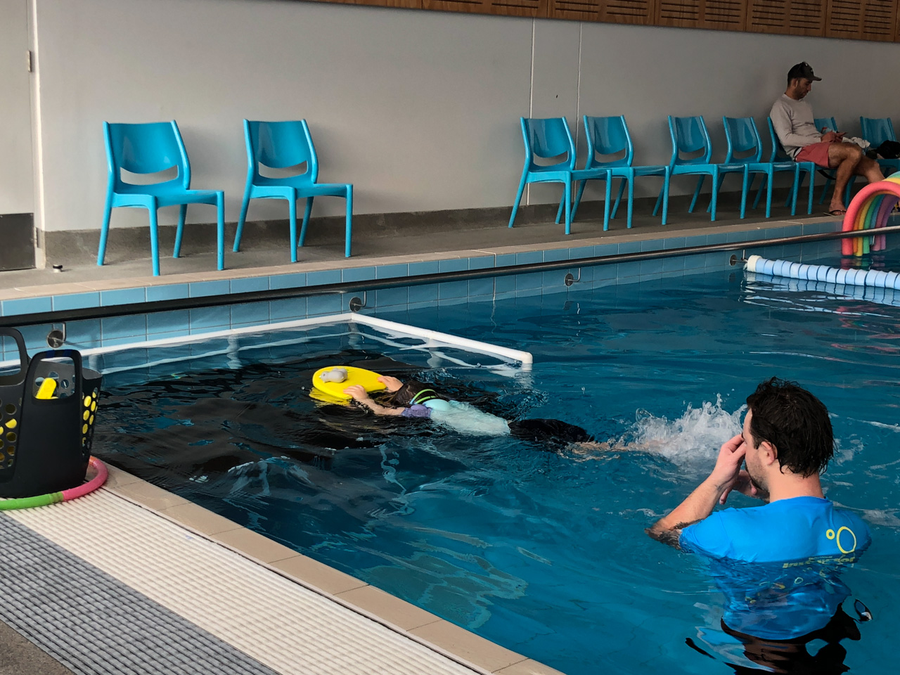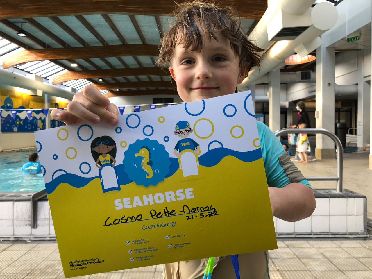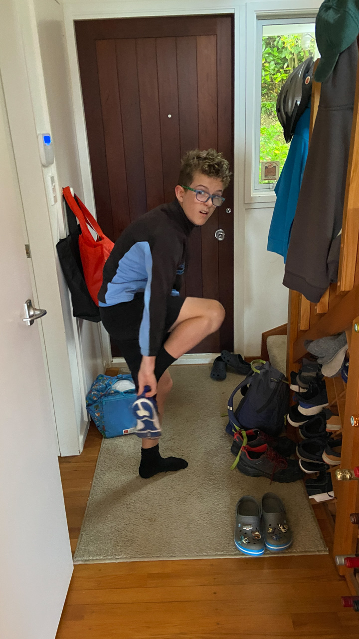 Olivier, mon pote/collegue, nage chaque semaine le midi, depuis Ferg Kayak. Connaissant mon appetit pour la nage en mer, il a essaye de motiver pour le rejoindre. Le decor n'est pas celui que je prefere, mais j'ai commence a l'accompagne. Aujourd'hui etait ma 3e seance, et je suis alle, pour la premiere fois, jusque Te Papa, et retour. 25 minutes de nage dans une eau un peu choppy, et surtout 1200 metres en tout, ma plus longue distance nagee, en mer ou ailleurs. Sur la fin, le froid commencait a me gagner, et je suis donc sorti promptement, mais fier de ce que j'ai accompli!