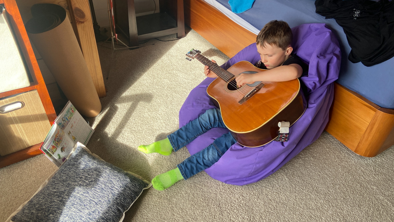 Adan repete pour son groupe de musique.