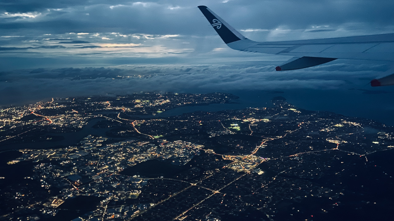 Et bien nous y voilà. Nous sommes quelque part au dessus du Pacifique, quelque part entre le 6 et le 7 octobre 2005, en route pour Auckland. Ce projet, voulu depuis des années, organisé à la hâte depuis près de 2 mois, vient de réellement commencer. Nous partons en Nouvelle Zélande pour tenter de nous y installer.