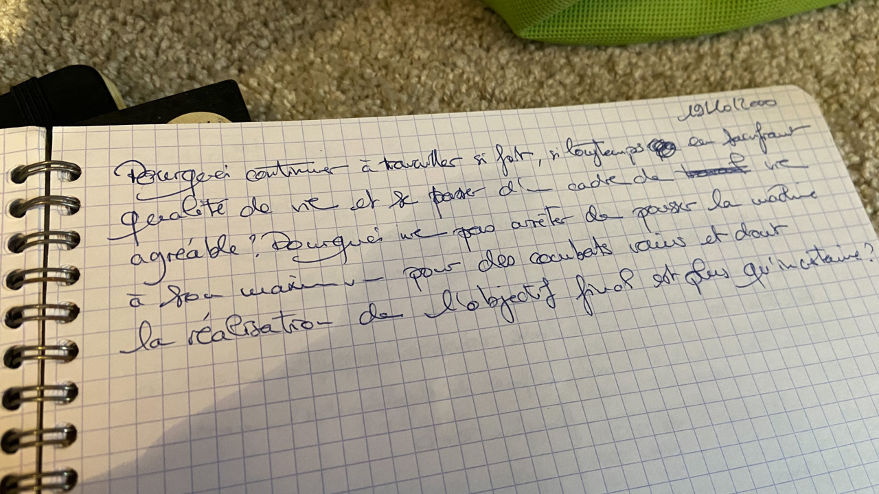 On entend rien mais on sent la creation en marche ... et le plaisir qu'en retire Cosmo.