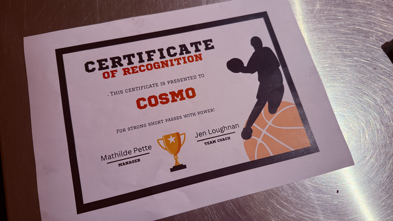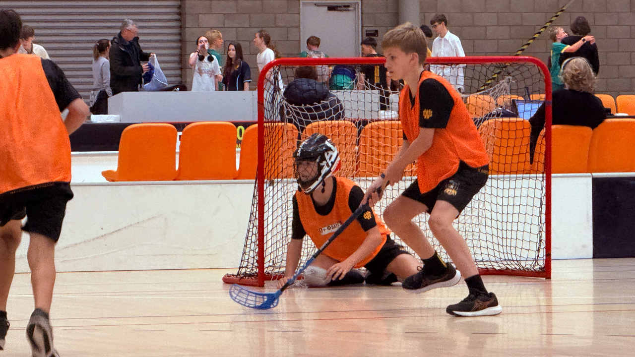 Apres le baset, Cosmo a commence sa saison de floorball.