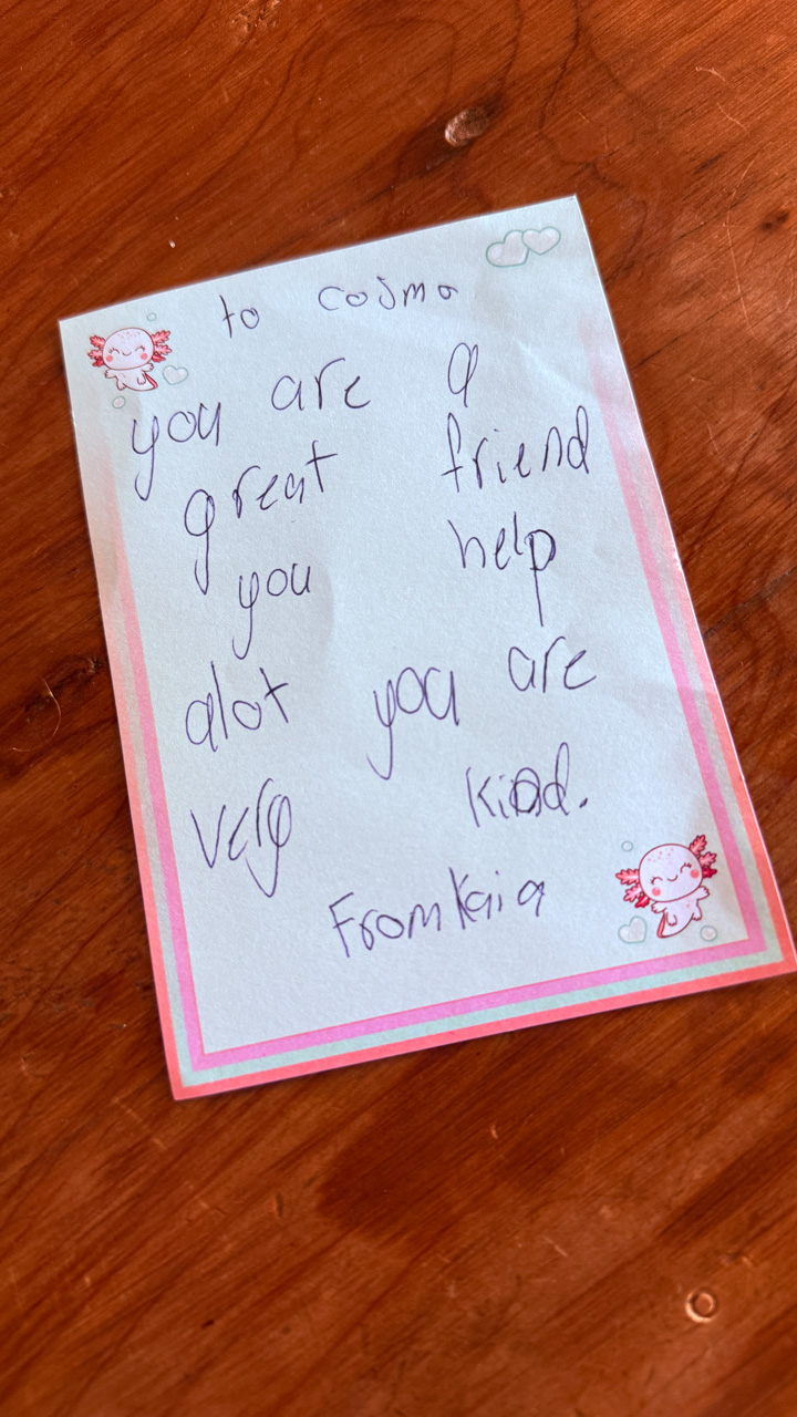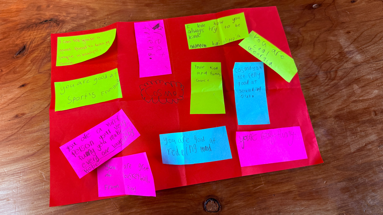 Cosmo a fabrique un calendrier de l'avant de la gentillesse a l'ecole. J'ai hate de le parcourir.