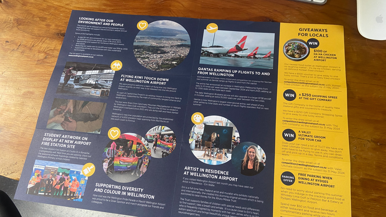 Sur cette brochure imposee dans les boites aux lettres du quartier, l'aeroport essaye d'endormir la communaute. Sur cette double page, cote a cote, ils arrivent a expliquer (en haut a gauche) a quel point le bien etre des habitants locaux les preoccupe et, juste en face (en haut a droite), annoncent l'ajout de 3 vols supplementaires (sur les 7 existants) vers l'Australie, augmentant mecaniquement l'exposition au bruit et a la pollution. Cynisme?