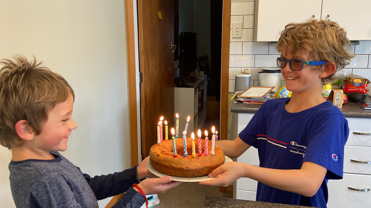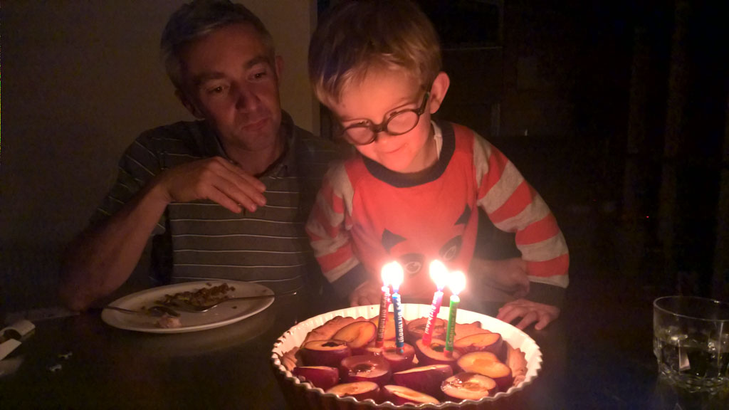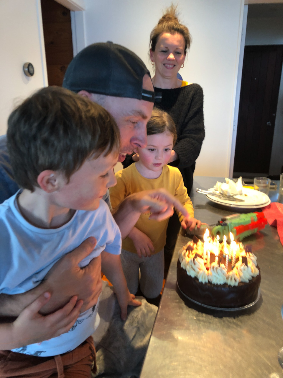 Mat aura 53 ans lundi, et on pouvait bien encore feter l'anniversaire de Seb! On a donc eu droit a un gateau pour le petit dejeuner, a 8h du matin.