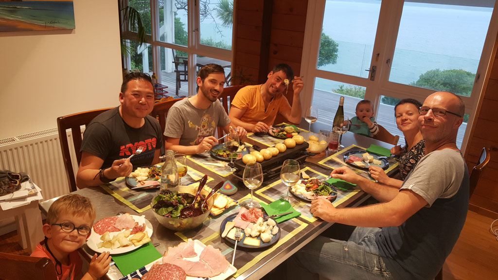 Ce soir, c'était party time a la maison! Ronan et Victor se sont joints a la raclette organisée pour Laurent et Seb!