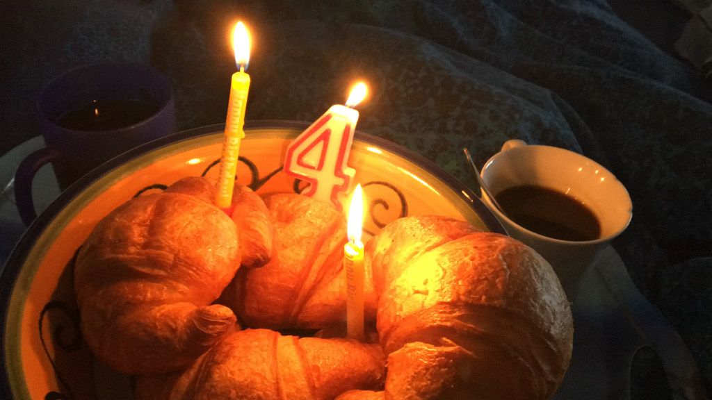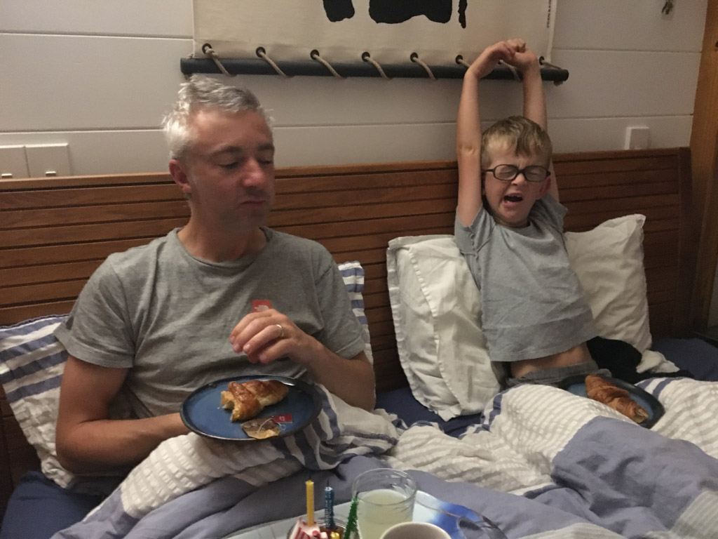 Seb a droit au traditionnel petit dej au lit le jour de son anniversaire!