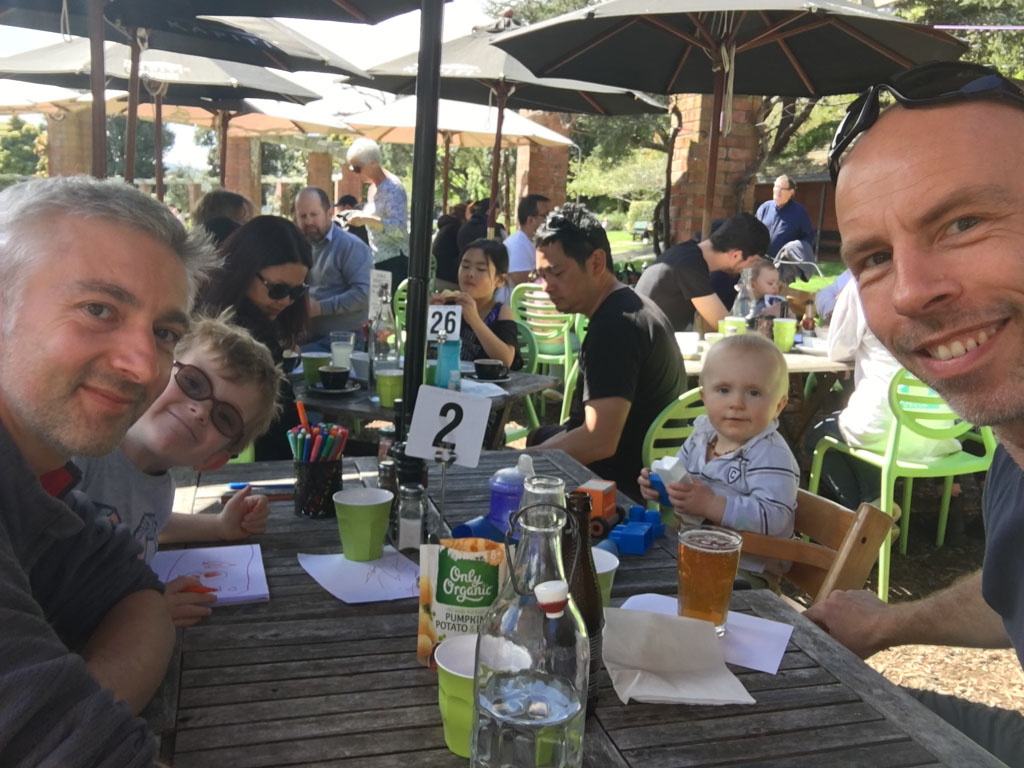 Ce matin, nous avons troque le cafeintimiste avec Lucas et Adan pour une reunion elargie avec Jess et Mat au Larder, afin d'y feter l'anniversaire de ce dernier. Une belle facon de commencer la journee!