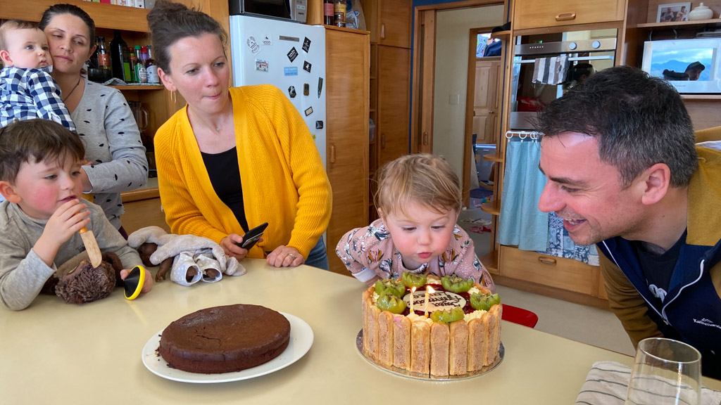 Quatre anniversaires à fêter, ce n'est pas rien. Pour Nico, Lolo, Seb et Math, nous sommes donc partis sur la Kapiti Coast pour le weekend (pas vraiment) surprise. L'occasion aussi pour les 6 cousin.e.s de passer un bon moment ensemble!