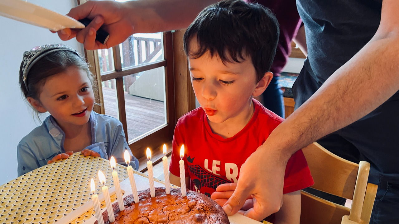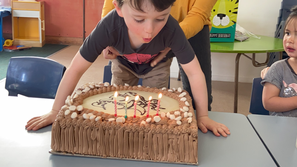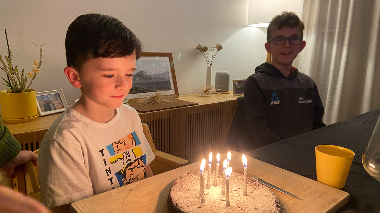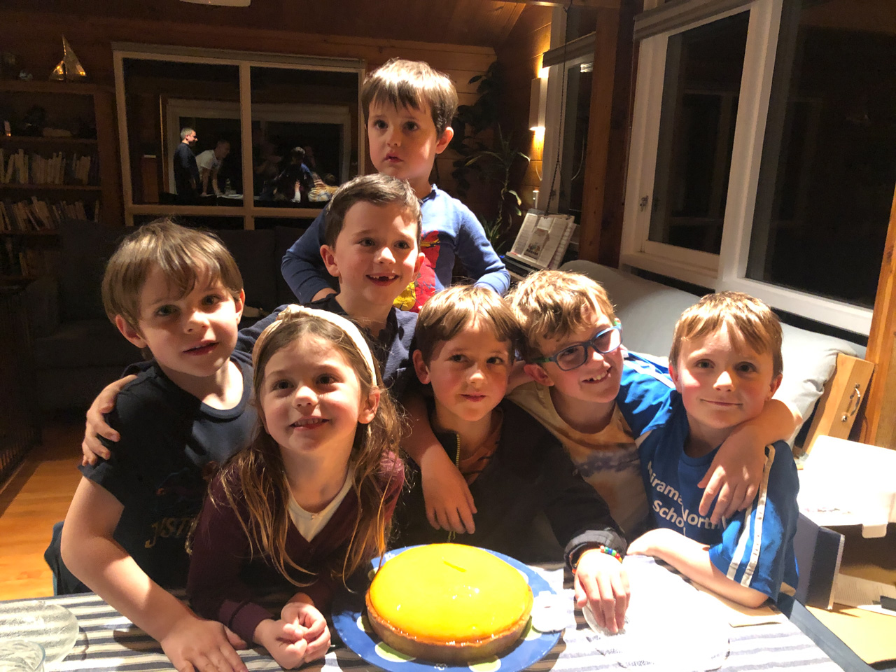 C'est l'anniversaire de Cosmo! Il a huit ans et veut le feter completement. Il y a eu donc trois fetes: une avec ses ami.e.s, une avec ses cousins et une avec sa famille cherie.