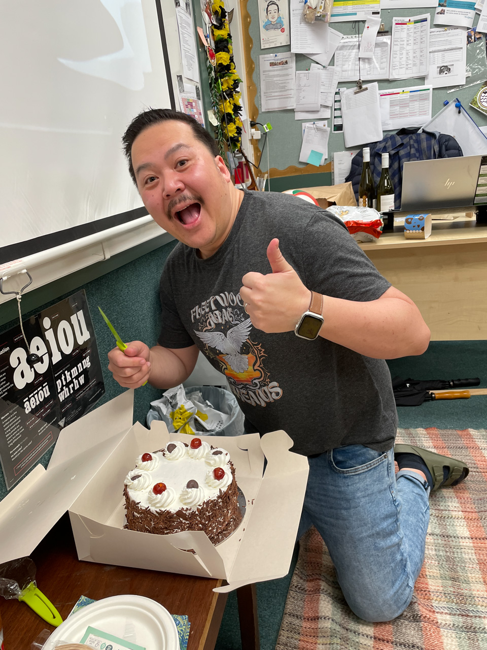 Lele a fete son anniversaire a Aku Tangi! Arrive le moment du gateau, apres s'etre bien depenses sur le court.