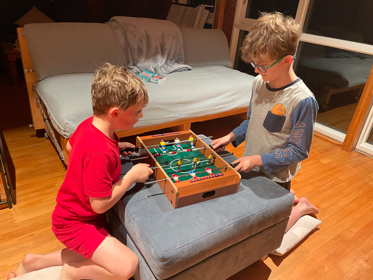 Le baby foot que Cosmo a recu occupe les garcons a plein temps!