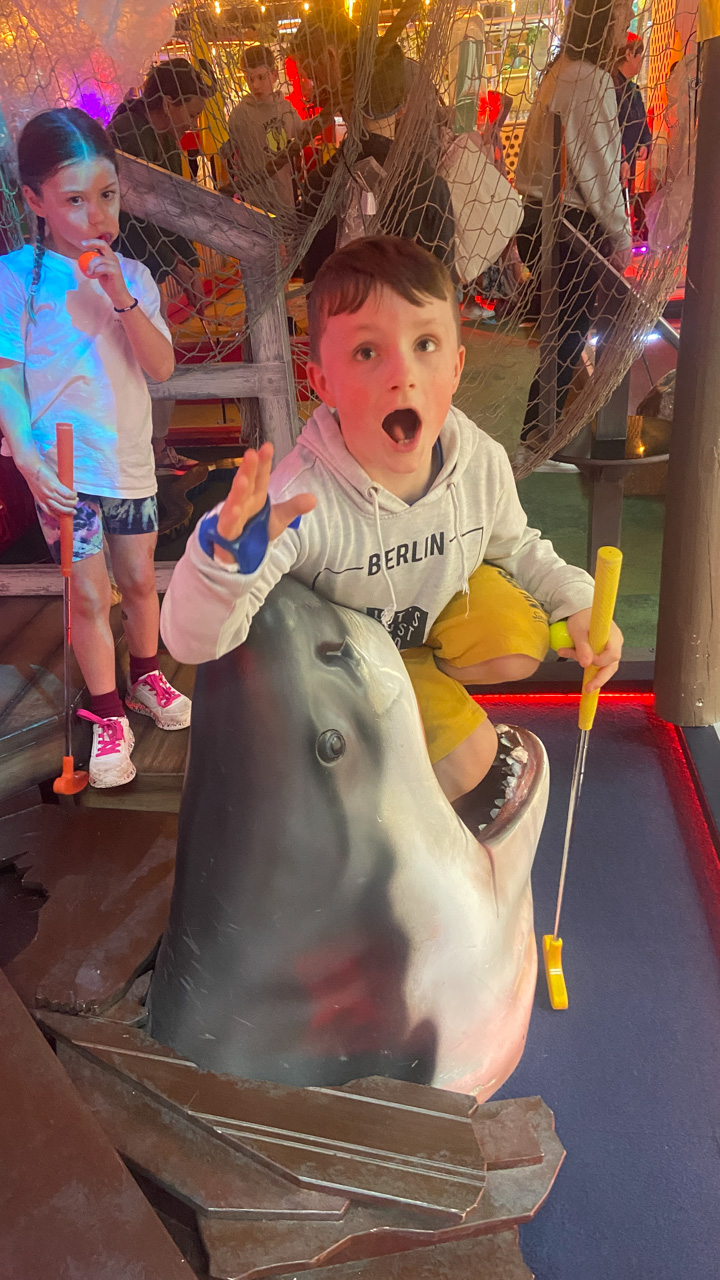 Pour l'anniversaire de Gabriel, les enfants sont alles a la salle d'arcade ... et y ont fait, entre autres, un mini-golf!