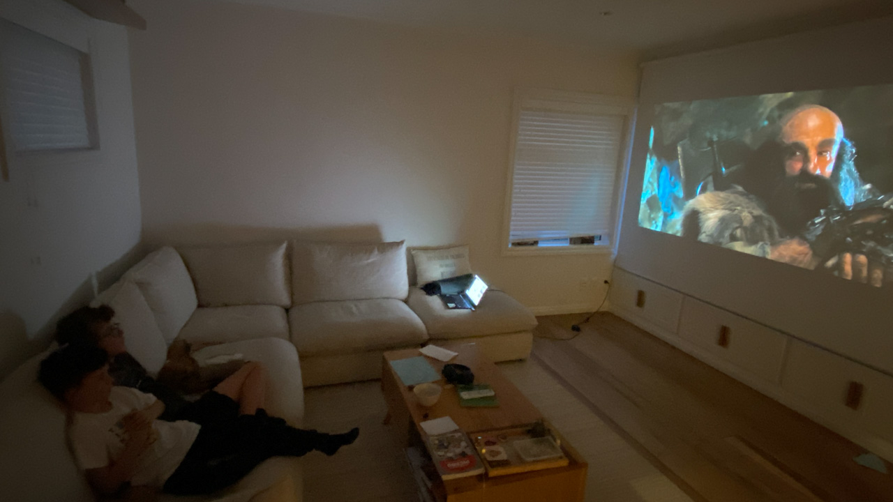 C'etait le cadeau et la recompense de Gabriel: s'il lisait le Hobbit, il pourrait voir le film. Et pour son anniversaire, il a invite Adan pour le regarder (pendant que Cosmo et Louise regardaient un dessin anime plus approprie). Les deux ont adore leur film, mais ont du se blottir l'un contre l'autre a certains moment, notamment dans la cave aux goblins!