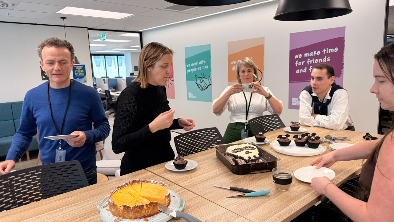 Chaque dernier vendredi du mois, les employes ayant eu leur anniversaire doivent ramener un gateau. On reconnaitra le mien au premier plan!