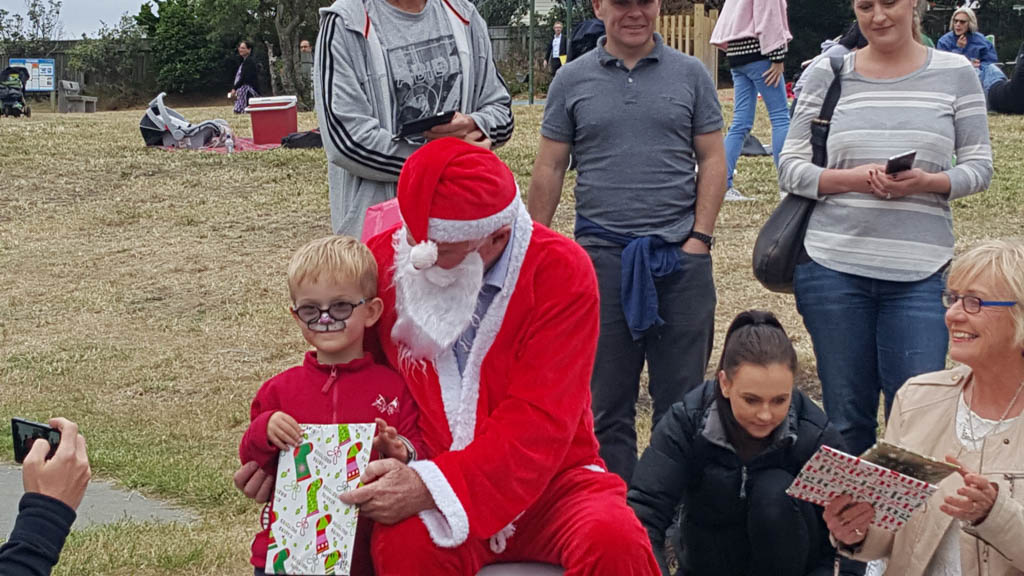 Pour la deuxieme et avant-derniere fois, c'etait la fete de Noel aujourd'hui, a Little Wonders. Comme l'annee derniere, toute l'ecolle s'est retrouvee a Island Bay pour un pique-nique geant. Au programme, glaces a la creme, peinture sur le visage et bien sur, le Pere Noel!