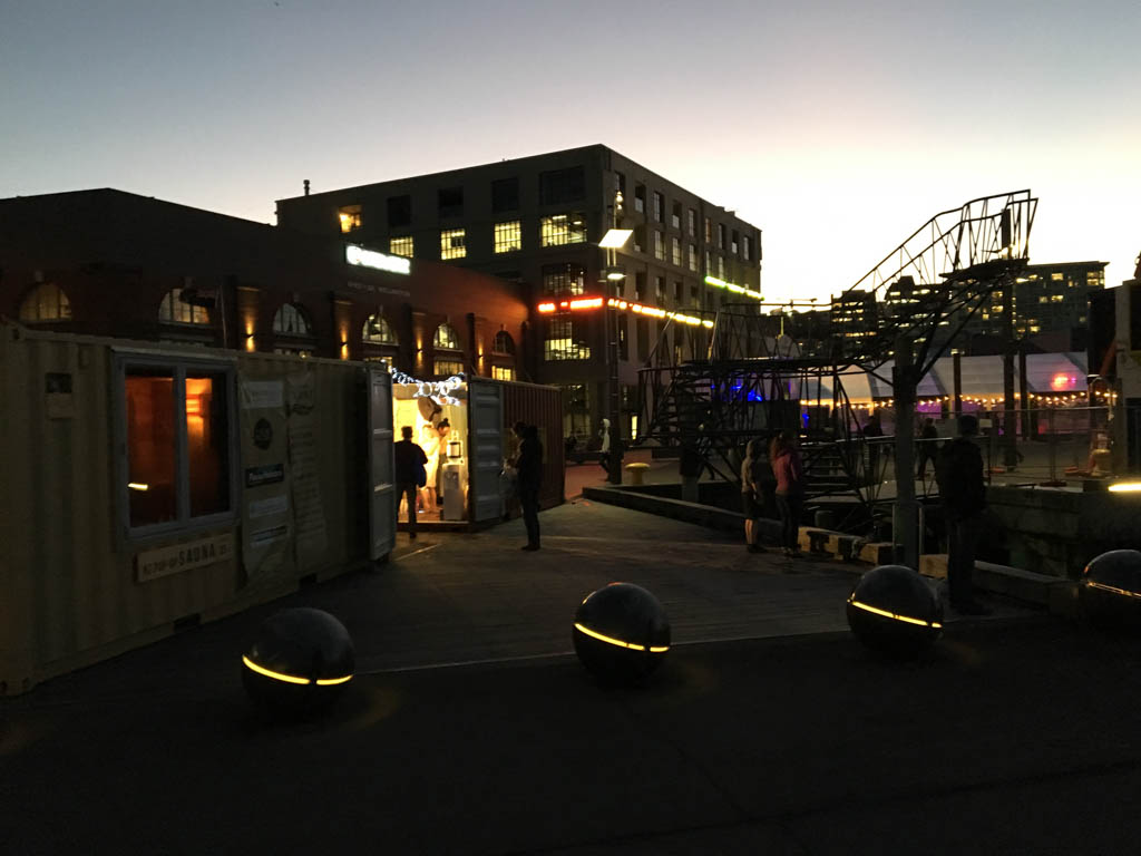 Oliver avait insisté: cette semaine, ce serait "pop-up" sauna ou pas. Ce sauna est une installation temporaire, bricolée dans un container, posé à côté du bord de mer. Entre chaque séance de dix minutes, nous sommes sortis dans le froid hivernal de Wellington et piqué une tête dans la mer. Ah oui, il faisait nuit aussi! C'était dur, mais vraiment canon!