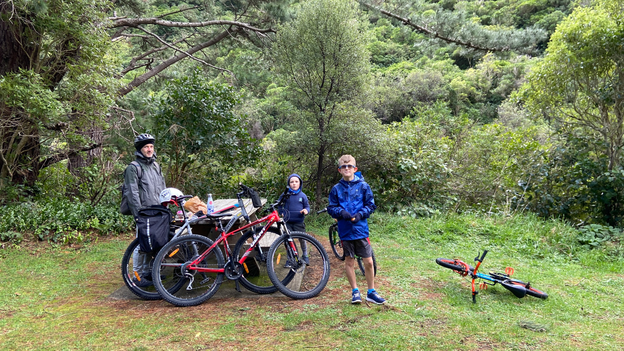 On n'est pas decu, en allant au Remutaka rail trail en famille. La promenade a commence sous le crachin et finit sous le soleil! Tellement qu'on s'est baigne dans la riviere avec les enfants. Et a chaque fois, on peut voir les progres realises par Cosmo: cette fois, nous sommes meme alles jusqu'a Cross Creek! Certes j'ai use d'une corde attachee entre nos velos pour la remontee, mais quand meme, le petit a fait, comme nous, 30 kilometres!